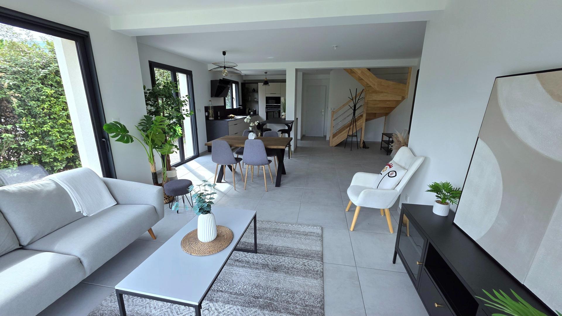 Maison "sortie de terre", libre à la vente! Cette maison individuelle de 5 pièces + cuisine ouverte est équipée de meubles et d'électroménagers Mobalpa. Les finitions sont soignées et de style contemporain. De plain pied; grande partie avec 3 baies vitrées face à la chaîne de Belledonne, cellier, , garage avec porte automatique. A l'étage; 4 chambres avec salle de bain et douche, wc indépendant. Le DPE est classé A avec une pompe à chaleur des huisseries en triple vitrage et des volets électriques. Au début de Bernin, sur 956 m2 de terrain, sa situation au fond d'une voie sans issue, assure un calme absolu, tout en se situant proche de toutes les commodités, à pied.