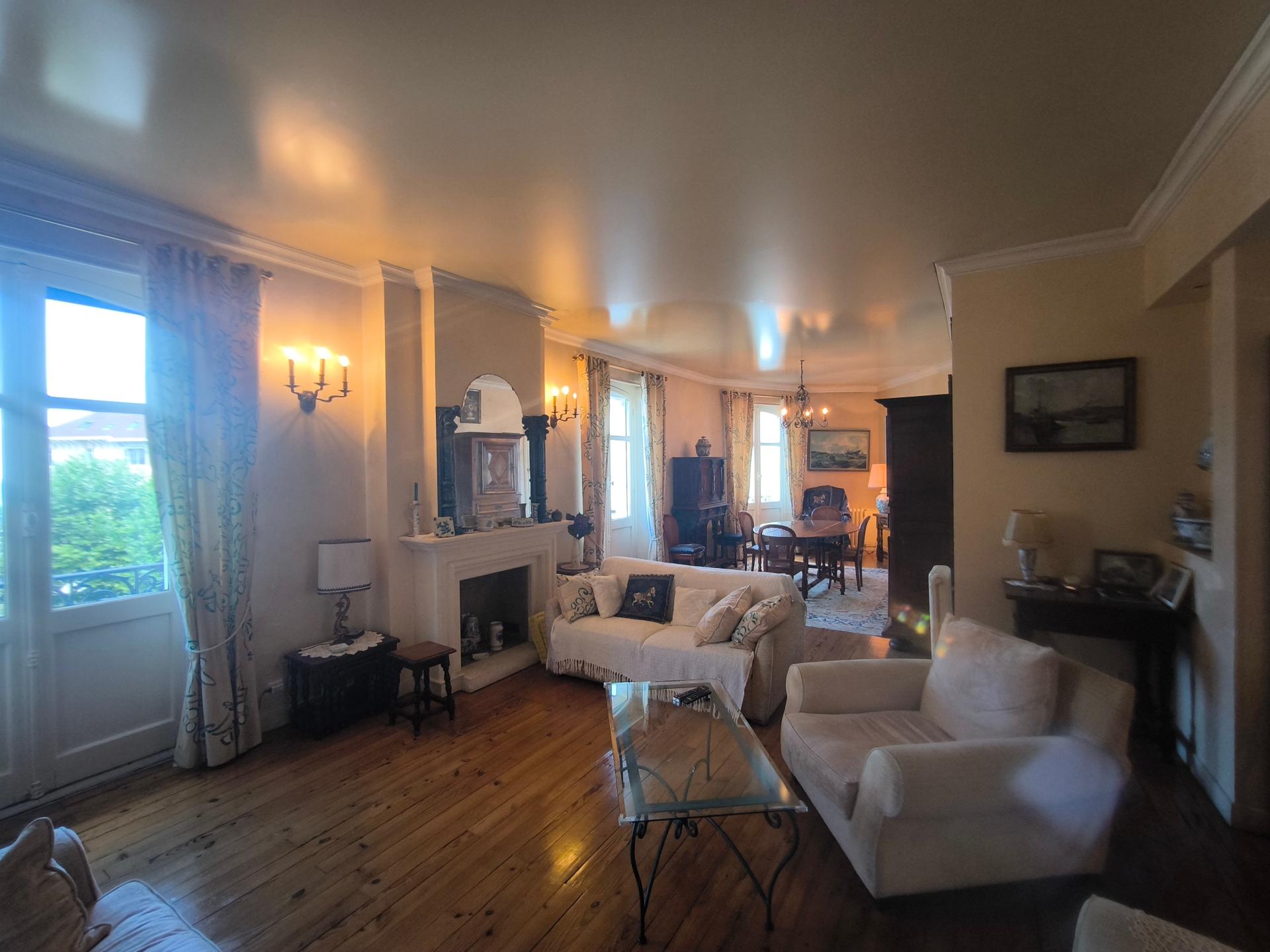 Au cœur du centre-ville de Biarritz , à seulement quelques pas de la prestigieuse place Clemenceau et de la Grande Plage , découvrez ce superbe appartement bourgeois de 143 m² (Carrez : 142,69 m²), situé dans un immeuble de caractère des années 1920 , très bien entretenu, avec ascenseur et un seul appartement par étage . Occupant le 2ᵉ étage sur 4 , ce bien rare se compose d'une entrée avec couloir de circulation , d'un vaste séjour lumineux avec cheminée , d'une cuisine indépendante et équipée , de trois chambres dont une suite parentale , de deux salles d'eau , ainsi qu'une buanderie pouvant faire bureau de cellier. Une grande cave privative de 15 m² située en sous-sol complète le tout. Sept petits balcons apportent à l'ensemble une touche de charme supplémentaire et permettent d'apprécier les atouts du quartier. La copropriété , composée de 12 lots , est soignée, avec des parties communes récemment rénovées , et ne fait l'objet d'aucune procédure en cours . Situé dans l'un des secteurs les plus recherchés de Biarritz, l'appartement bénéficie d'un cadre de vie unique , à proximité immédiate de toutes les commodités : commerces de qualité, restaurants, transports, écoles… et bien sûr, l'océan à moins de 5 minutes à pied . Un bien offrant un potentiel exceptionnel pour créer un lieu de vie à votre image.