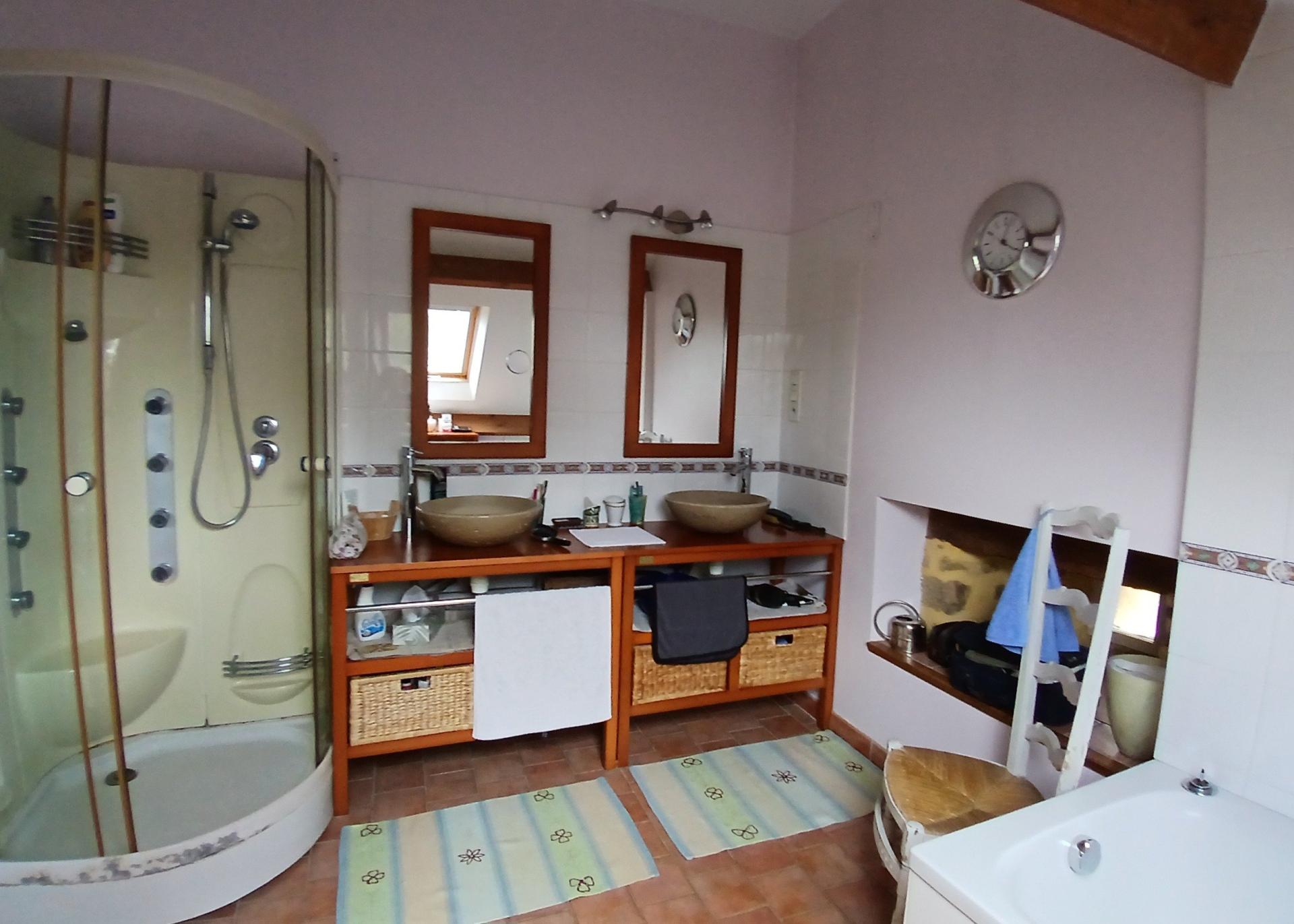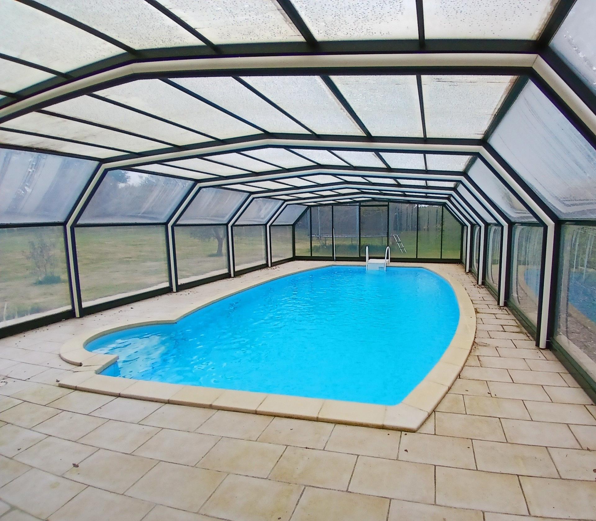 Cette propriété est située en Mayenne, aux portes de la Bretagne. . A 10 min de La Guerche de Bretagne et 15 min de Craon, les services et les commodités sont disponibles. Cette propriété est riche en Histoire. La gabelle était récoltée dans cette seigneurie. Aujourd’hui, il s’agit d’une agréable demeure : un manoir agrandie d’une longère au 19e siècle. La bâtisse est édifiée en pierre de moellon, recouverte d’un enduit au ton ocre. Les encadrements des fenêtres sont en pierre de tuffeau ou en brique. L’ensemble est recouvert d’ardoise s naturelles. Toutes les toitures ont été refaites. Les ouvertures sont en bois et en double vitrage pour le manoir et en aluminium - bois pour la longère. La surface totale est de 550 m² environ et comprend 2 parties qui sont communicantes autant qu’elles peuvent être indépendantes : le manoir et la longère. LE MANOIR de 295 m² : L'entrée se fait par une porte centrale donnant sur un escalier en Bois au style GOTHIQUE et nous découvrons 2 salons . Dans la continuité se trouve la cuisine aménagée et équipée donnant sur une terrasse située à l'ouest. La chaufferie, le garde-manger et un wc complètent le rez de chaussée. Le premier étage offre une chambre de maître de 35 m² avec salle de bains, dressing et wc, ; une 2° chambre avec salle d'eau et wc ; ainsi qu'une bibliothèque. Le 2° étage comporte 2 chambres avec salle d'eau et wc. L A LONGERE de 290 m² est composée au rez-de-chaussée, en enfilade d'un salon de jeu avec départ d’escalier et wc, accès à la piscine couverte (9x4 chauffé par pompe à chaleur), d'une salle à manger avec une cheminée, une cuisine aménagée et équipée, un petit salon ; 2 chambres avec 2 salles de douches avec wc. L’étage se compose de 4 chambres avec salles d'eau et wc. Cette longère est idéale pour accueillir des groupes ou des grandes familles. Chaque chambre a sa salle d'eau et son toilette. Idéal pour un projet gîte. Nous avons un compteur électrique et un compteur d'eau par habitation. 3 fosses septiques complètent la propriété. Les travaux ont été réalisé par des artisans locaux. La rénovation date de 20 ans. Elle est de qualité et l'architecture originelle a été respectée et même mis en valeur. Le manoir et la longère sont chauffées grâce à la géothermie. Des panneaux solaires ont été installés sur la longère. Une dépendance couverte en ardoise composée de deux pièces de 90 et 40 m²,font usage de garage. Deux autres garages ont été réalisés. Une partie des arbres constituant le parc a été planté par les propriétaires actuels. On y trouve des chênes, tilleuls, marronniers, et de nombreux fruitiers. Un Puits est sur la propriété dans le parc. Venez découvrir cette propriété EXCEPTIONNELLE !