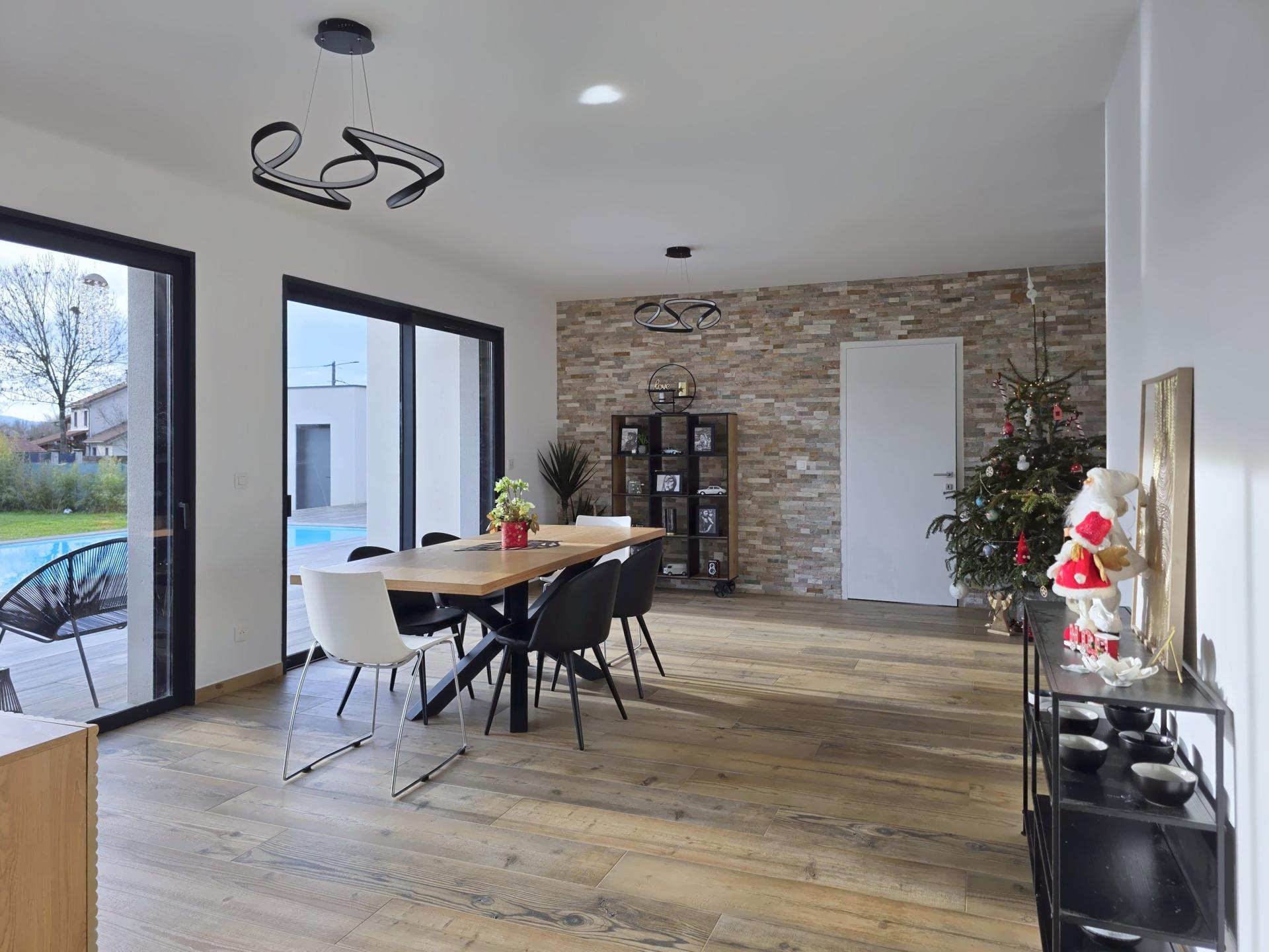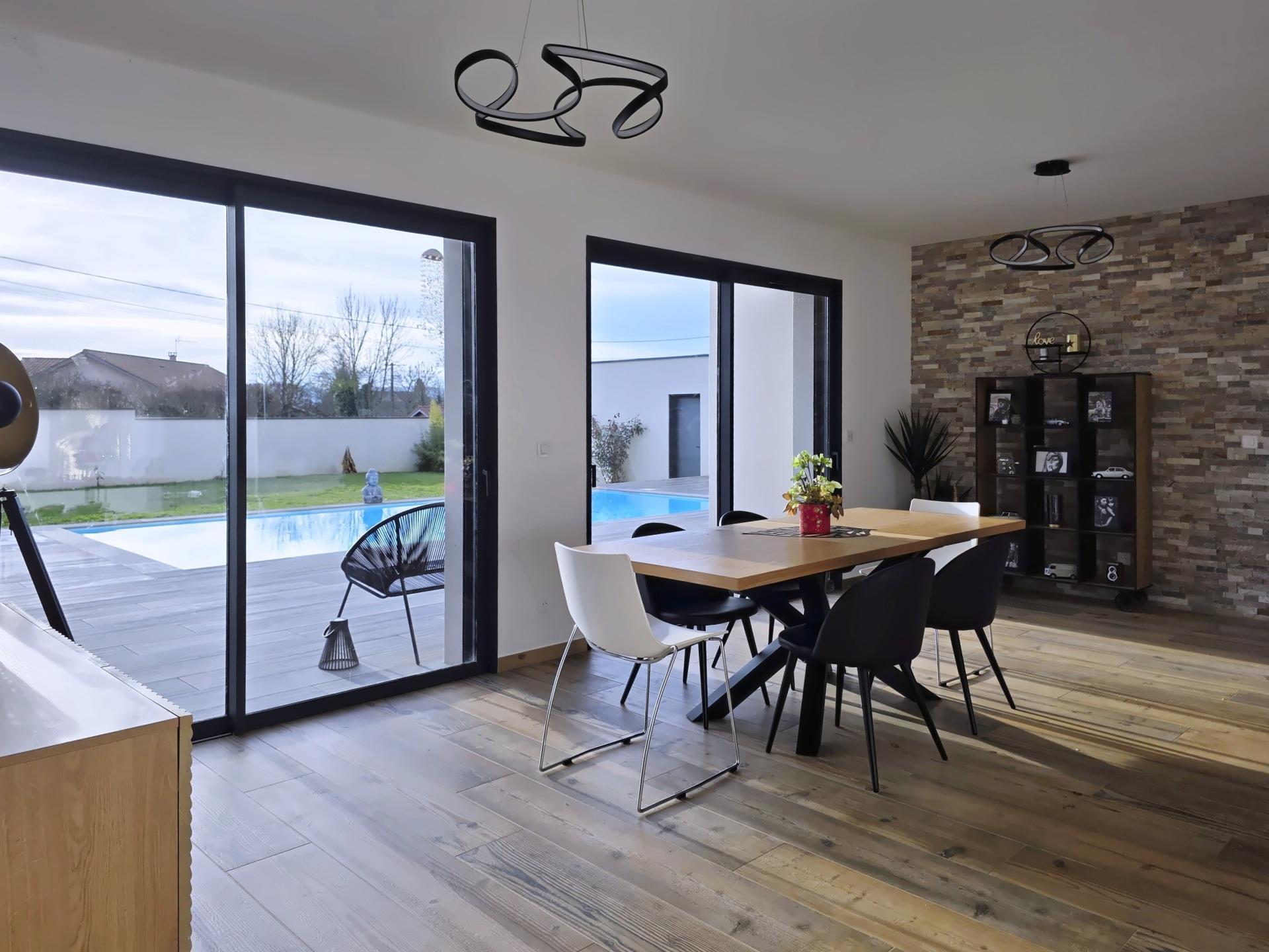 A 1 heure de Lyon, à proximité des écoles et commerces, découvrez cette superbe villa contemporaine aux lignes épurées et aux prestations soignées édifiée sur un terrain de plus de 1000 m2. Chaque espace est conçu pour vous offrir une qualité de vie précieuse. Au rez-de-chaussée, tout s'organise autour de la lumière et de la fluidité avec une cuisine indépendante et un séjour spacieux s'ouvrant tout deux sur la terrasse et la piscine, un espace parental composé d'une chambre avec vue, d'un dressing et d'une élégante salle d'eau en carrelage italien. A l'étage, le royaume des enfants avec deux chambres et leur dressing avec vue dominante sur la piscine et une jolie salle de bain. Pour plus de confort, vous profiterez de deux autres chambres au rdc, d'une buanderie et d'un double garage attenant. Une maison familiale élégante avec son agréable jardin, des volumes généreux et une architecture pensée pour le confort.
