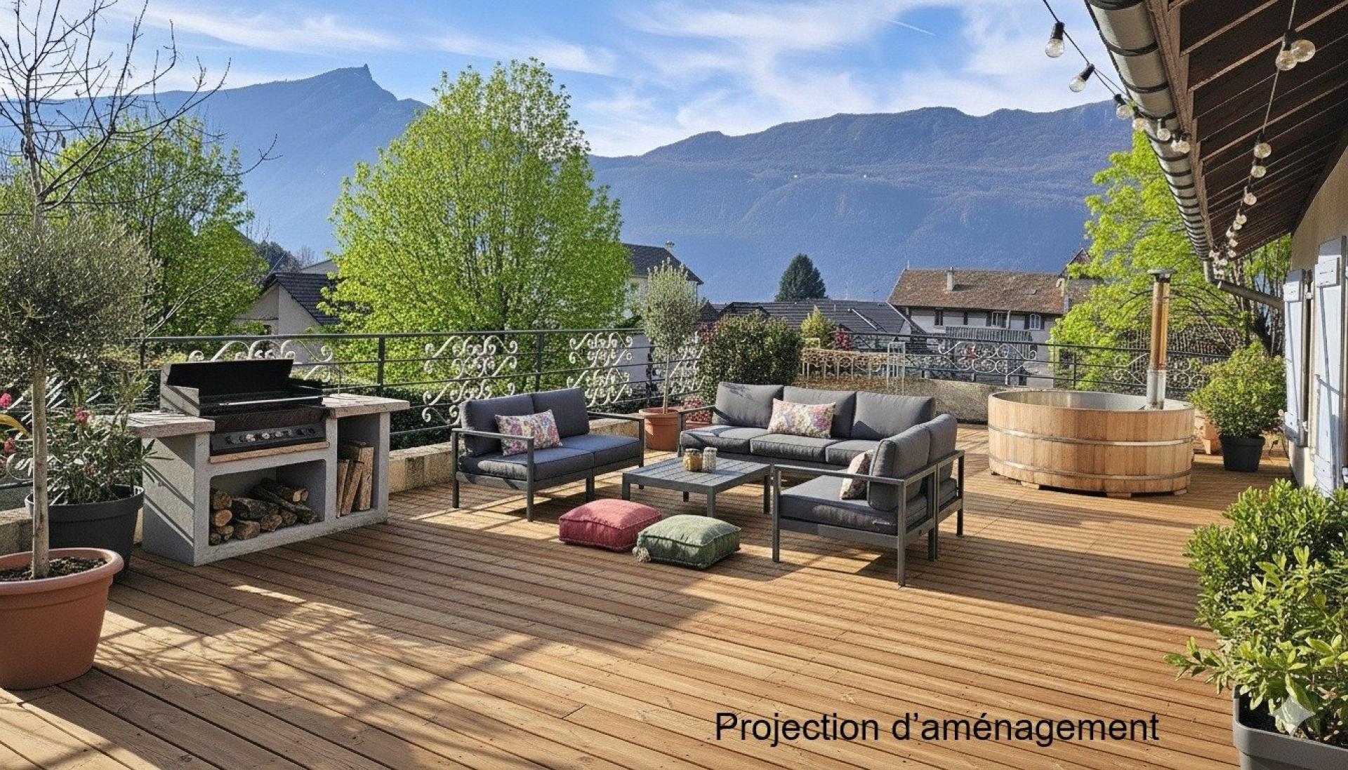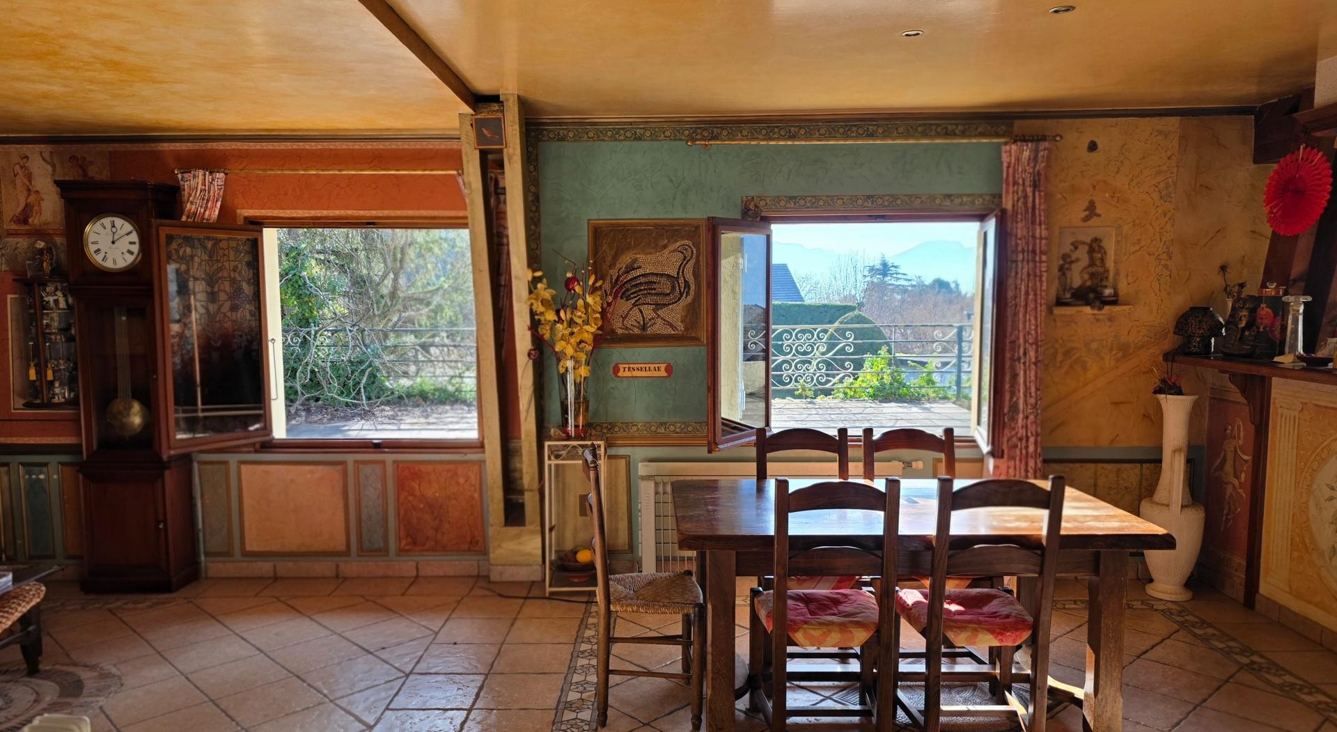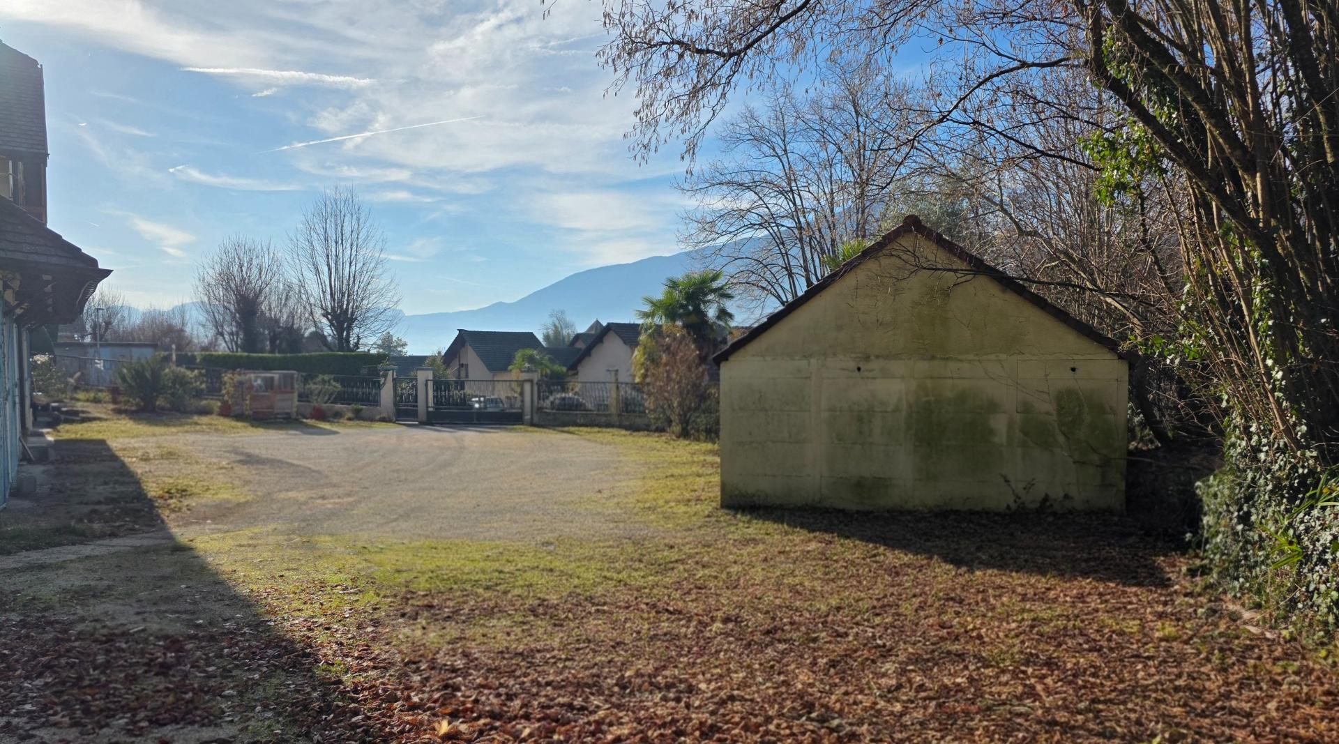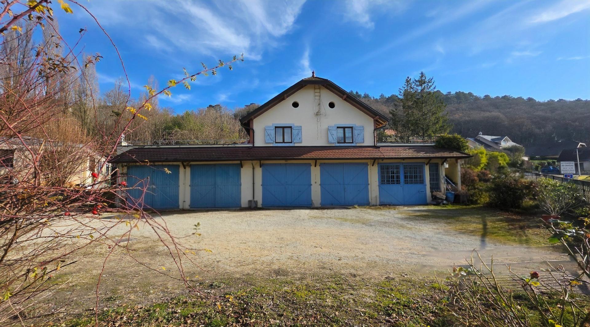 Cadre privilégié – terrain constructible 3 000 m² – calme absolu – vue dégagée – deux habitations – grange – six garages À Brison-Saint-Innocent, dans un environnement résidentiel recherché, cet ensemble immobilier rare bénéficie d’un calme absolu, d’une belle exposition et d’une vue dégagée sur la nature. Sur un terrain constructible d’environ 3 000 m², la propriété comprend une bâtisse principale de près de 300 m² au sol, avec cinq vastes garages en rez-de-chaussée (hauteur sous plafond 4 m). À l’étage, un appartement T3 de 120 m² séduit par sa luminosité et ses volumes : pièce de vie de 54 m², deux chambres, véranda, salle d’eau, toilettes et deux terrasses totalisant près de 200 m². Un second bâtiment préfabriqué propose deux logements indépendants (T2 et T3, 120 m²), complété par une grange et un garage indépendant. Un bien de caractère à réinventer, offrant un potentiel unique pour un projet résidentiel ou patrimonial dans un secteur prisé.