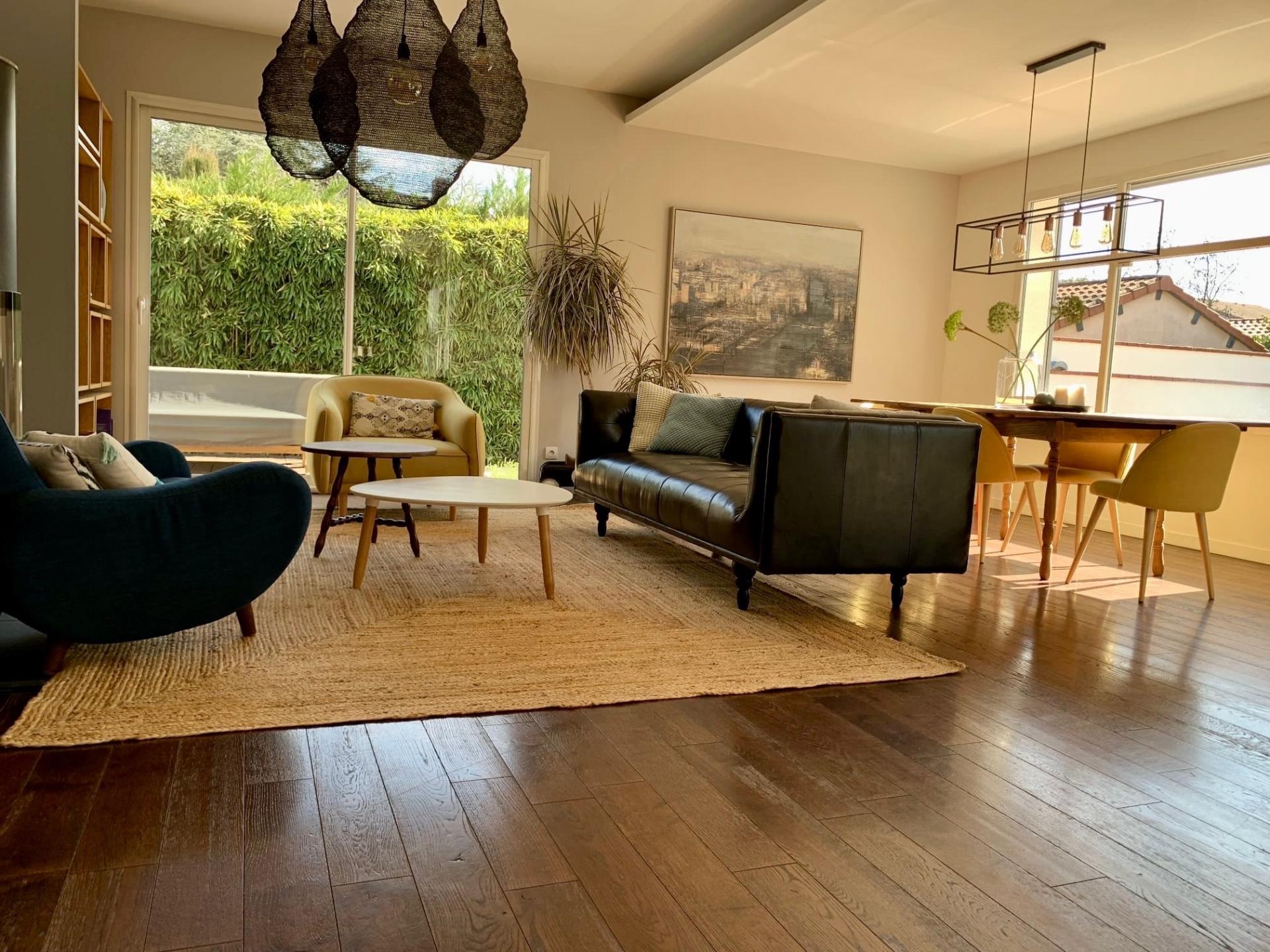 À Castanet-Tolosan, au cœur d’un quartier recherché pour son calme et sa proximité des commodités (école, commerces, bus,...), cette villa Toulousaine aux volumes généreux offre un cadre de vie lumineux et harmonieux. Dès l’entrée, vous découvrez un vaste séjour - salle à manger traversant, sublimé par une belle luminosité. La cuisine, contemporaine ouverte sur l’espace de vie, apporte convivialité et confort au quotidien. L’ensemble s’oriente naturellement vers le jardin et la piscine exposé sud, créant une atmosphère apaisante et résolument tournée vers l’extérieur. Une chambre en rez-de-chaussée et un toilette complètent ce niveau, accompagné d’un grand garage. À l’étage, 4 chambres, un bureau ainsi qu’une suite parentale avec salle de bains et dressing composent un espace nuit fonctionnel. Deux salles d’eau indépendantes offrent un confort appréciable pour la vie familiale. À l’extérieur, une belle terrasse permet de profiter pleinement de cet environnement privilégié où oliviers, palmiers et cerisier apportent charme et douceur de vivre. La piscine, parfaitement intégrée et sans vis-à-vis, devient un véritable lieu de vie dès les beaux jours. Cette villa parfaitement entretenue conjugue élégance, fonctionnalité et intimité. Une opportunité rare dans l’un des secteurs les plus prisés de Castanet-Tolosan.
