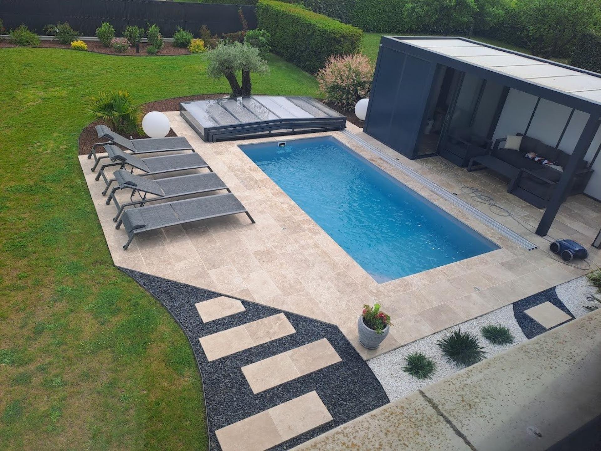 Du GOUT, de L' ELEGANCE et de la MODERNITÉ. À Chailles (41120), cette magnifique maison de 220 m² est un véritable havre de paix. Située dans un quartier résidentiel prisé, elle offre un cadre de vie calme et verdoyant, idéal pour les familles. Proche des écoles, des commerces et des transports en commun, cette propriété bénéficie d'une localisation stratégique, offrant un parfait équilibre entre tranquillité et commodités. Construite en 2017 sur un terrain de 972 m², cette maison contemporaine se compose de 4 chambres, d'un salon lumineux, d'une cuisine équipée, d'une terrasse, d'une dépendance, d'un garage, avec un carport adossé et d'une ravissante piscine couverte avec pergola. Avec ses équipements modernes, sa luminosité naturelle, son exposition plein sud et sa pompe à chaleur, cette résidence allie confort et performance énergétique. Un bien d'exception classé DPE A, offrant un cadre de vie privilégié dans un écrin de verdure. ON Y EST BIEN!