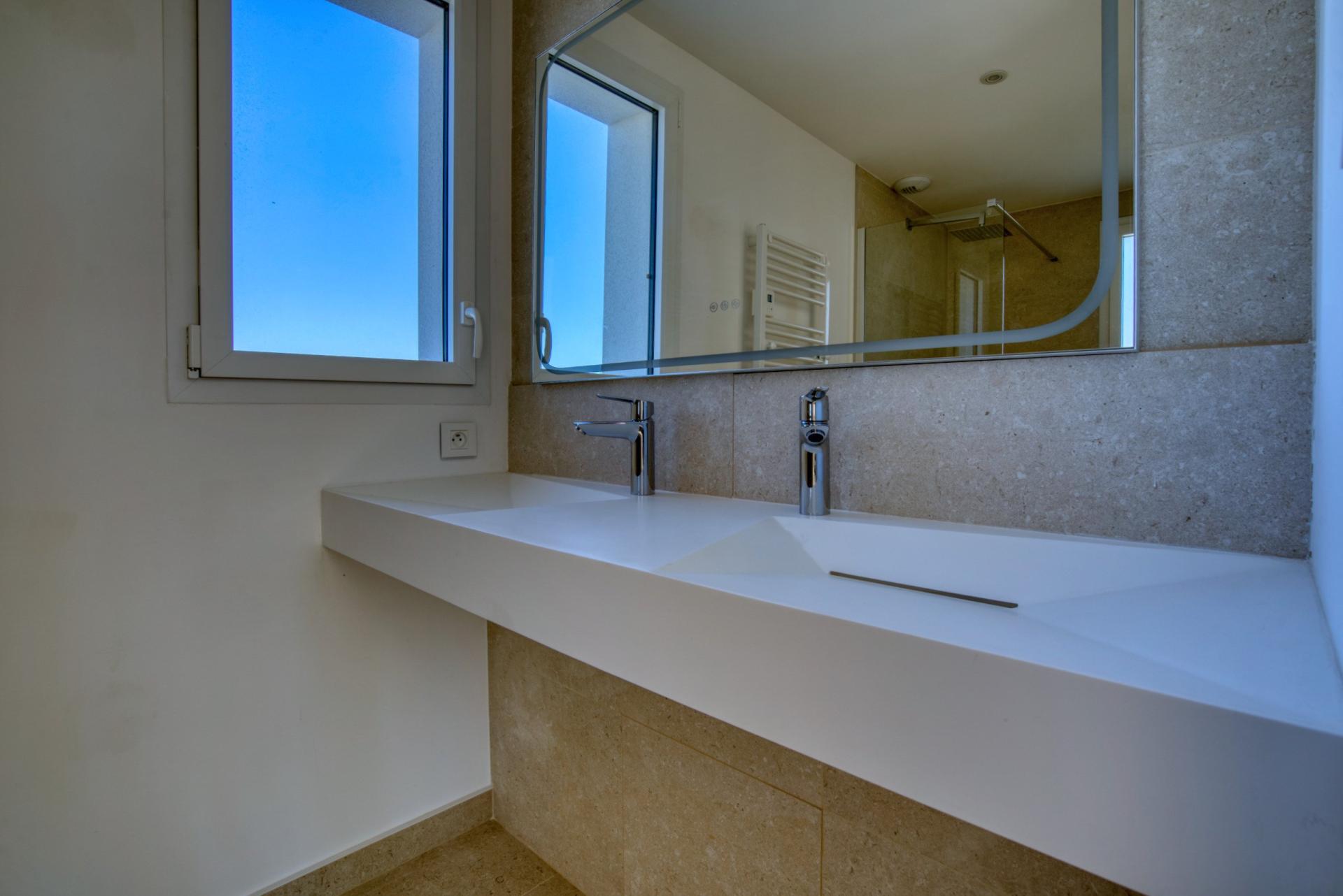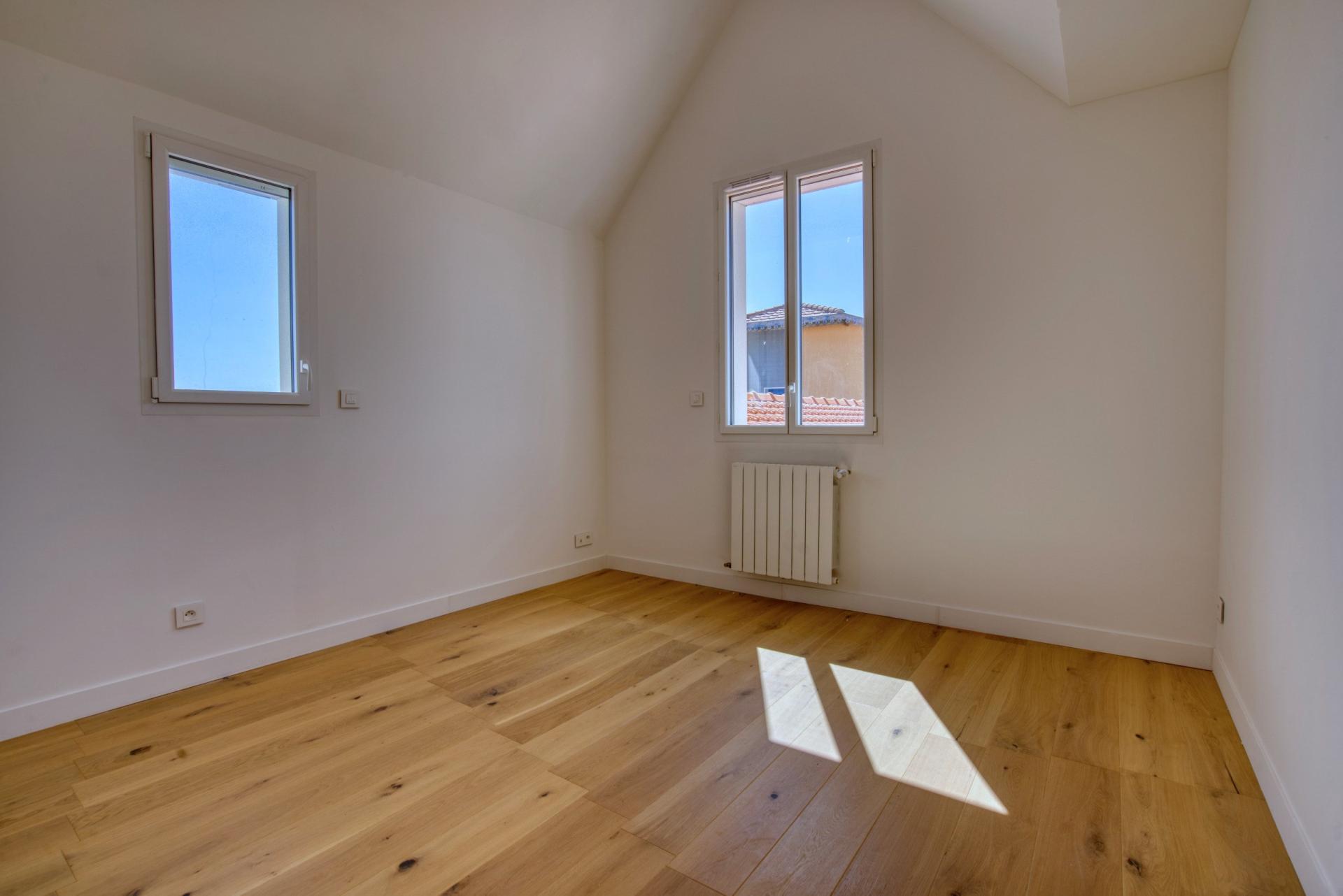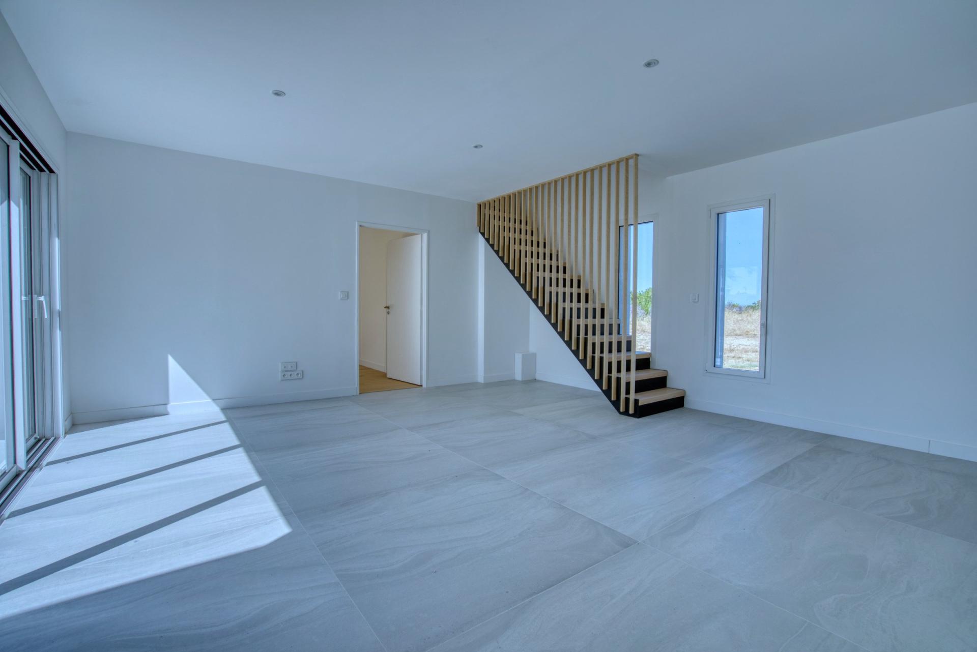 154 m² habitables, 4 chambres, vue mer, garage, frais de notaire réduits et plage accessible à pied.
