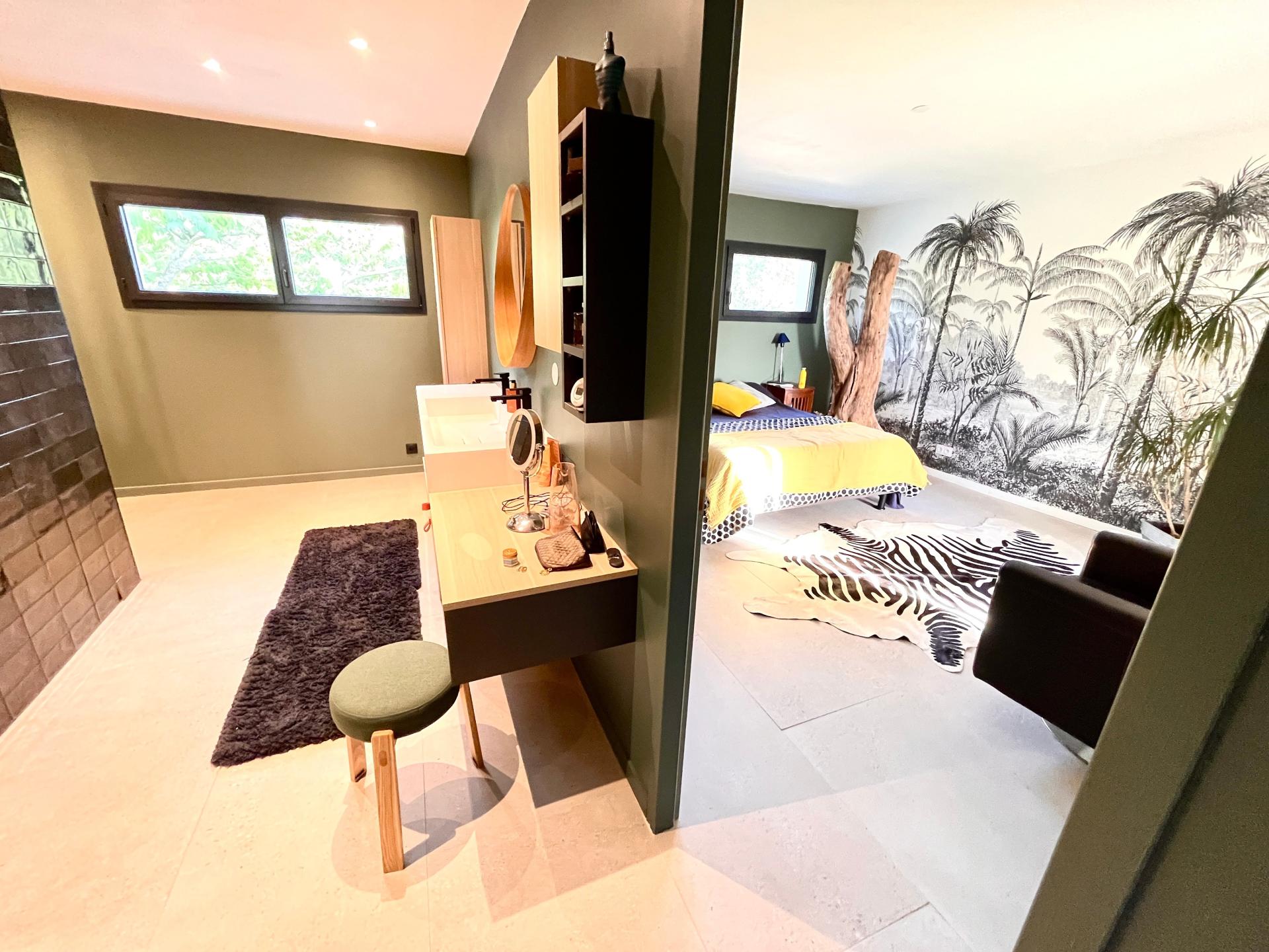 31700 Cornebarrieu, située à 4 minutes gare de Pibrac, 12 minutes Aéroport Blagnac, cette superbe et lumineuse maison complètement rénovée de 305 m² offre un cadre de vie paisible au calme en impasse. Le hall d'entrée s’ouvre sur une vaste pièce de vie de près de 85 m² salon, séjour et cuisine équipée avec îlot central dînatoire, complétée par une pratique arrière-cuisine. 5 belles chambres, réparties sur deux niveaux, dont une magnifique suite parentale. 4 sdb/sde. 3 dressings. Une salle de jeux ou autre usage de + 30 m², une buanderie, ainsi qu’une grande pièce à aménager idéal pour une profession libérale avec accès indépendant et interne viennent enrichir cet espace conçu pour la convivialité. À l’extérieur, profitez d’un terrain de 1 109 m² paysagé, une belle piscine et sa plage carrelée et bois, une grande terrasse abritée avec cuisine d’été, un local technique, et un carport en dur 3 faces plus atelier fermé. Les plus : Volumes, Clim' réversible, poêle à bois, grandes baies vitrées à galandage, portail électrique. Aucuns travaux à prévoir : cette maison est prête à vous accueillir.