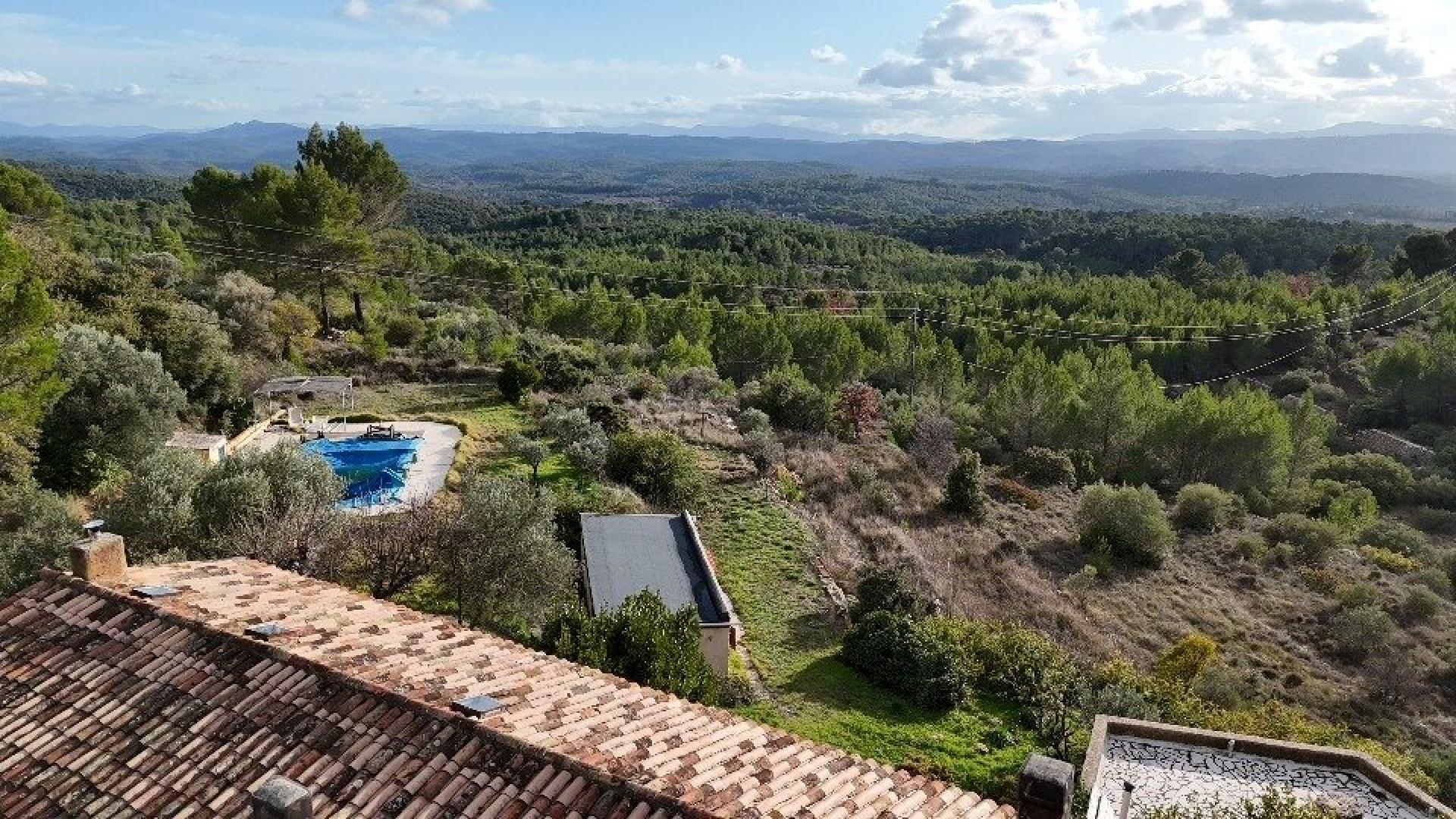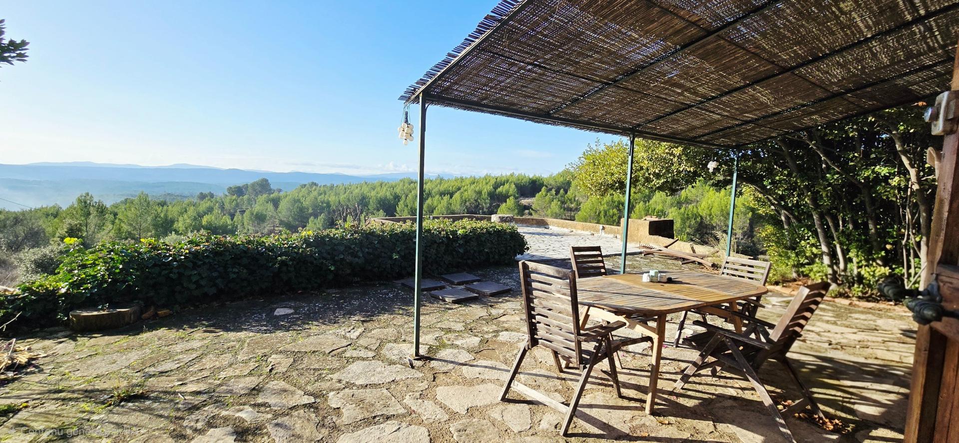 Située à Cotignac (83570), cette bastide du début du 20ème siècle bénéficie d'un emplacement privilégié au cœur d'un cadre naturel préservé. Cotignac est reconnue pour son charme provençal, ses ruelles pittoresques et son célèbre rocher surplombant le village. Idéalement située pour les amoureux de la nature et de l'authenticité provençale, cette propriété offre un cadre de vie paisible au cœur de la Provence. Cette maison de 170 m², nichée sur un terrain de 7 hectares, se compose au rez-de-chaussée d'un séjour lumineux avec cheminée, d'une cuisine ouverte, d'une chambre et d'une salle de bains avec wc. À l'étage, une grande pièce de 57m² , une chambre et une salle d'eau avec wc complètent l'espace nuit. Un atelier indépendant avec coin eau, un studio de 30m² et un garage de 50m² viennent compléter les atouts de ce bien, idéal pour les amoureux de la nature à la recherche d'une maison de caractère dans un environnement préservé. Vous tomberez sous le charme de cette bastide et du havre de paix de l'emplacement de cette propriété. Vous pourrez bénéficier d'une très grande terrasse surplombant la nature avec une vue à 180 degrés, vous aurez également la jouissance d'une piscine au sel et de sa terrasse panoramique. Chauffage au sol au rez-de-chaussée et climatisation réversible sur l'ensemble de la maison. Maison sous forage et détenant une cuve de 40 000 litres d'eau. Fosse septique à remettre au norme. Visite virtuelle sur demande.