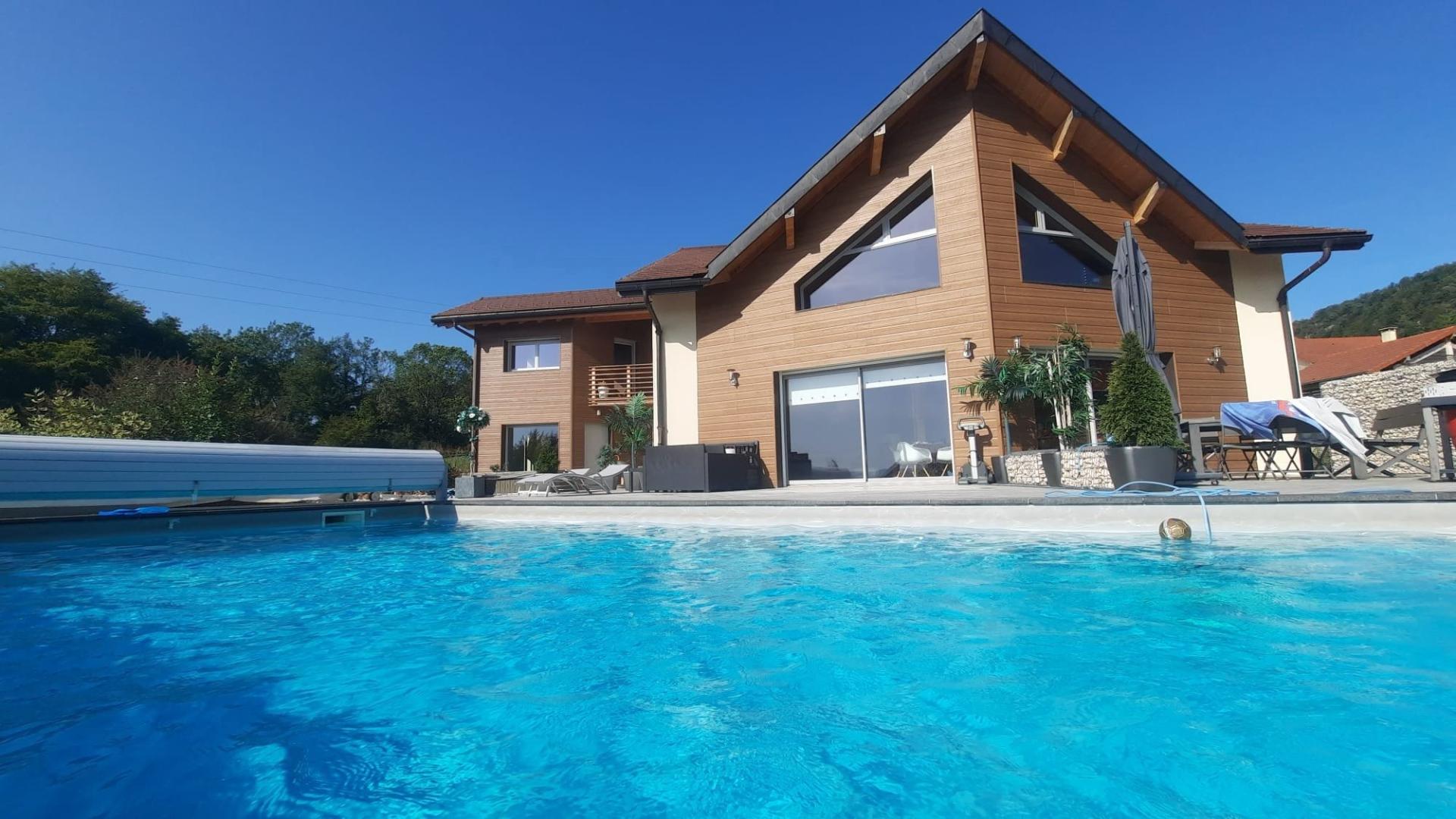 Situé dans un cadre paisible et verdoyant, au sein d'un lotissement recherché de Crenans (39260), et bénéficiant d'une exposition plein sud, cette maison de maître séduit par ses prestations haut de gamme et ses volumes généreux. Avec plus de 230 m2 habitables, elle offre de beaux volumes, une agréable hauteur sous plafond et de jolies structures en bois, apportant un charme authentique et une atmosphère chaleureuse. Dès l’entrée, vous découvrirez un vaste séjour ouvert sur une cuisine entièrement équipée et aménagée, baigné de lumière grâce à de grandes baies vitrées. Une spacieuse mezzanine surplombe l’espace de vie et offre une agréable vue sur le séjour. L’espace nuit propose 4 grandes chambres lumineuses, toutes dotées d’espaces dressing. L’une d’elles bénéficie d’un accès direct à une terrasse privative. La maison offre aussi de plusieurs espaces bureaux, d'un espace cellier buanderie, d’une salle d’eau avec douche ainsi que d’une seconde salle de bains avec baignoire, en complément de plusieurs WC. Côté extérieur, la propriété s’inscrit dans un cadre privilégié avec un terrain de 1 644 m², agrémenté d’une piscine creusée au sel de 5 x 10 m et d’un jacuzzi, idéal pour profiter pleinement des beaux jours. Elle dispose également de 4 grands garages dont 3 indépendants de la maison, d’environ 66 m² au total, offrant de nombreuses possibilités d’aménagement (atelier, voire projet de loft), ainsi que d’un vaste abri pour le stockage du bois et du matériel de jardinage. Côté confort, la maison dispose d’un système de chauffage performant par pompe à chaleur géothermique avec plancher chauffant, assurant une chaleur douce, homogène et économique. Deux poêles à bois labellisés Flamme Verte viennent parfaire l’ensemble et apportent une ambiance chaleureuse à la pièce de vie. Une propriété rare sur le marché, alliant prestations haut de gamme, volumes généreux et cadre de vie unique. Contactez-moi pour plus de renseignements.