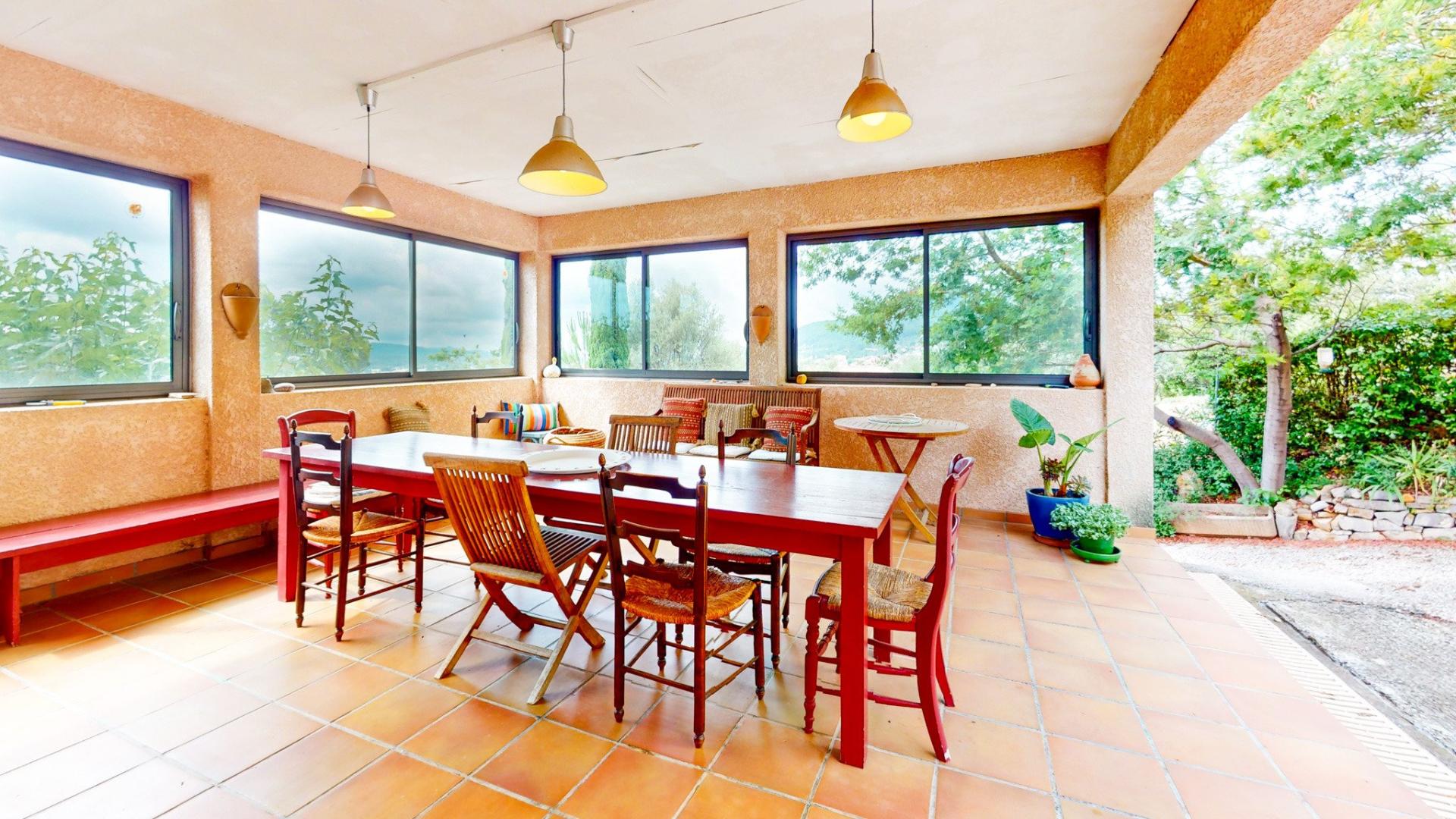 Magnifique propriété à deux pas des commerces, et bénéficiant d'une vue dominante magnifique! Proche commodités et des écoles. Charme authentique assuré. Cette maison de 175m² sur un terrain de 2350m² propose un jardin méditerranéen aménagé avec piscine, idéal pour profiter des beaux jours. Elle comprend 4 chambres, 4 toilettes, 3 salles de bain, une cave. Le vide sanitaire en sous-sol offrent un potentiel d'aménagement supplémentaire. Un joli studio d'amis de 23m2 complète le bien, espace indépendant idéal pour les invités ou des hôtes de passages. L'intérieur de cette demeure construite en 1997 se distingue par son agencement en 8 pièces sur 2 niveaux et de belles enfilades jouant avec la perspective. Les aménagements extérieurs soignés en restanques plantées d'essences au parfum méditerranéen et ses arbres centenaires offrent des vues toujours plus belles. Disposant d'un immense emplacement de parking extérieur, cette propriété allie confort et sérénité, offrant un cadre de vie idéal pour une famille à la recherche d'un havre de paix proche des commodités. Maison parfaitement entretenue par des propriétaires soigneux. Double vitrage, climatisation réversible. Cheminée bi-face pour réchauffer le séjour et la bibliothèque. Visite virtuelle disponible transmise après contact téléphonique. Vous pourrez visiter l'INTERIEUR du bien exactement comme si vous y étiez! Une vidéo drone est également disponible pour survoler les extérieurs. Temps de trajets en voiture vers les centres d'intérêts principaux: 5 min de la gare de Cuers; 30 min des magnifiques plages de Hyères et de l'aéroport TOULON-HYERES; 2 min des commerces et des écoles maternelles et élémentaires; 5 min du collège.