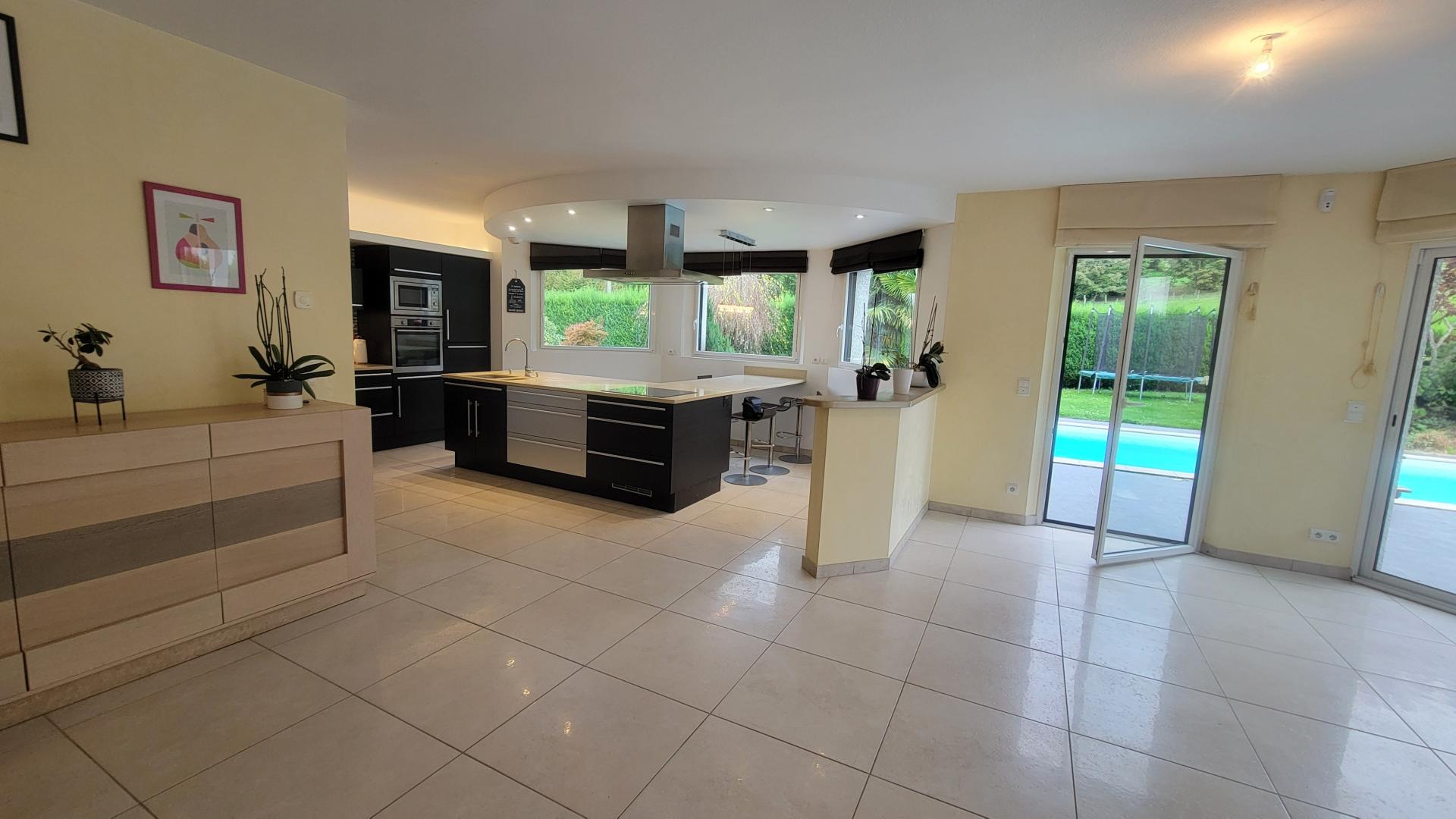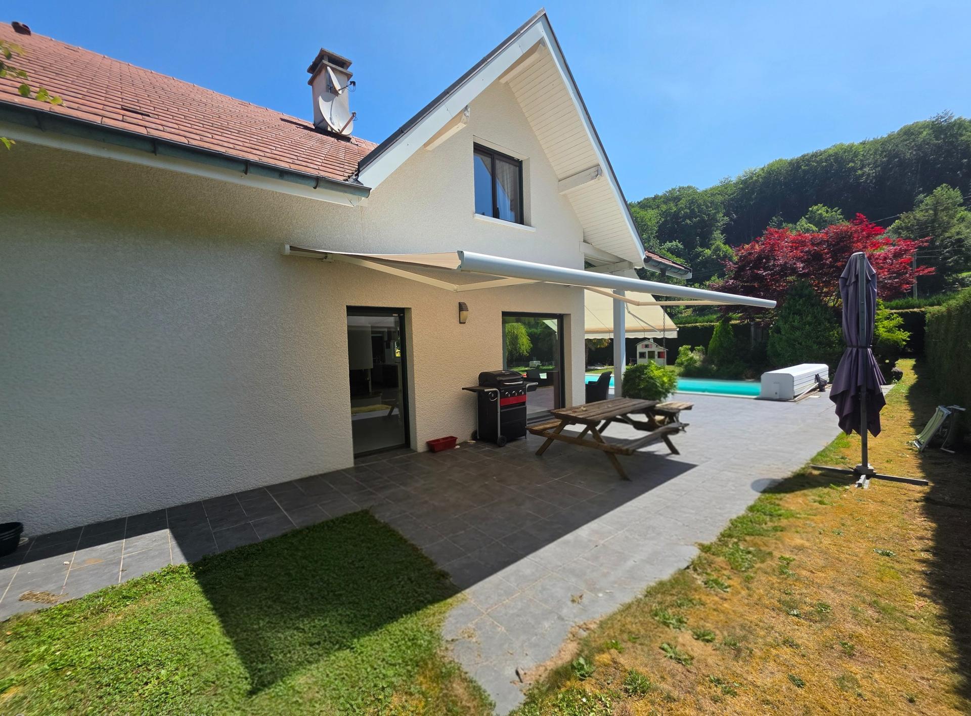 Située à Cusy, charmant village avec toutes commodités, à 10 min des accès autoroutiers et 20 min d’Annecy ou d’Aix-les-Bains, cette villa récente de 258 m², construite en 2006, séduit par ses volumes généreux et son cadre verdoyant. Au rez-de-chaussée, un vaste séjour cathédrale lumineux exposé sud-ouest, agrémenté d’une cheminée, s’ouvre sur une cuisine équipée avec cellier et buanderie. Une suite parentale avec salle de bain complète ce niveau. Le plancher chauffant assure un confort optimal. À l’étage, vous trouverez 3 chambres avec dressing, un bureau, une grande mezzanine modulable et une salle de bain avec douche. Un sous-sol aménagé de 120 m² offre de nombreuses possibilités : salle de jeux, home cinéma, espace bien-être ou rangement. Le tout est implanté sur un terrain clos et arboré de 1 415 m², avec piscine chauffée, vastes terrasses, garage double indépendant et accès direct aux sentiers de randonnée. Un bien rare, idéal pour une famille en quête de confort et de sérénité.