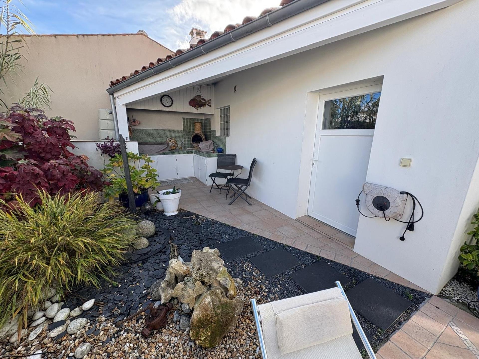 Venez découvrir cette magnifique maison rénovée avec goût et savoir-faire en 2014. Idéalement située au cœur de Dompierre-sur-Mer, toutes les commodités sont à 5 minutes à pied. Vous entrez ? Un petit dégagement vous mène à gauche à la cuisine entièrement équipée, puis à un cellier et enfin au garage avec son galetas ! Sur votre droite, un salon/salle à manger de 50 m² avec son poêle à bois vous accueille. Nous entrons ensuite dans la partie nuit : une première chambre avec douche et lavabo, une grande salle de bains avec sauna et douche à l'italienne, des toilettes et enfin la grande chambre et son dressing. La troisième chambre peut être considérée comme une chambre d'amis ou un studio puisqu'elle est entièrement équipée pour la location (entrée indépendante,louée 600 euros par mois). Et comme nous avons encore besoin d'espace, un deuxième garage attenant complète ce bijou. Les extérieurs s'offrent à vous dans un jardin sec très bien entretenu. Des panneaux solaires assurent l'autonomie de ce bien et l'aspirateur central est réparti dans toutes les pièces