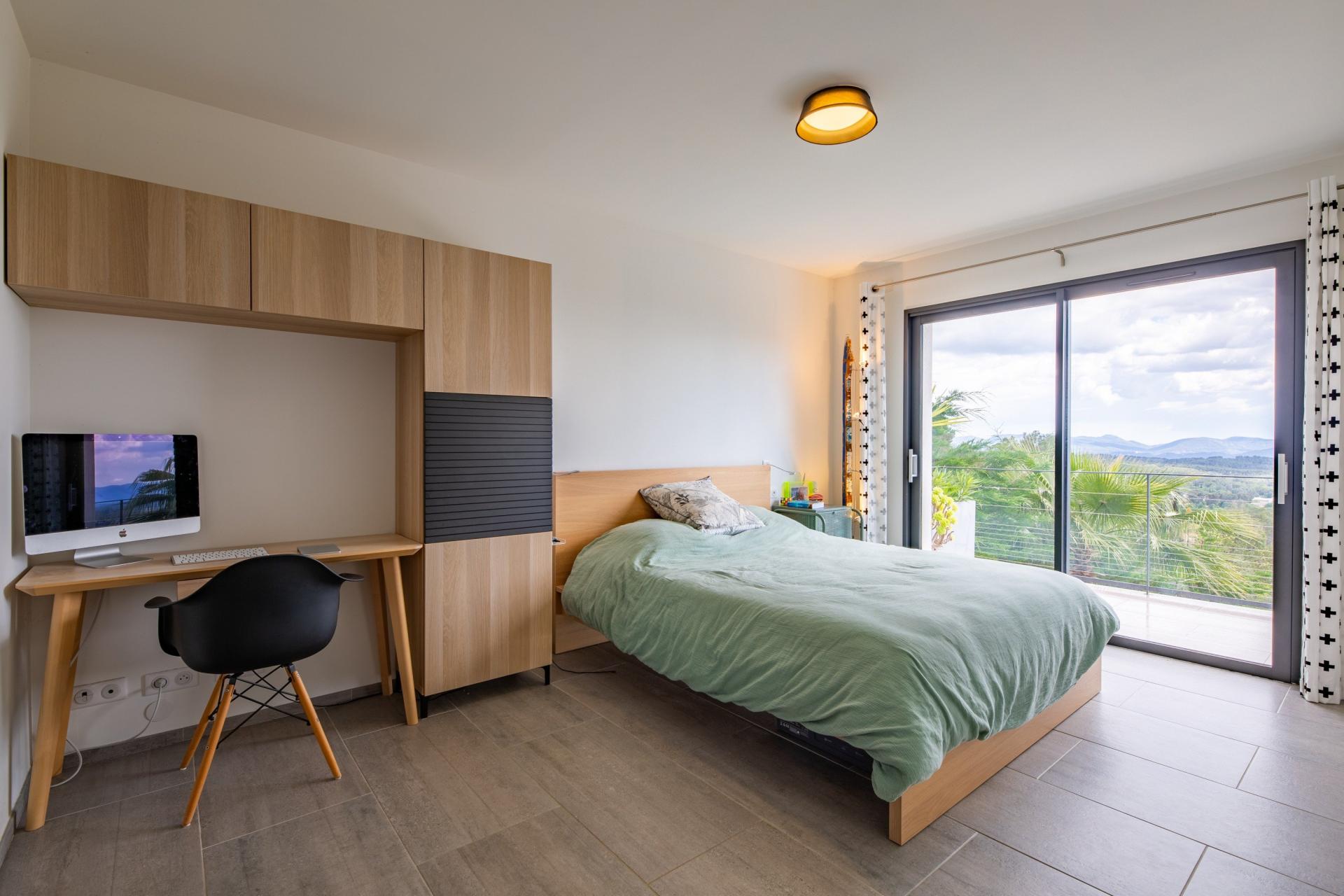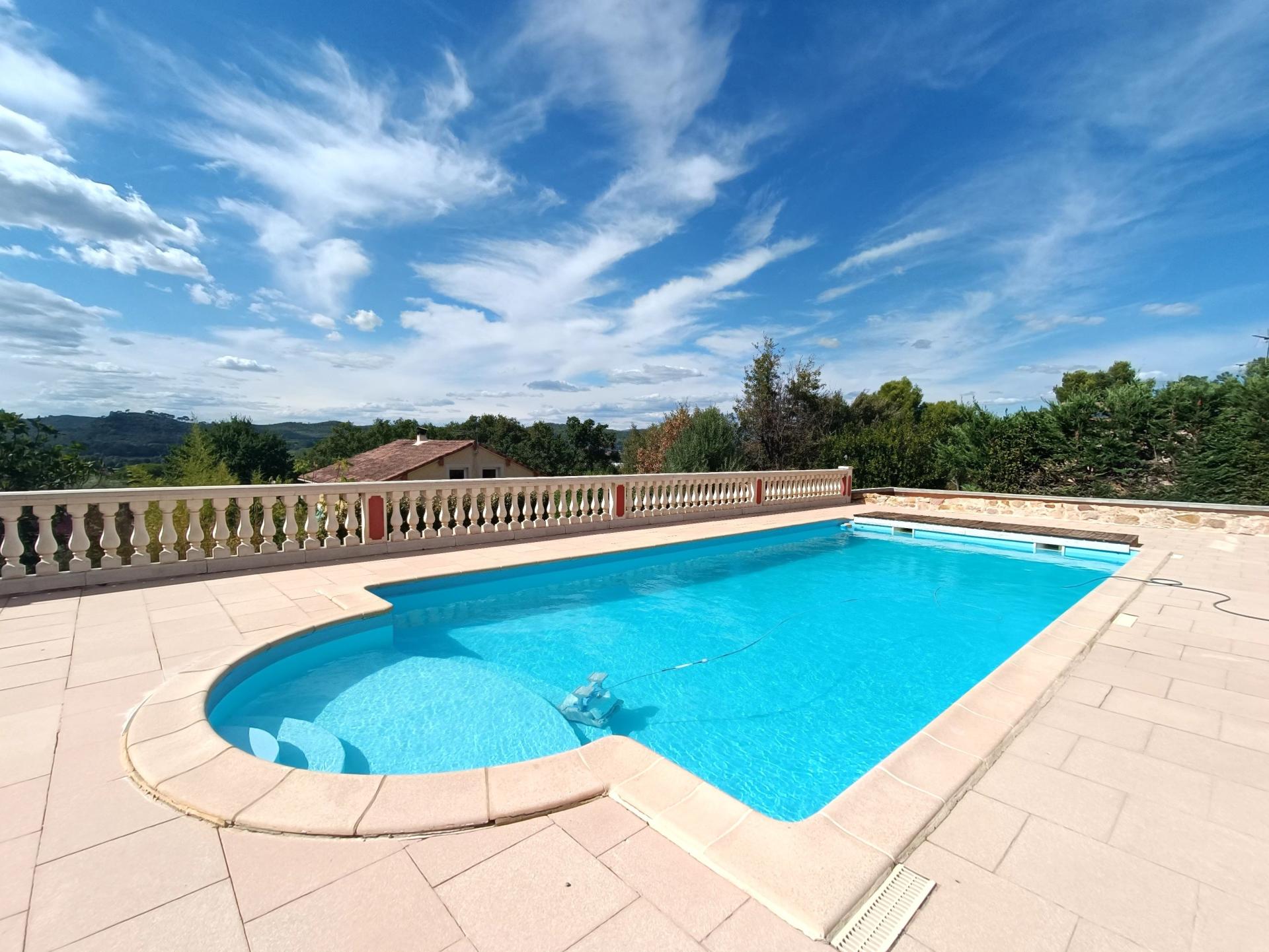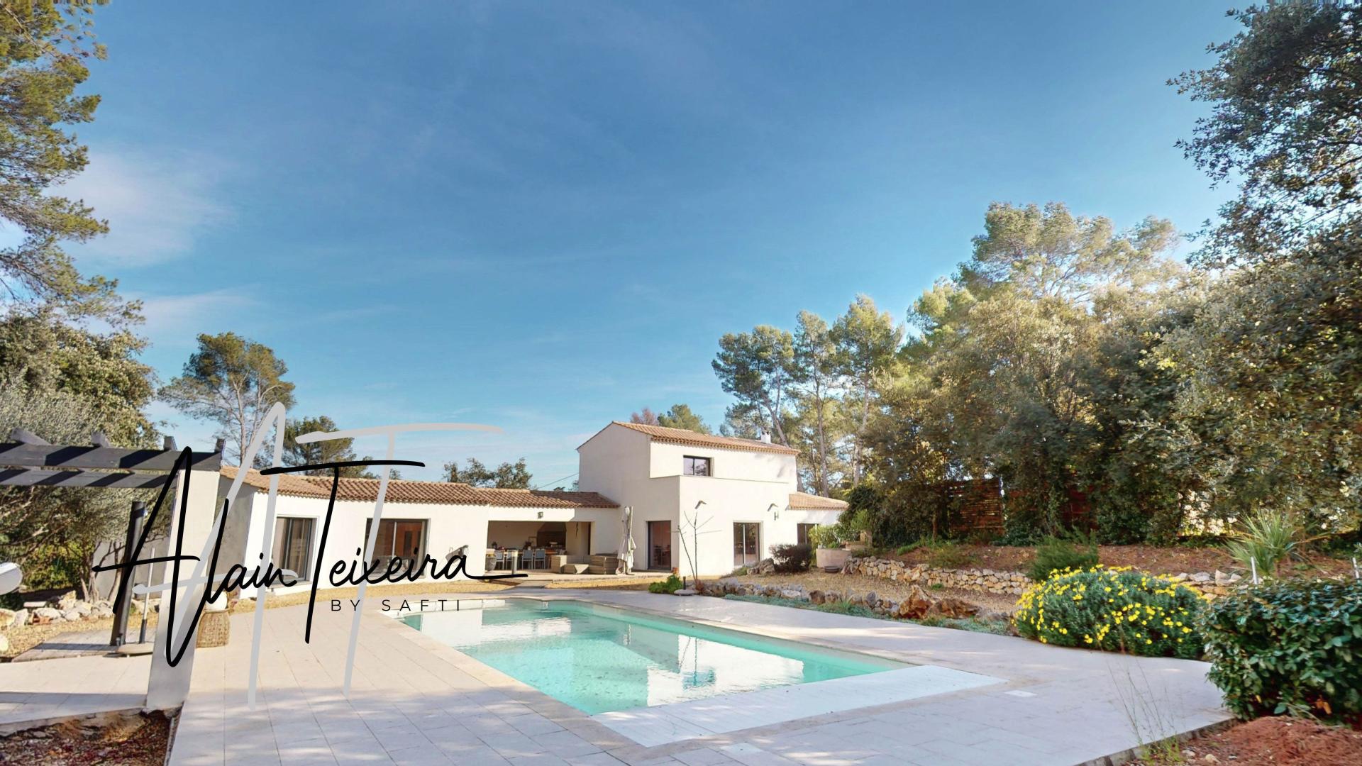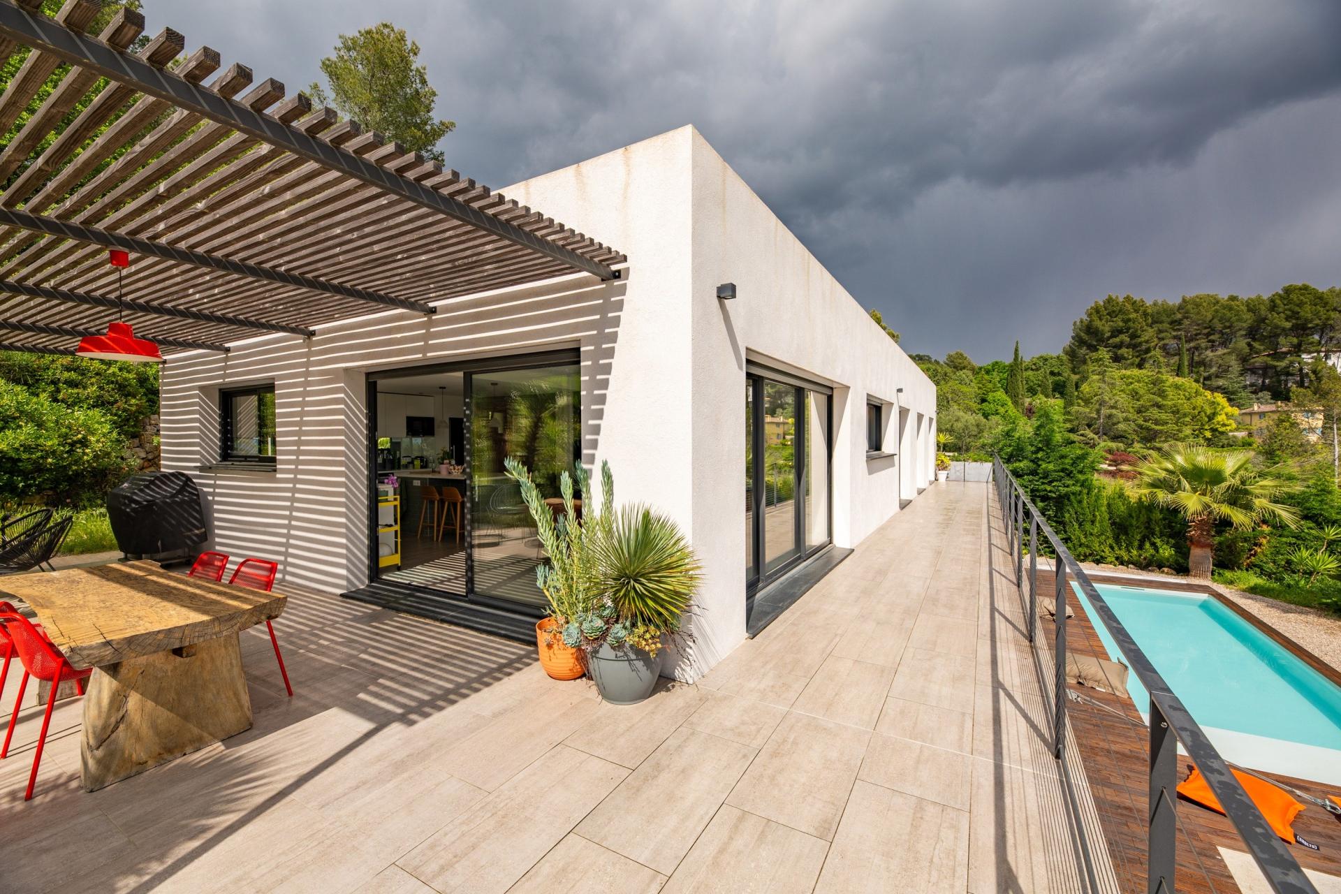A vendre – Maison contemporaine avec vue panoramique à Draguignan Nichée au cœur d’un environnement préservé, cette magnifique maison contemporaine vous séduira par son architecture moderne, ses prestations haut de gamme et sa vue exceptionnelle à couper le souffle. Édifiée sur une vaste parcelle de 4000 m², sans aucun vis-à-vis, elle offre un cadre de vie rare et privilégié. Dès l’entrée, vous découvrirez une spacieuse pièce de vie baignée de lumière, avec de grandes ouvertures sur l’extérieur, un poêle à bois pour les soirées d’hiver, et une cuisine ouverte entièrement aménagée. Un cellier équipé complète cet espace de vie convivial. La partie nuit propose trois belles chambres, dont une suite parentale, conjuguant confort et intimité. Un espace rez-de-jardin accueille un grand appartement T2 indépendant, parfait pour une dépendance, de la location saisonnière ou un revenu complémentaire. Les extérieurs sont tout aussi remarquables : piscine d’un bleu turquoise merveilleux, terrasse panoramique, carport, et une salle d’eau indépendante avec espace bien-être et salle de sport. Climatisation, confort thermique, beaux volumes, prestations soignées… Cette propriété est une invitation à la détente dans un cadre d’exception. Un bien rare à Draguignan, alliant élégance, sérénité et potentiel. Contactez-nous pour une visite privée.