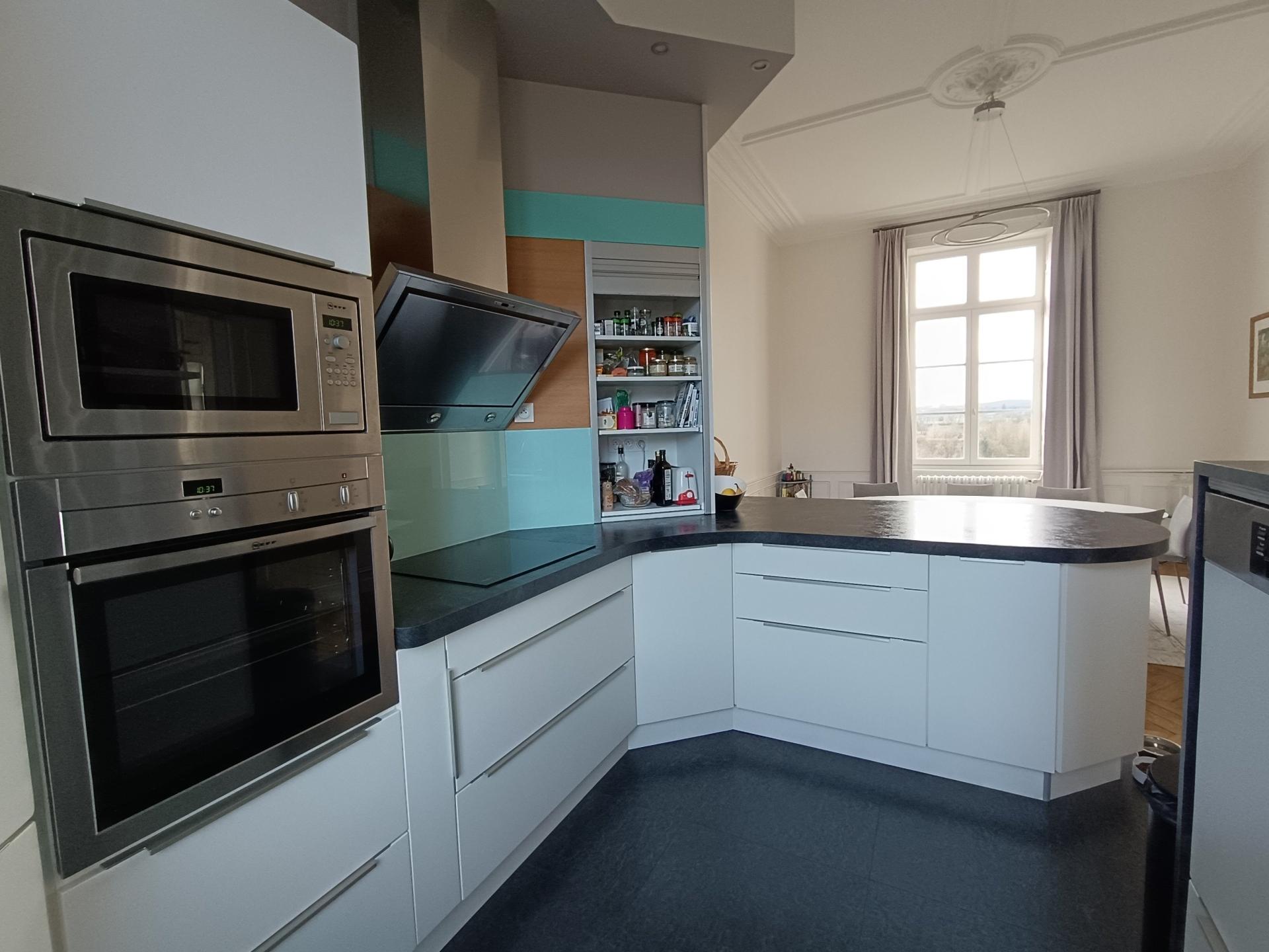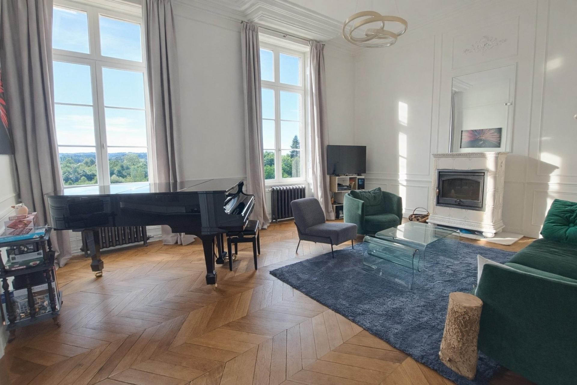 À seulement 30 minutes de Laval (LGV Paris en 1h16), 20 minutes de Fougères, 50 minutes de Rennes ou du Mont Saint-Michel, cette maison de maître historique, fondée en 1820, offre un cadre de vie absolument unique avec une vue époustouflante sur son parc arboré d'essences remarquables, un plan d’eau et la rivière de l’Ernée, le tout sur environ 1,5 ha … en plein centre-ville. Les commerces, écoles et services sont accessibles à pied, sans compromis sur la tranquillité. Exposée plein sud et développant environ 240 m² habitables, la demeure séduit par ses volumes, sa luminosité et la qualité de ses prestations rénovées en 2020, permettant de poser ses valises immédiatement. Dès l’entrée, la maison révèle de belles hauteurs sous plafond et une atmosphère raffinée. Le rez-de-chaussée se compose d’une entrée indépendante, d’une cuisine américaine aménagée et équipée ouverte sur la salle à manger, et d’un salon de réception bénéficiant d’une vue spectaculaire sur le parc et sur la campagne mayennaise, dont un espace boisé de 8 hectares. Les éléments d’époque y sont magnifiquement conservés : parquet en chevron, moulures, rosaces, cheminées, et un élégant poêle en céramique, créant un ensemble chaleureux et sophistiqué. Un bureau complète ce niveau. Au premier étage, avec une hauteur sous plafond de 3 mètres, l’espace nuit accueille une suite parentale de 28 m² avec dressing, deux chambres supplémentaires aux volumes confortables, toutes dotées de cheminées Napoléon III et parquet, ainsi qu’une salle de bains avec douche à l’italienne et double vasque en céramique ancienne, et des WC séparés. Le second étage, propose deux spacieuses chambres, avec poutres apparentes, une salle de bains contemporaine avec douche à l’italienne et WC, ainsi qu’un espace de rangement. En rez-de-jardin, le sous-sol aménagé offre un grand bureau, un atelier, une buanderie et un local technique (pompe à chaleur, ballon d’eau chaude remplacé en 2020), ainsi qu’une vaste pièce de stockage au sol en pierre naturelle d'époque, avec accès direct à la terrasse. Côté sud, une terrasse de 200 m², sans vis-à-vis, surplombe un parc arboré comprenant un verger, un potager, un étang d’environ 5 000 m² et la sinueuse et bucolique rivière de l’Ernée. La propriété dispose de diverses dépendances dont une annexe indépendante d’environ 40 m² au sol avec grenier à aménager, avec accès et jardin privatifs, offrant de multiples possibilités : activité professionnelle, logement indépendant ou projet locatif. Côté technique, la maison est équipée d'un chauffage central par géothermie avec des radiateurs en fonte. Les charges annuelles d'eau chaude, chauffage et électricité sont d'environ 3 000€. Une demeure rare, alliant prestige, volumes et qualité de rénovation, au cœur d’un environnement naturel remarquable, sans renoncer à la vie citadine.