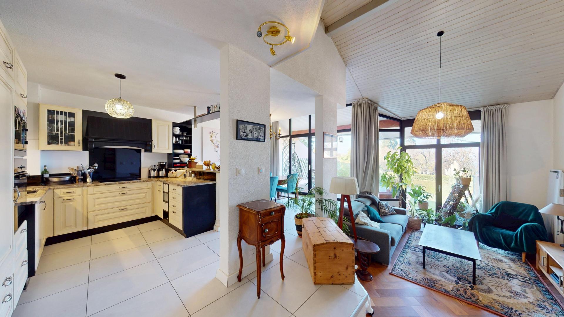 À Évian-les-Bains, au calme et à deux pas du golf, découvrez cette maison impeccable de 118 m², entièrement rénovée en 2021. Édifiée sur un terrain clos et soigné, elle offre une pièce de vie lumineuse de 50 m² avec vue sur le lac Léman et de grandes baies vitrées ouvrant sur une terrasse de 16 m². La cuisine ouverte, moderne et fonctionnelle, s’intègre parfaitement à l’espace. Une chambre de plain-pied, une salle de douche et un WC séparé complètent le rez-de-chaussée. À l’étage : deux belles chambres, dont une avec un grand dressing, ainsi qu’une salle de bains avec WC. Nombreux rangements, garage attenant, et extérieur ensoleillé. Maison sans travaux dans un secteur résidentiel recherché, proche du golf et des commodités.