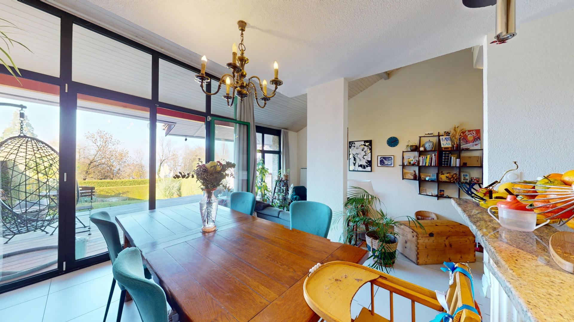 Vue lac depuis le séjour, terrasse 16 m², rénovée en 2021, secteur calme, 3 chambres dont 1 au RDC, garage, nombreux rangements.