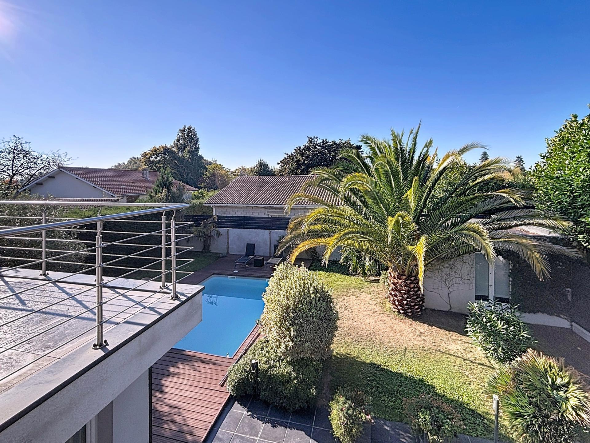 Située au calme à Eysines à seulement quelques minutes à pied du tram, des écoles et des commerces, venez découvrir cette charmante maison familiale de 175 m² sur 575 m2 de parcelle. À l’extérieur, le jardin paysagé sans vis-à-vis invite à la détente avec sa belle piscine.Une dépendance de 15 m², un garage et une buanderie attenants apportent un confort supplémentaire. Depuis l’entrée, vous accédez à une vaste pièce de vie traversante et exposée sud, parfaite pour partager de beaux moments en famille ou entre amis. Une grande cuisine ouverte et entièrement équipée, prolongée par une arrière-cuisine aménagée, séduira les passionnés de gastronomie. Atout indéniable, une vraie cave à vin climatisée comblera les amateurs de vins. À l’étage, le pallier dessert 4 chambres dont 3 disposent de leur propres salles d'eau et un bureau avec mobilier sur-mesure. Parmi ces chambres, une suite parentale avec dressing spacieux, grande salle d’eau et terrasse privative surplombant le jardin et la piscine. Deux wc séparés, un à chaque niveau. Contactez-moi pour plus d'informations.