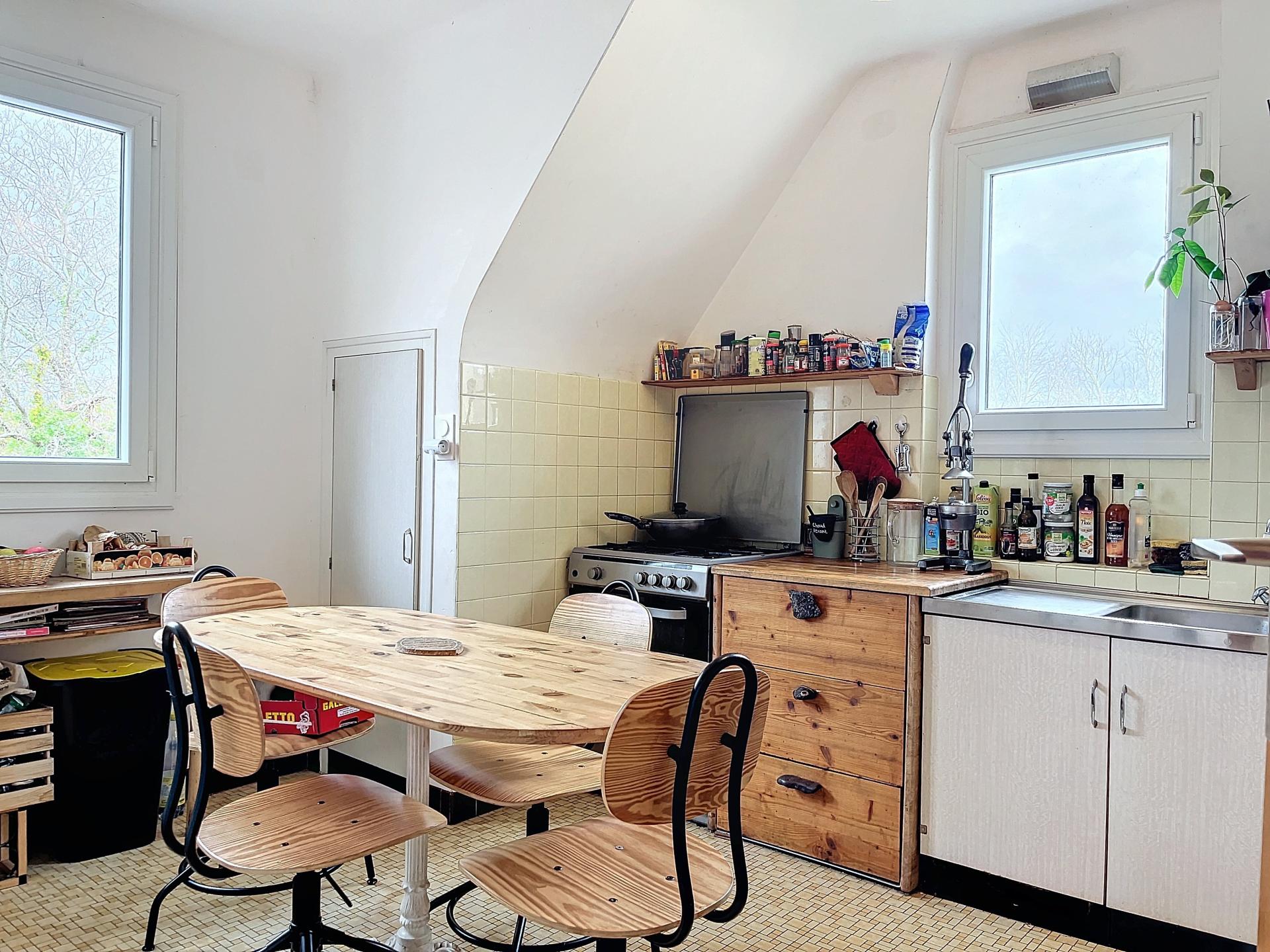 Idéalement située à Mousterlin, Fouesnant. Vous rêvez d’un havre de paix à deux pas de la mer ? Vous chercher une maison à rénover à votre goût ? Cette maison pleine de charme n’attend plus que vous pour retrouver tout son éclat ! Nichée dans un environnement verdoyant et paisible, elle bénéficie d’un vaste terrain de 1,4 hectare, idéal pour profiter du grand air, jardiner ou accueillir des animaux. Le rez-de-chaussée, à rénover selon vos goûts, offre un beau potentiel d’aménagement avec : une entrée, une cuisine, une pièce de vie agrémentée d’un poêle à granulés, un espace atelier, une salle d’eau avec toilettes, une buanderie et un garage. À l’étage, la maison propose une pièce de vie baignée de lumière, une cuisine, trois chambres confortables, une salle de bain et des toilettes séparés. Le balcon plein sud vous invite à savourer les beaux jours tout en profitant d’une vue dégagée sur la nature. Une dépendance attenante (à rénover) vient compléter l’ensemble, comprenant une chambre d’été, une salle d’eau avec toilettes, un grand garage et un comble aménageable. Travaux déjà réalisés : Électricité refaite, fenêtres changées, installation d’un poêle à granulés (sortie à l’étage) Toiture en ardoises en bon état Orientation plein sud et grande luminosité : un lieu de vie chaleureux, à personnaliser selon vos envies. Maison disponible immédiatement, un vrai potentiel à révéler ! Contactez-moi pour organiser une visite !