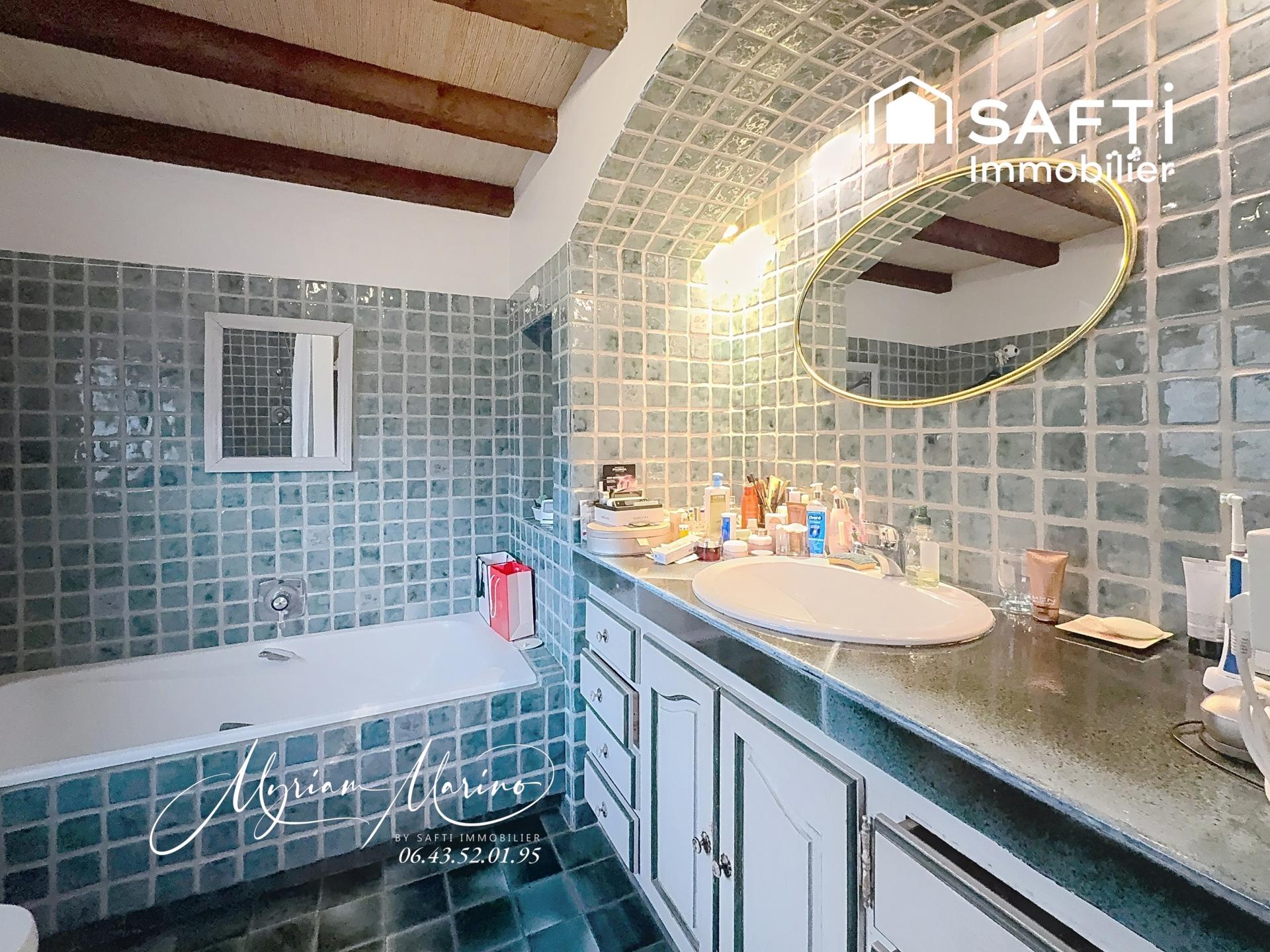 Située à Saint-Aygulf (83370), maison de caractère, construction traditionnelle, avec aperçu mer d’une superficie habitable d’environ , au sein d’un terrain arboré d’essences méditerranéennes. La maison principale offre de beaux volumes et une distribution fonctionnelle. Elle s’ouvre sur une entrée desservant un vaste salon-séjour cheminée, une arrière cuisine et une cuisine indépendante prolongée d’une salle à manger ouvrant sur une terrasse couverte avec un espace barbecue. L’espace nuit se compose de quatre chambres, dont deux à l’étage l’une bénéficiant en outre d’une terrasse privative et une salle de bains et deux autres chambres de plain pied disposant chacune de leur salle d’eau. En annexes, la propriété dispose d’un studio indépendant d’environ 30 m², idéal pour recevoir ou pour un usage locatif. Un garage et un Carport 2 places en structure métallique complètent les stationnements. À l’extérieur, vous profiterez d’une piscine au sel de 10 x 5 mètres, avec une profondeur pouvant atteindre 2,30 m, parfaitement intégrée dans un environnement verdoyant. Prestations : climatisation, fibre optique, sols en terre cuite, ensemble entretenu et fonctionnel. Pour plus d’informations contactez Marino safti immobilier, visite virtuelle sur demande .. L'année de construction 1974 assure une solidité et un cachet appréciables.