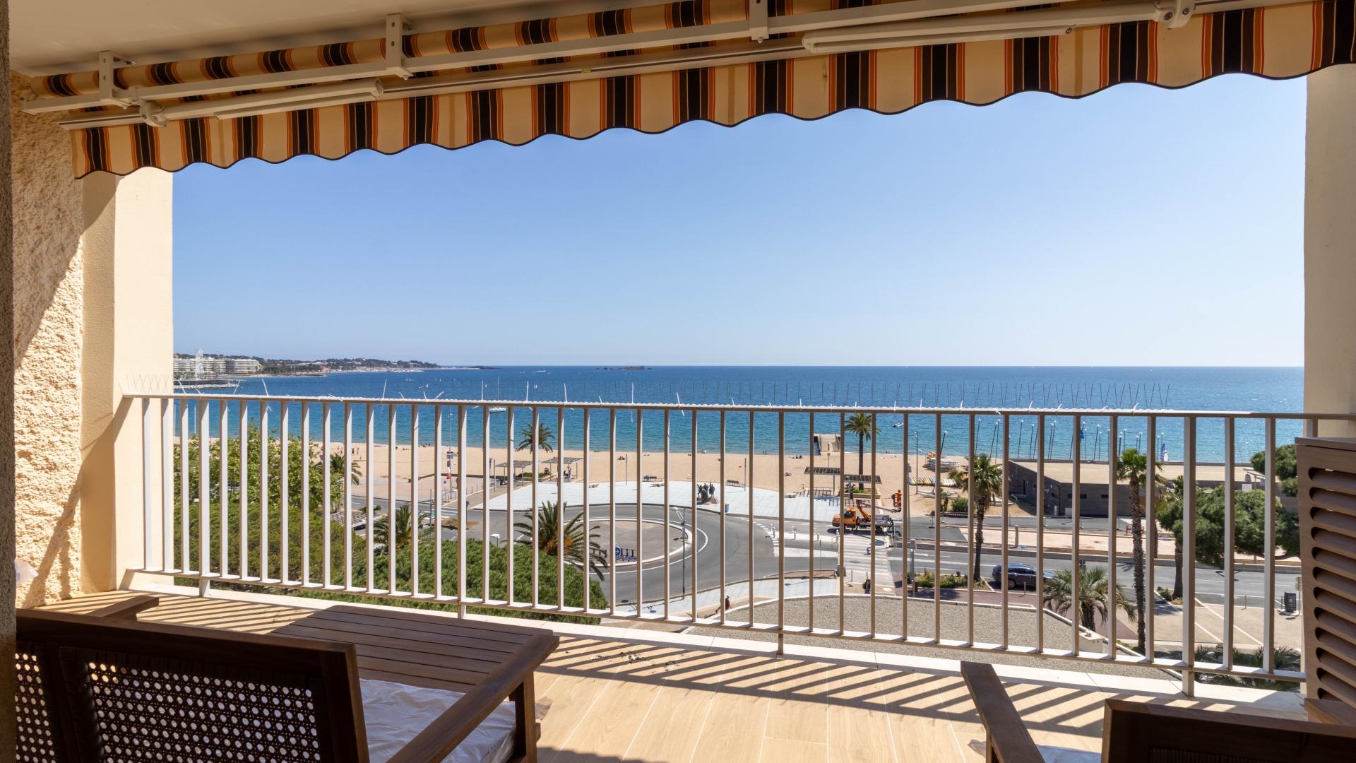 Idéalement situé en première ligne face à la mer, au cœur de Fréjus Plage, ce superbe appartement 3 pièces en étage élevé offre un panorama spectaculaire sur la Méditerranée et la baie de Saint-Raphaël. Entièrement rénové avec soin par une architecte d’intérieur, ce bien de standing séduit immédiatement par la qualité de ses prestations, le choix de matériaux haut de gamme et une décoration élégante et contemporaine. Vendu partiellement meublé, il bénéficie de garanties complètes sur la rénovation réalisée en 2025 (électricité, plomberie, etc.). L’appartement se compose d’une lumineuse pièce de vie avec cuisine équipée haut de gamme, ouverte sur une agréable terrasse avec vue mer, idéale pour profiter pleinement du cadre exceptionnel. Il dispose également d’une buanderie, de deux chambres dont une avec dressing, ainsi que d’une salle d’eau moderne. Parfaitement agencé et baigné de lumière, ce bien offre un cadre de vie rare et privilégié. Ses atouts : * Vue mer imprenable et exposition idéale * Rénovation complète avec prestations de qualité * Étage élevé avec ascenseur * Garage fermé et cave Situé au sein d’une résidence sécurisée avec gardien, cet appartement bénéficie d’un emplacement recherché, à proximité immédiate des plages de sable, des commerces, des restaurants et de la gare. Un bien coup de cœur, alliant confort, élégance et situation exceptionnelle.