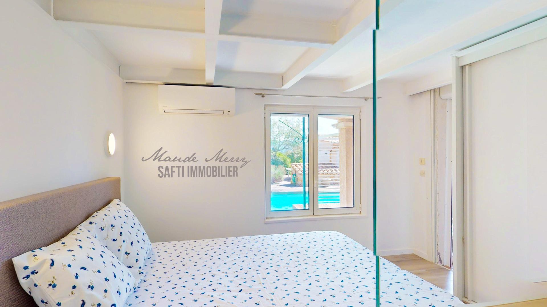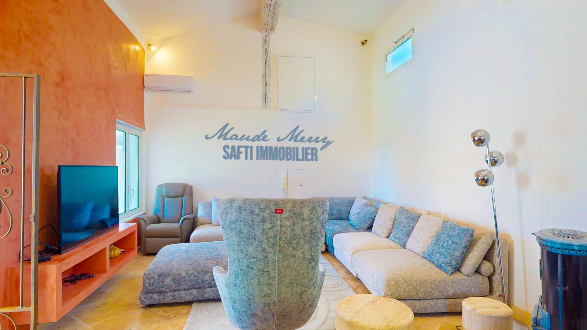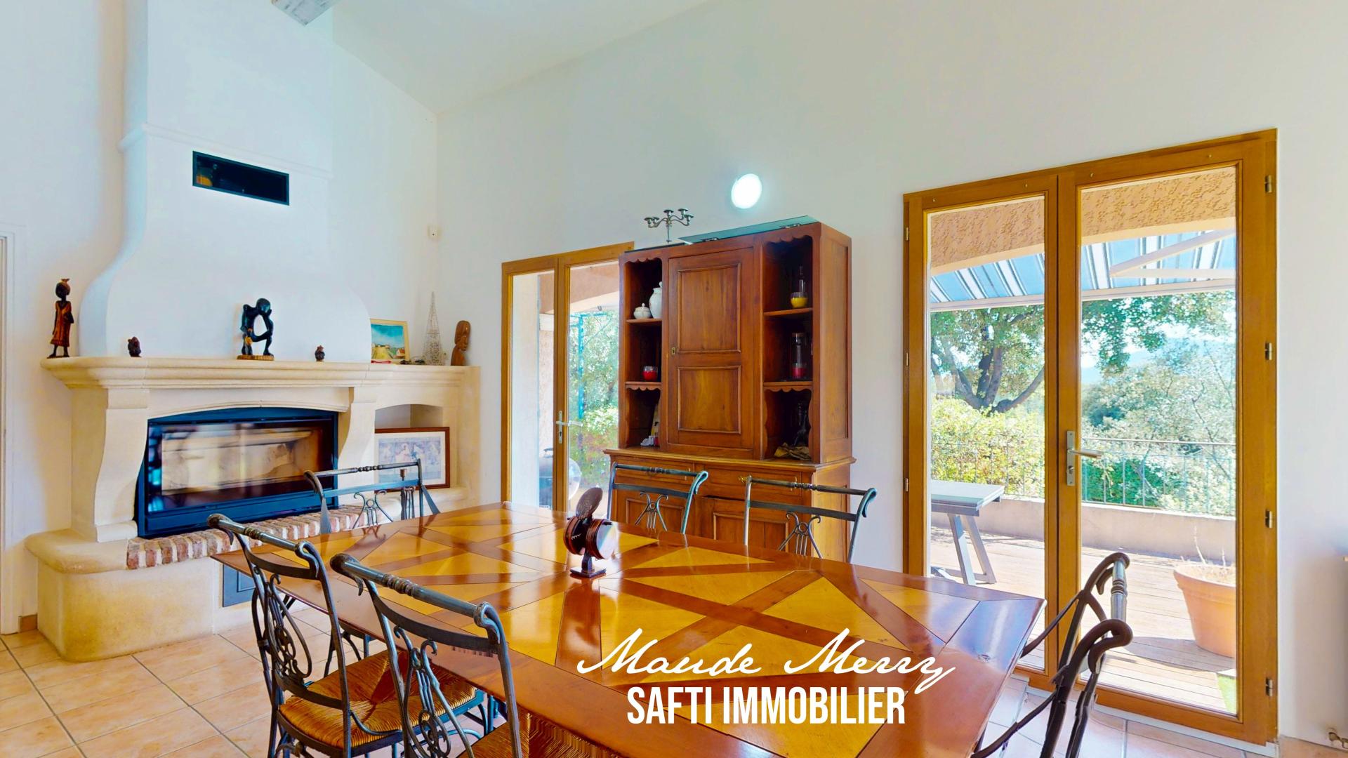 Très belle villa de plain pied avec dépendance, le tout d'une surface habitable totale d'environ 170 m2, aux prestations soignées bénéficiant d'une vue dominante dont l'exposition est idéale : plein sud, au calme et sans aucun vis-à-vis ! La villa se compose d'un hall d'entrée s'ouvrant sur un vaste séjour et sa superbe cuisine ouverte haut de gamme de près de 45 m2 avec cheminée/insert surplombé par une grande mezzanine de 18 m2 ainsi qu'un salon indépendant très cocoon de 27 m2 avec poêle Godin. Un premier espace nuit comporte une première suite parentale de 21 m2 avec un grand dressing aménagé et sa salle d'eau privative d'un peu plus de 6 m2 avec wc, une buanderie et un deuxième w-c séparé. On découvrira ensuite un deuxième espace nuit indépendant composé d'une chambre d'un peu plus de 12 m2 avec salle d'eau et wc. La visite s'achèvera par une belle dépendance de 26 m2 composée de deux chambres avec chacune son coin douche privatif ainsi qu'un wc séparé. Le terrain paysagé d'une surface d'environ 1650 m2 vous charmera avec sa jolie piscine entourée d'une grande plage en teck, une cuisine d'été aménagée avec douche extérieure et wc. Un grand abri voiture et un deuxième abri voiture/bateau/camping car se trouve également sur la propriété profitant d'un accès aisé. Y Déposer ses valises et profiter semble être la formule la plus appropriée pour cette superbe propriété ! !!! VISITE VIRTUELLE DISPONIBLE... Contactez-moi !!!