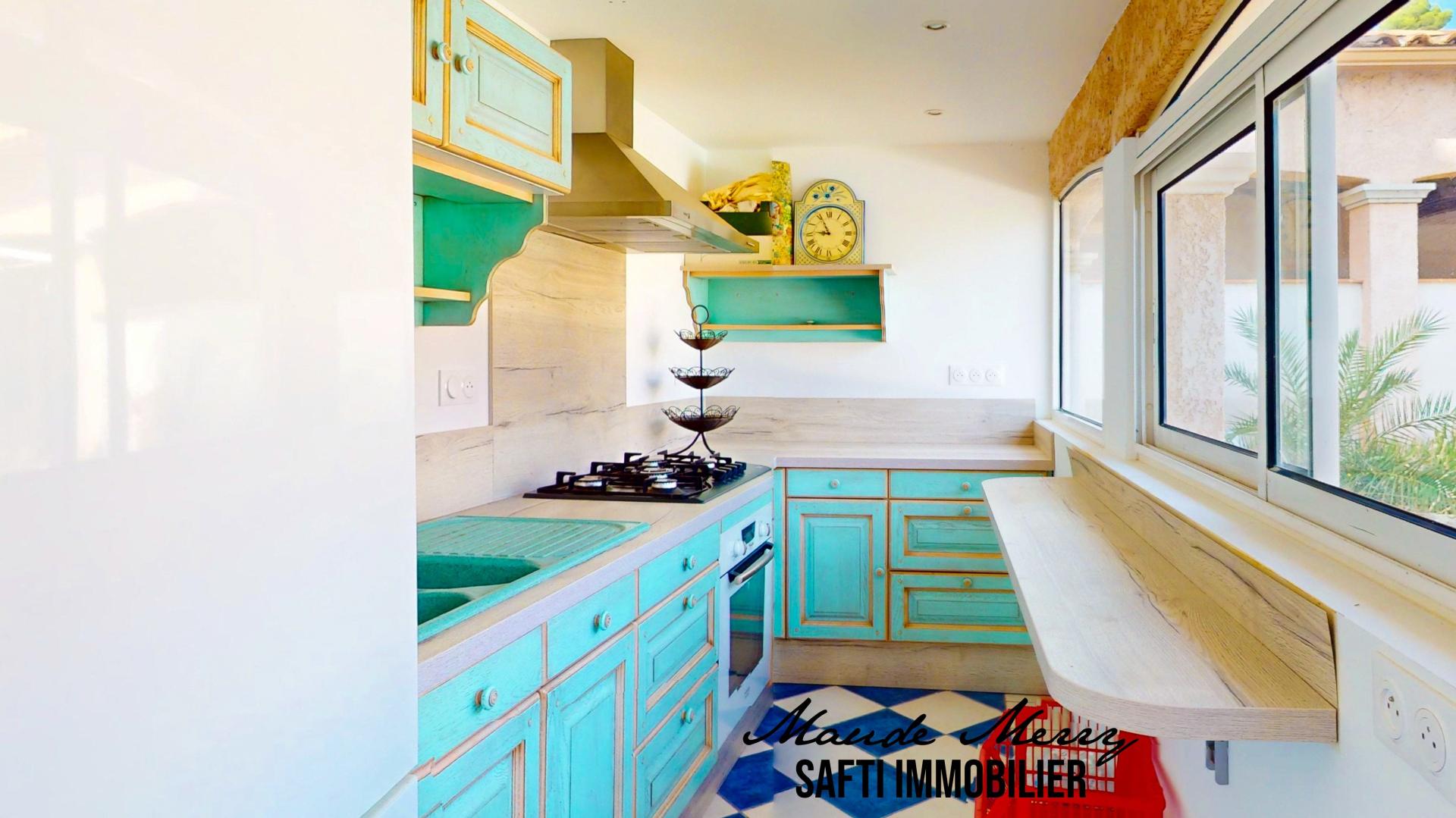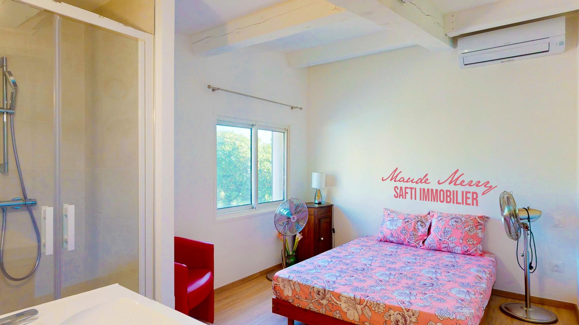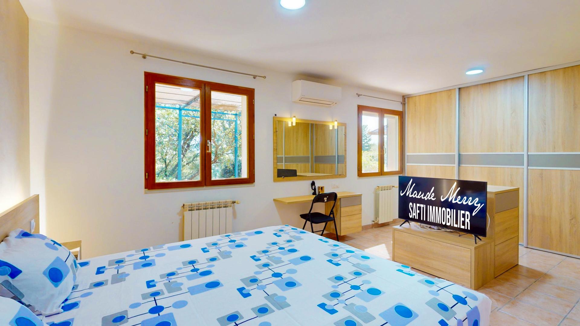Villa de plain-pied + dépendance, le tout 170 m2 habitable - 4 chambres avec chacune sa salle d'eau privative - cuisine d'été - piscine - deux abris voiture - terrain de 1650 m2 en posiiton dominante, plein sud, au calme et sans vis-à-vis