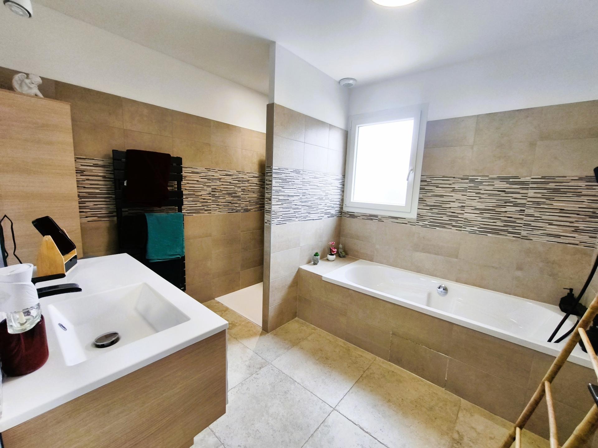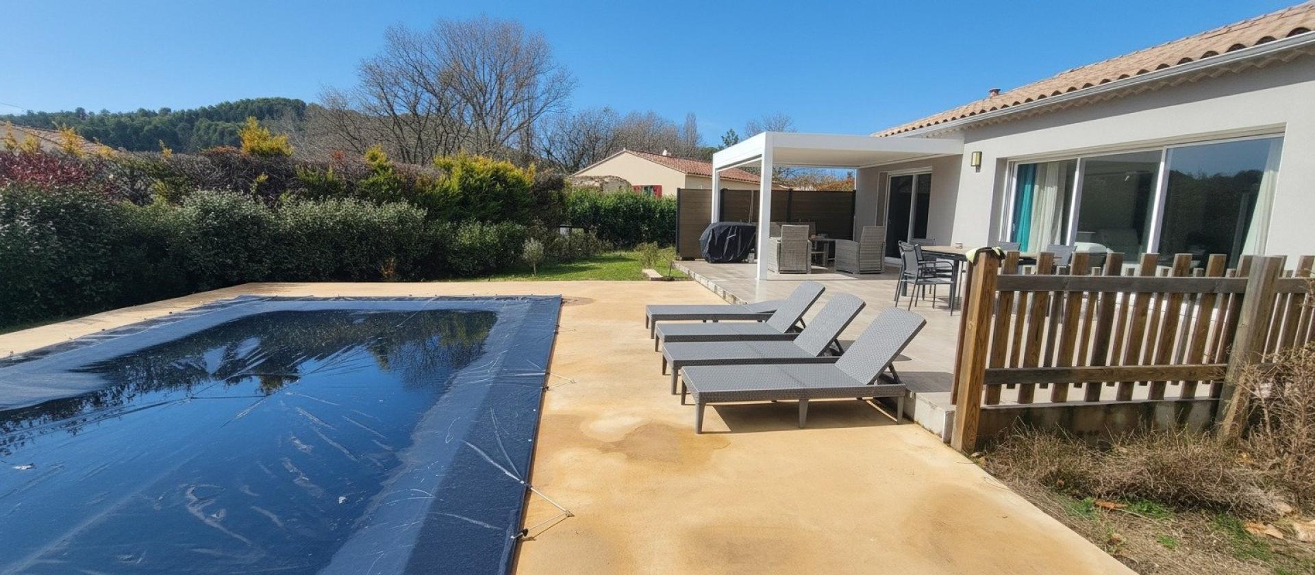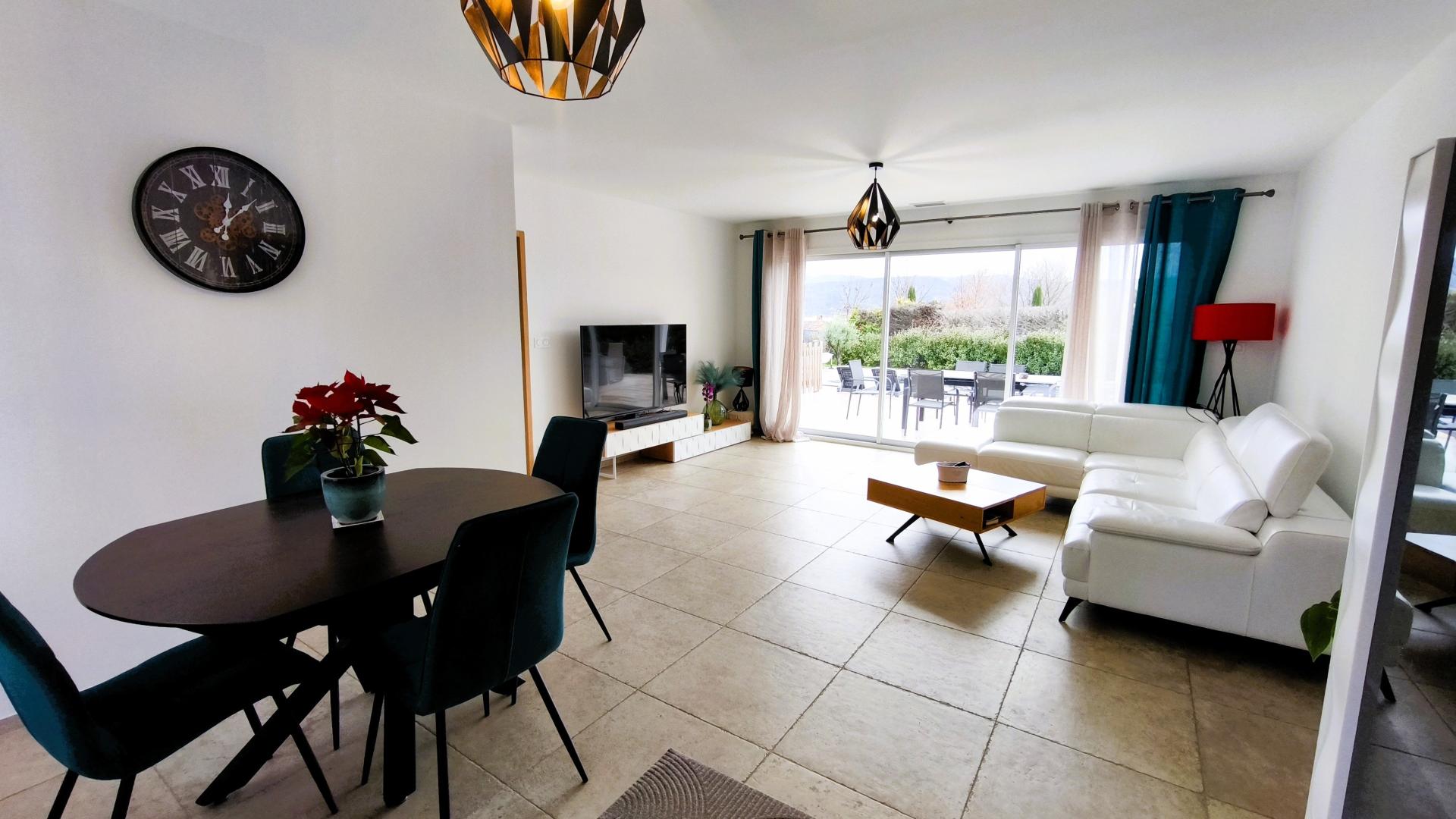Située dans un environnement privilégié au cœur du Luberon, cette villa contemporaine construite en 2022 allie modernité, performance énergétique et emplacement stratégique. À deux pas du village de Gargas et à quelques minutes d’Apt, elle offre un accès immédiat aux villages classés (Roussillon, Bonnieux, Gordes) et se situe à seulement 15 minutes à pied du plan d'eau d'Apt. Caractéristiques Extérieures Le terrain de 1 017 m² est parfaitement aménagé pour la détente et la convivialité : Piscine : Bassin de 8x4 m (fond plat 1,50 m), idéal pour la baignade familiale. Terrasse : Un vaste espace de 50 m² pour vos réceptions en extérieur. Stationnement : Garage de 28 m² avec volet roulant motorisé et deux places de parking privatives. Aménagements Intérieurs (100 m² habitables) La maison propose une distribution fluide et des volumes optimisés : Espace de vie : Un salon lumineux de 32 m² complété par une cuisine dînatoire entièrement équipée de 20,50 m². Espace Nuit & Rangement : Deux chambres de 10 m², un dressing dédié de 6 m² et un cellier/buanderie fonctionnel de 8 m². Salle de Bain : Une pièce d'eau spacieuse de 8 m² équipée d’une baignoire et d’une douche. Fiche Technique & Équipements Année de construction : 2022 (sous garanties décennales). Climatisation/Chauffage : Système par pompe à chaleur (PAC) gainable, offrant un confort thermique invisible et silencieux dans chaque pièce. Menuiseries : Double vitrage avec volets roulants électriques sur l'ensemble de l'habitation. Assainissement : Tout-à-l'égout.