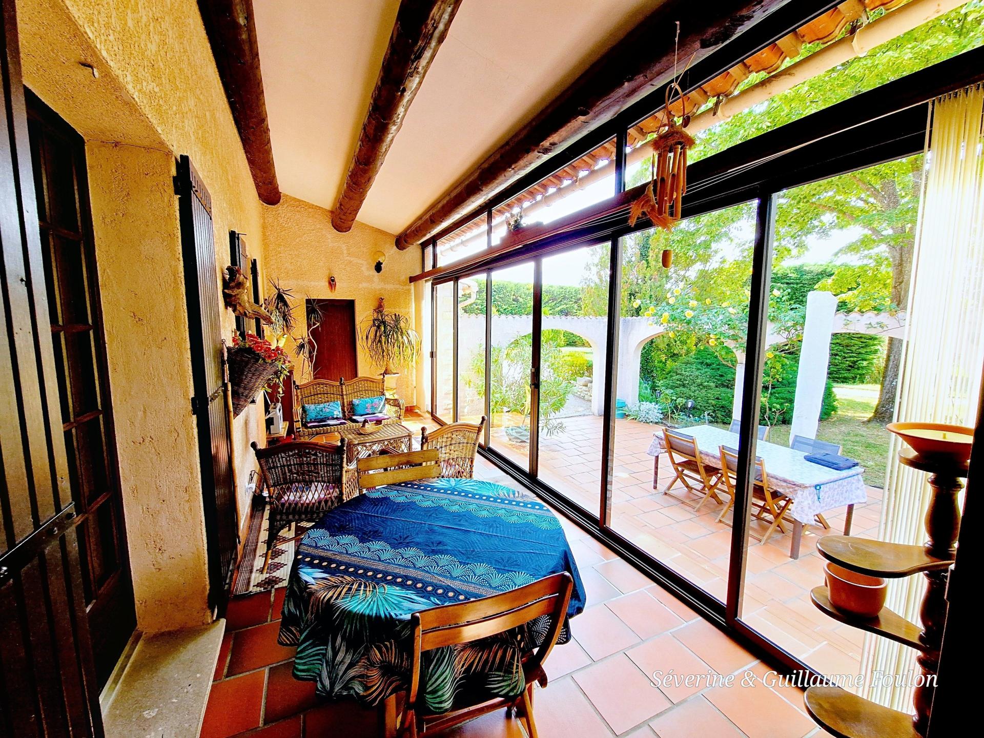 Nichée dans un hameau paisible de Gargas, entourée de champs de lavande, cette propriété unique vous offre un cadre idyllique où confort et authenticité se conjuguent harmonieusement. Au bout d’un chemin discret, l’entrée se fait par un portail électrique ouvrant sur un parc paysager de 4 000 m². La végétation soigneusement entretenue invite à la détente, tandis que la grande terrasse est idéale pour savourer des repas en plein air. Une piscine de 10x5m, accompagnée de sa douche et de ses toilettes, promet de délicieux moments sous le soleil méditerranéen. Un carport protège voitures et camping-car, un cabanon permet un stockage supplémentaire et un puits vient parfaire le charme bucolique du lieu. L'habitation principale de 145 m² déploie des espaces généreux et lumineux. Son salon spacieux avec cheminée et mezzanine offre un cadre convivial, tandis que la cuisine indépendante séduira les passionnés de gastronomie, le tout donnant sur une belle véranda. Deux chambres, dont une avec salle d’eau, ainsi qu’une grande salle de bain avec baignoire, douche et WC complètent cette demeure, sans oublier deux garages spacieux. En complément, une dépendance de 41 m² propose une pièce de vie avec mezzanine, deux chambres, une salle de bain et une pièce avec cheminée, qui peut être reliée pour encore plus de confort. Cette propriété rare combine espace, élégance et sérénité, offrant un cadre de vie unique au cœur du Luberon.