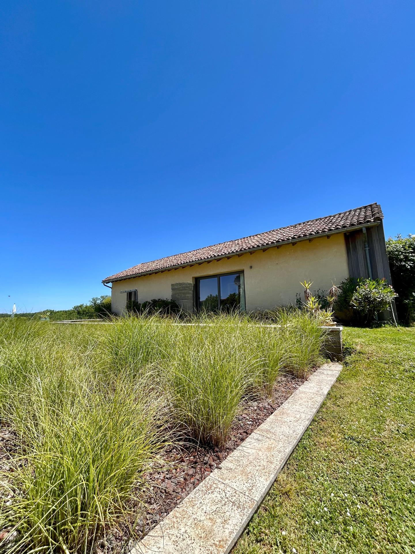 Située au cœur de l'Entre-deux-Mers, cette ancienne grange entièrement rénovée par un architecte, offre une expérience de vie rare et authentique. Mariant avec brio le charme rustique de la pierre et du bois à l’élégance contemporaine, ce domaine de caractère s’étend sur 1,5 hectare de nature préservée. Dès l’arrivée, le calme environnant et la beauté naturelle du paysage séduisent. En bout de chemin, à l’abri des regards, la propriété principale développe 420 m² d’espaces lumineux aux volumes spectaculaires. Le salon, ouvert sur une cuisine moderne et sur une vaste pièce de vie dotée d’une cheminée, impressionne par sa hauteur sous plafond et sa charpente apparente. De larges baies vitrées inondent les lieux de lumière et offrent une vue imprenable sur les vignes et la campagne environnante. À l’étage, une spacieuse suite parentale avec salle de bains privative complète l’espace nuit de la maison principale, dans une ambiance de sérénité. Une élégante dépendance de 120 m² vient enrichir cet ensemble, offrant deux grandes suites indépendantes, chacune avec sa propre salle d’eau, et un salon central idéal pour accueillir famille ou invités en toute intimité. Les extérieurs sont tout aussi remarquables : une immense piscine 17X5 au cœur d’un jardin paysager, deux terrasses entourant la maison, une terrasse d’été couverte pour les repas en plein air, une forêt attenante… Chaque espace a été pensé pour savourer le calme, la nature et les plaisirs de la vie au grand air. Ce bien unique, alliance parfaite entre patrimoine et design, est une invitation à ralentir, se ressourcer, et vivre pleinement dans un cadre bucolique d’exception.