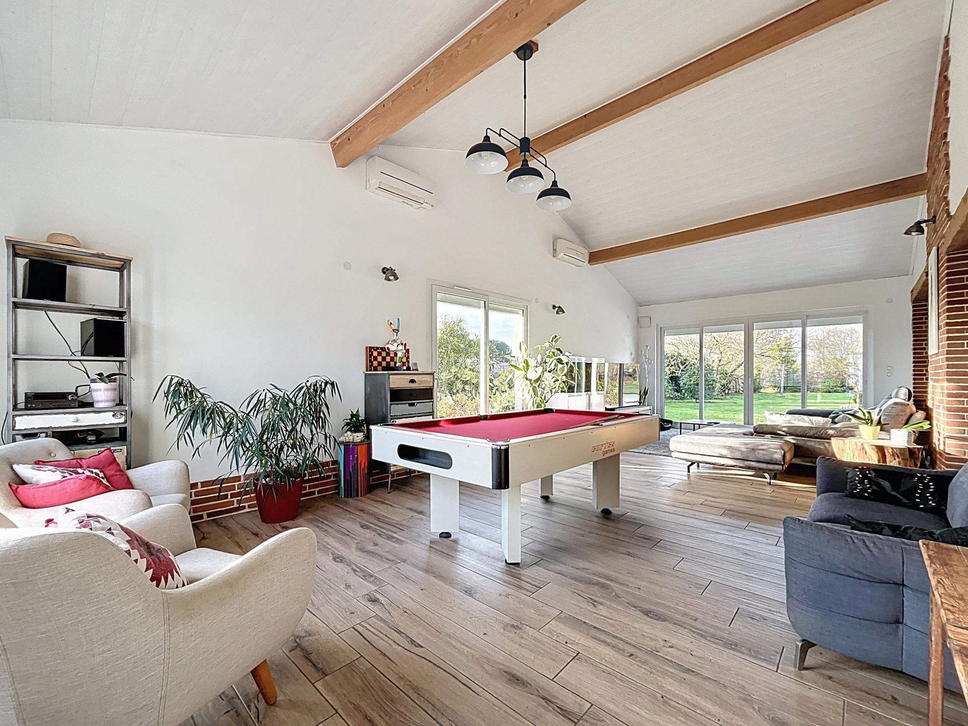 Belle maison traditionnelle de 1975, rénovée au fil du temps avec des matériaux de très bonnes qualités. La parcelle mesure environ 8450m² (zone agricole, non divisible). Elle se situe dans la petite commune de Saint Caprais, dépendante de Grenade-sur-Garonne au nord de Toulouse. Elle est à mi-chemin entre Grenade et St Jory et proche de l'autoroute. En entrant sur la propriété, vous profiterez d'un très grand espace dont un espace vert arboré et une cour pour y stationner plusieurs véhicules. Vous avez égalmeent une grande dépendance de 140m² (non isolée, structure acier, mur en parpaing) fermée par une porte automatique sectionnelle et un accès piéton. Cette dépendance peut accueillir plusieurs véhicules grâce à une partie faisant environ 96m², il y a également d'autres pièces pouvant servir d'atelier et de lieu de stockage. Côté maison, vous accèderez directement sur un espace de vie (environ 41m²), très lumineux avec de nombreuses ouvertures ayant une belle hauteur sous un plafond mansardé. En continuant, vous avez une salle à manger (environ 32m²) avec un beau poêle à bois. Une cuisine avec un îlot central, ouverte par ces verrières (environ 19m²) entièrement équipée. En plus de la fenêtre, vous avez une porte-fenêtre donnant sur le devant de la maison. En continuant par le dégagement, vous avez accès : - 4 chambres de 9 à 13m² - 1 magnifique suite parentale d'environ 29m² avec une salle de bain entièrement équipée avec un grand meuble vasque, un sèche-serviette, une grande douche italienne et un WC suspendu, puis un dressing. De cette suite parentale vous avez une grande baie coulissante, mais également une porte de service. - 1 salle de bain (environ 9m²) éuipée d'un meuble vasque, une douche style italienne, un sèche-serviette, deux placards. - 1 toilette suspendue - 1 cellier avec cumulus 250L thermodynamique - 1 buanderie (environ 9m²) A l'extérieur, vous avez une véranda d'environ 28m², une piscine au milieu d'une terrasse d'environ 50m². Le jardin, sans vis-à-vis, arboré avec différents abris (bois, etc...), arrosage intégré sur toute la parcelle. Présence d'environ 25m² de comble pour du stockage ou un future aménagement. Technique : - Electricité remise en conformité en 2017/2018 - Cumulus remplacé en 2020 par un système thermodynamique de 250L - Menuiseries remplacés entre 2020 et 2023, avec installations de nombreux volets coulissants électrique. Côté chambres, il y a des moustiquaires coulissantes. - Isolation remise à niveau côté salon. - Réfection de la toiture en septembre 2025 : tuiles neuve, reprise de charpente ainsi que la pose d'un écran sous toiture. Chauffage : - Poêle à bois - 2 pompes à chaleur dans le salon, dont une installée en 2017 - Plusieurs radiateurs à inertie en complément. Les sols : Carrelage et parquet flottant Piscine : - 4x8m - profondeur environ 1.50m - Pompe à chaleur - liner - traitement sel