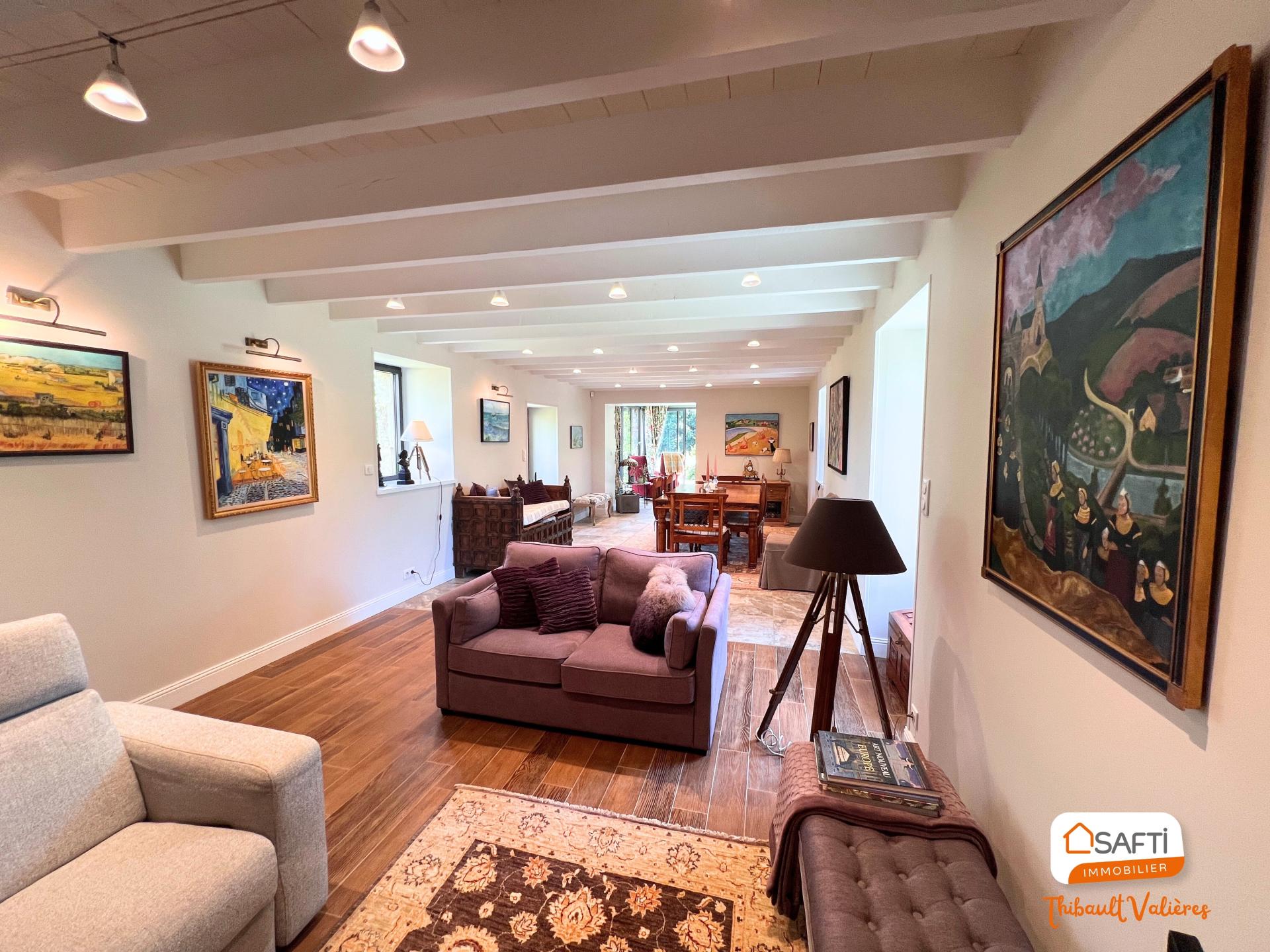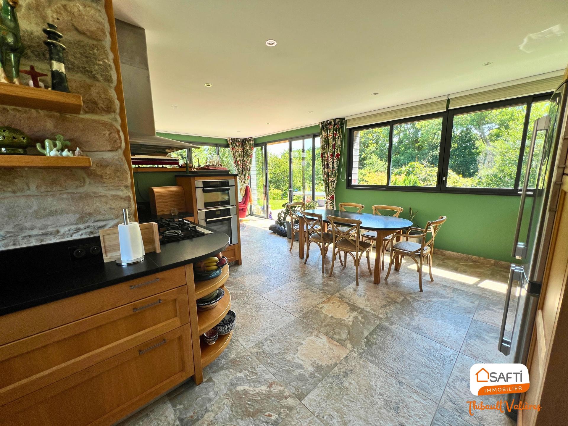 Située à Guimaëc (29620), dans une impasse , cette magnifique propriété en pierre de caractère, entièrement rénovée en 2014 , bénéficie d'un environnement exceptionnel entre mer et campagne. Profitez d'une exposition plein Sud offrant une luminosité naturelle toute la journée. Dotée d'un vaste terrain de 24 497 m², cette demeure jouit d'une atmosphère paisible et non loin du bord de mer, idéale pour les amoureux de la nature. Vous apprécierez les commodités telles qu'un interphone , un garage et de dépendances laissant libre cours aux futurs aménagement. À l'extérieur, vous trouverez un parc paysager soigneusement entretenu, accompagné d'une maison d'amis pour recevoir en toute sérénité. Cell-ci est actuellement exploitée en activité de gîte. Les murs en pierre ajoutent du cachet à l'ensemble, offrant un charme authentique à cette propriété d'exception. Vous trouverez aussi 250 pieds de vigne (sauvignon) pour les amateurs de vins À l'intérieur, la maison de 307 m² se compose de 12 pièces, dont 1 salon séjour de 47m2, une cuisine gorgée de lumière de 37,5m2, un bureau de 18m2 et 6 chambres dont une master de 28m2 et 4 salles de bain Chaque espace a été pensé avec soin et raffinement, alliant éléments d'origine et confort moderne. L'ambiance chaleureuse et conviviale se dégage des pièces spacieuses. Cette propriété représente une opportunité unique pour profiter d'un cadre de vie haut de gamme, alliant élégance, confort et sérénité.