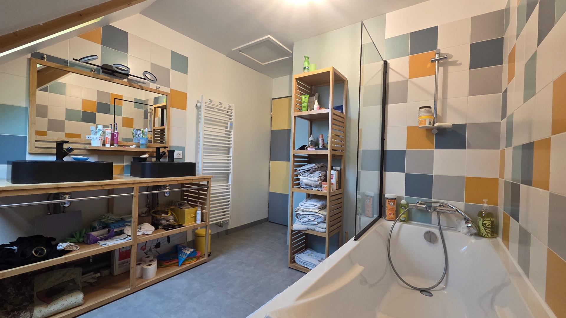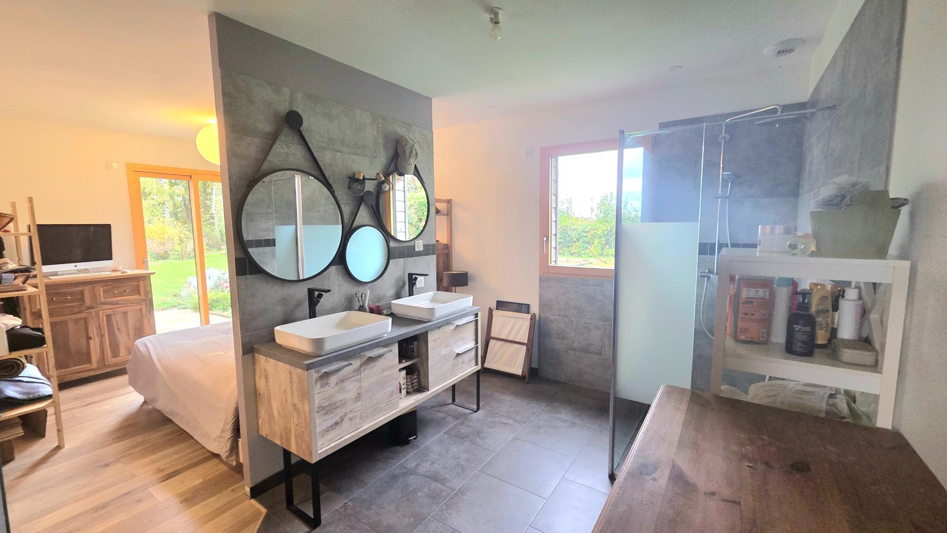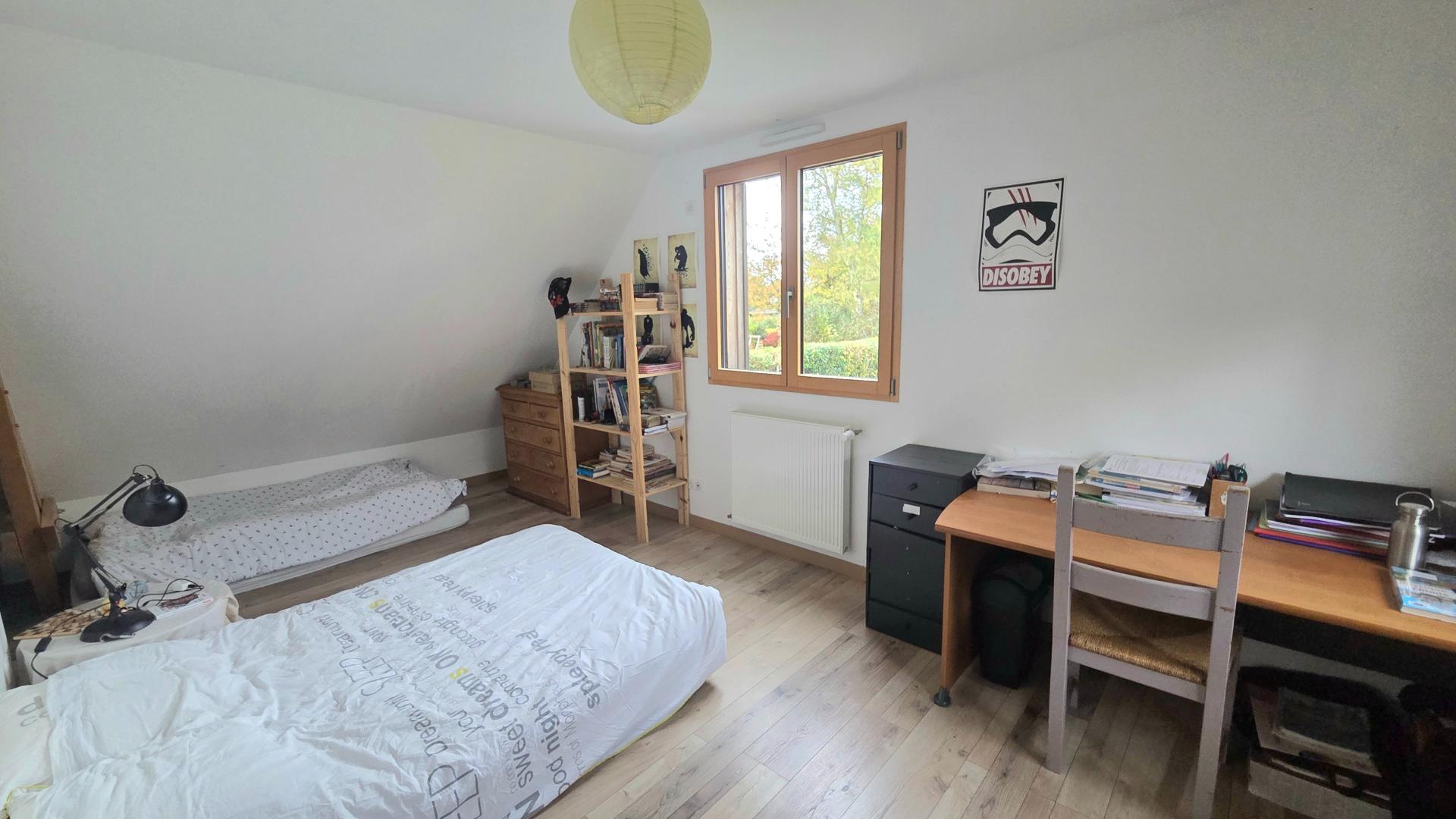 Située dans un hameau verdoyant à Isneauville, venez découvrir cette charmante propriété qui bénéficie d'un environnement paisible et familial, à proximité des commerces et des écoles. Cette maison en ossature bois, construite en 2020 et orientée plein sud, offre une surface habitable de 177 m². Son rez-de-chaussée se compose d'une entrée, d'une grande pièce de vie lumineuse avec un toit cathédrale et une triple exposition qui vous permettra de profiter du spectacle de la nature en toutes saisons. Une grande cuisine ouverte allie fonctionnalité et convivialité. Côté nuit, une belle suite parentale avec salle de douche privative et une autre chambre pouvant être aménagée en espace de travail. Côté pratique, une buanderie, un cellier et un wc complètent ce niveau. À l'étage, une mezzanine dessert trois grandes chambres supplémentaires, une salle de bains et un wc. Édifiée sur un terrain de 2133 m² qui offre de l'espace pour des activités en plein air, la propriété présente un beau jardin arboré, agrémenté d'un terrain de boules bretonnes ainsi que d'un abri de jardin. Cette demeure allie confort contemporain et fonctionnalité pour répondre aux besoins d'une famille en quête d'un nouveau chez-soi chaleureux. Idéalement positionnée, elle offre un accès facile à la nature environnante tout en restant proche des commodités essentielles. La maison est équipée d'une pompe à chaleur air/eau avec chauffage au sol. Le diagnostic de performance énergétique A est un vrai atout écologique et économique. Les amoureux de la tranquillité y trouveront ici un cadre de vie idéal, alliant confort et sérénité.