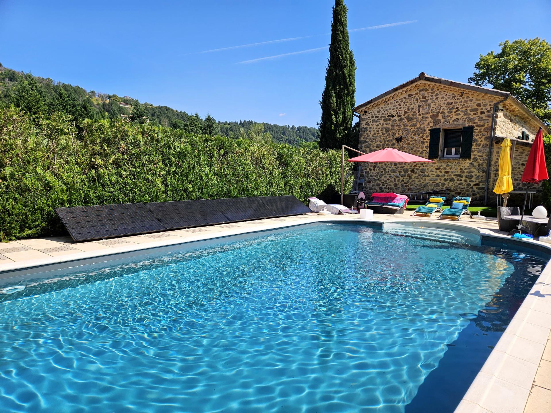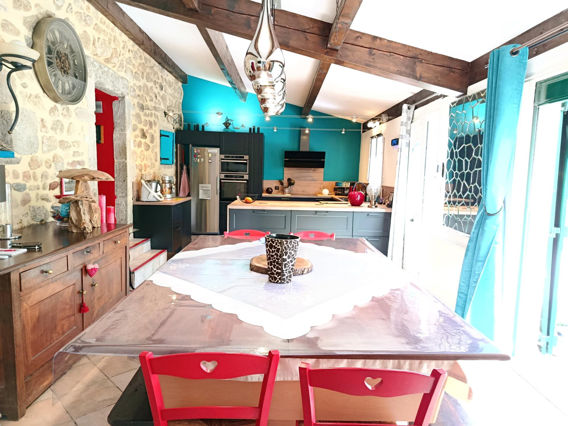 Située dans la charmante commune de Jaujac (07380), cette propriété offre un cadre de vie paisible au cœur de la nature, à proximité de toutes les commodités. Nichée sur un terrain de 8620 m², en zone naturelle et agricole clos et arboré avec portail automatique, cette maison en pierre séduit par son environnement calme et verdoyant, tout en offrant un accès facile aux commerces et services du village. Les espaces extérieurs soigneusement aménagés comprennent une piscine de 12M/6 avec un liner neuf, un cabanon, un terrain de pétanque avec four à pizza et barbecue en pierre. Idéal pour profiter des journées ensoleillées en famille ou entre amis. vous avez également un grand potager avec un puits et un arrosage automatique. Cette maison de 165 m² habitables est un véritable havre de paix. Au rez-de-chaussée, une grande véranda, un atelier, une réserve avec cave à vin, un grand salon lumineux avec cheminée, une cuisine équipée et aménagée fonctionnelle neuve, une buanderie, un WC, une salle d'eau rénové, un garage, un cabanon de rangement offrent un confort au quotidien. À l'étage, quatre chambres spacieuses avec placards et une salle de bain complète garantissent intimité et espace pour toute la famille. Avec ses caractéristiques uniques et ses finitions soignées, cette propriété allie confort moderne et charme authentique, offrant un cadre de vie idéal pour les amoureux de la nature et de la tranquillité. Raccordement au réseau collectif et panneaux solaires offrant une consommation d’énergie très satisfaisant. A visiter sans tarder.