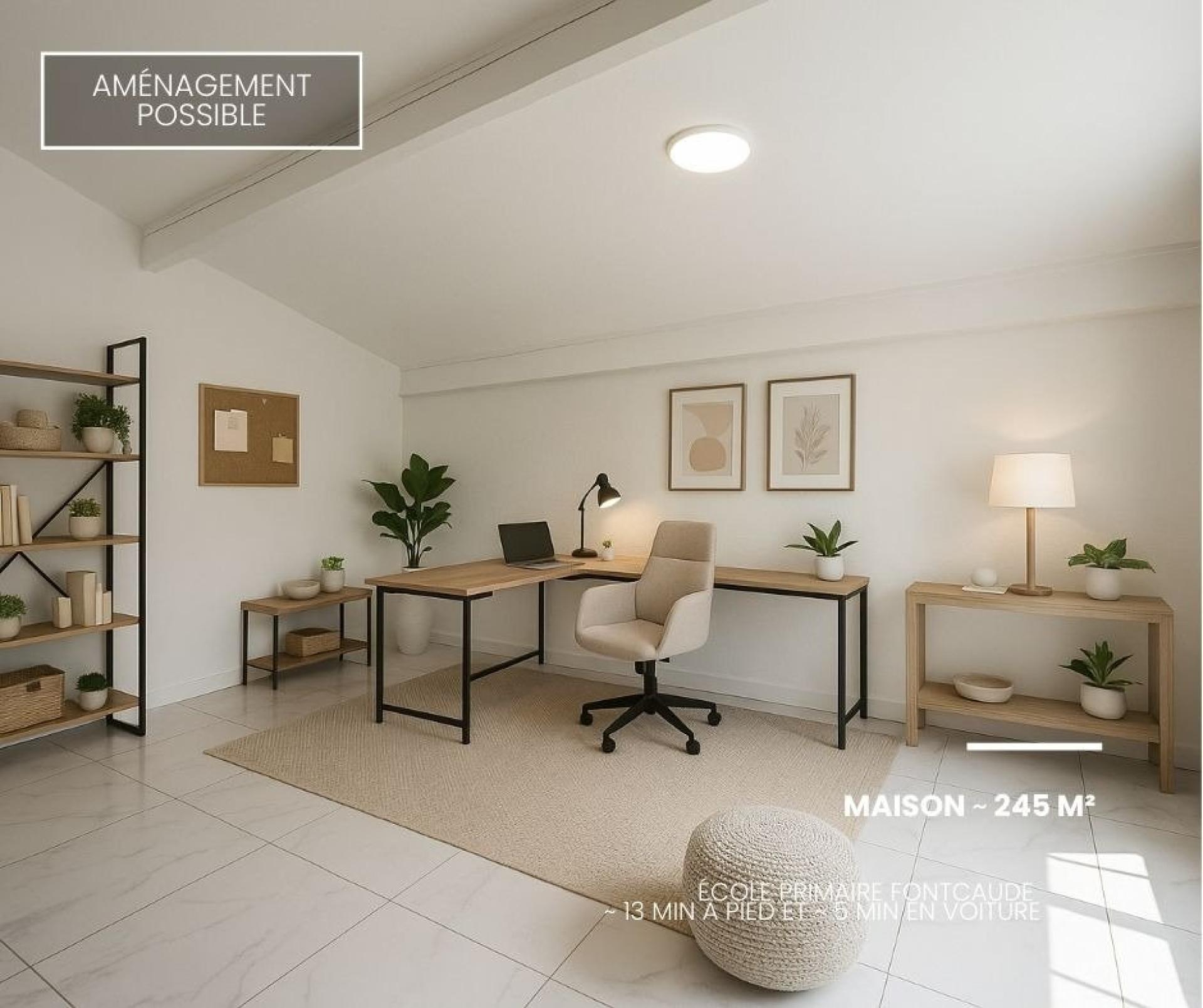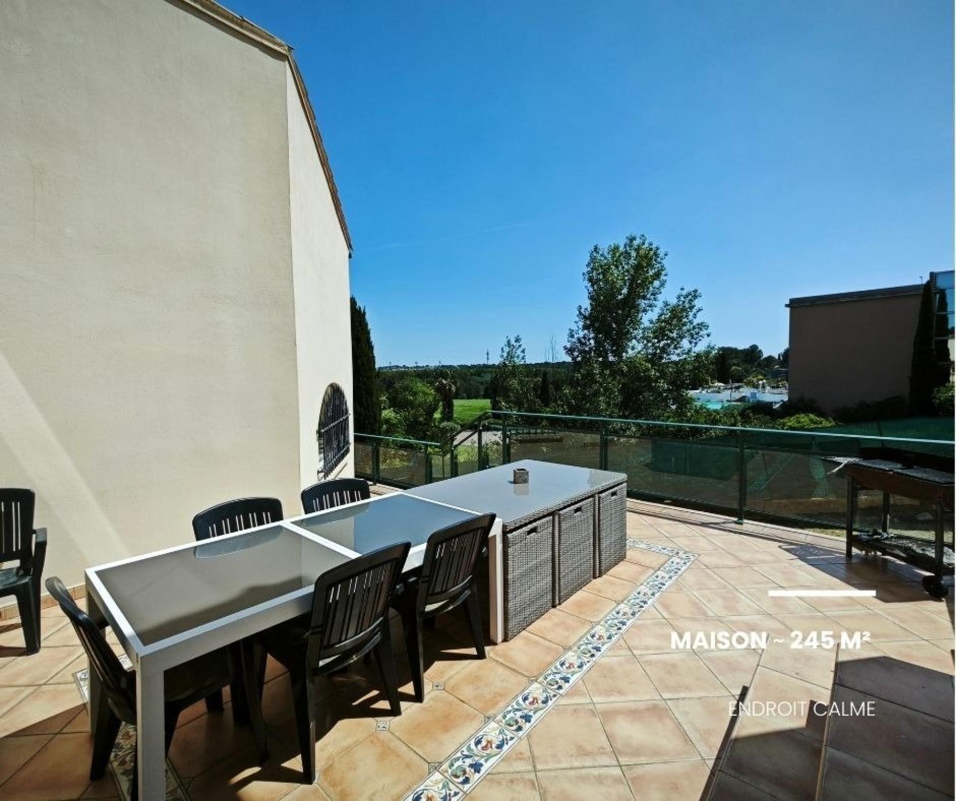 34 990 JUVIGNAC – QUARTIER DU GOLF – VILLA DE PRESTIGE – PISCINE – GRAND TERRAIN ⚠️ Certaines photos sont non contractuelles (home staging virtuel). Située à Juvignac (34990), dans le secteur résidentiel très prisé du Golf, cette superbe villa de 245 m² habitables offre des prestations haut de gamme et un cadre de vie exceptionnel, à seulement quelques minutes de Montpellier. La propriété séduit par ses volumes généreux et ses finitions soignées, sur un terrain de 1 250 m². Elle comprend une pièce de vie lumineuse, une cuisine équipée, un double salon, quatre chambres, deux salles de bains et trois toilettes (dont deux séparés). Un sous-sol aménageable offre un beau potentiel d’agrandissement ou d’aménagement selon vos besoins. À l’extérieur, profitez d’une piscine, d’une terrasse et de plusieurs espaces de stationnement (jusqu’à six véhicules). Le tout dans une résidence sécurisée, équipée d’un interphone/visiophone et d’un système de climatisation. Une villa idéale pour les amoureux de calme et de confort. À visiter sans tarder.