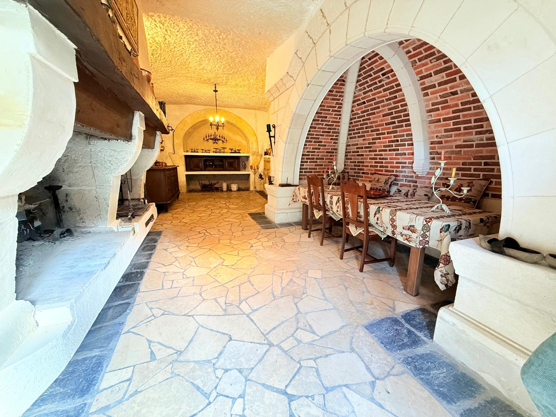 A l'abri de tout regard, au sein d'un environnement naturel préservé, cette propriété rare incarne l'élégance et l'authenticité d'un patrimoine historique remarquable. Ce manoir du XVI siècle offre des volumes chaleureux et une atmosphère unique, il se compose au rdc d'un salon avec cheminée ouverte, une salle à manger, une cuisine aménagée, une salle de bain, un wc indépendants. A l'étage un palier desservant 4 chambres, une salle d'eau. Une Chaufferie. Une maison de gardien indépendante avec pièce de vie poêle à bois et coin cuisine. A l'étage 2 chambres et salle d'eau avec wc. Maison de Garde, une grande pièce de Chasse avec cheminée ouverte et grenier aménageable. Une Ancienne écurie, une grange. Un ensemble troglodyte exceptionnel, plusieurs caves dont trois en enfilades (environ 270m2), Une cave aménagée avec deux cheminée à rotir, idéale pour recevoir, une cave ornée de sculptures représentant les signes du zodiaque, et d'autres caves à découvrir, offrant un potentiel unique. Un bassin alimenté par une source naturelle en cascade. L'ensemble s'étend sur plus de 5 hectares accessible par une majestueuse porte cochère.Lieu idéale pour résidence principale, secondaire, ou projet touristique (gîtes, réception événementiel..). Un lieu unique pour une vie hors du temps.