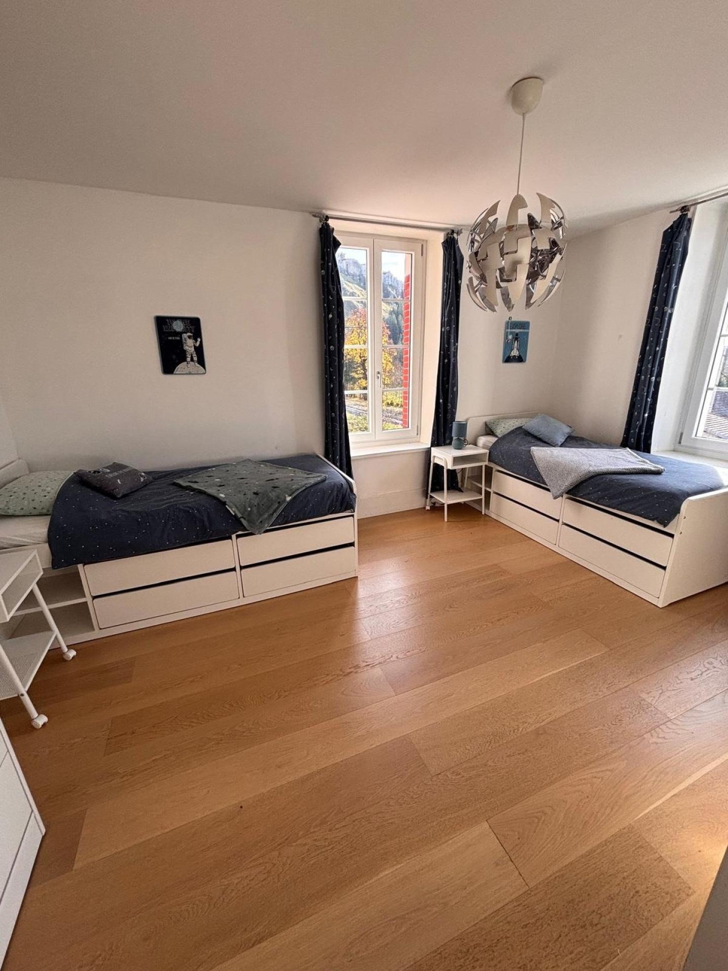 Rénovée avec soin, belles pièces lumineuse, vue Château de Joux.