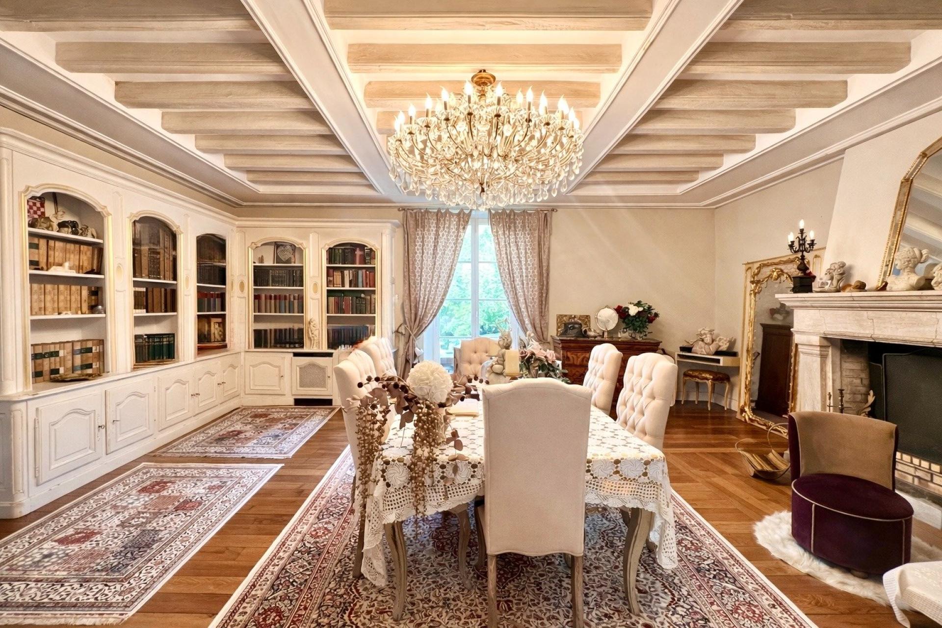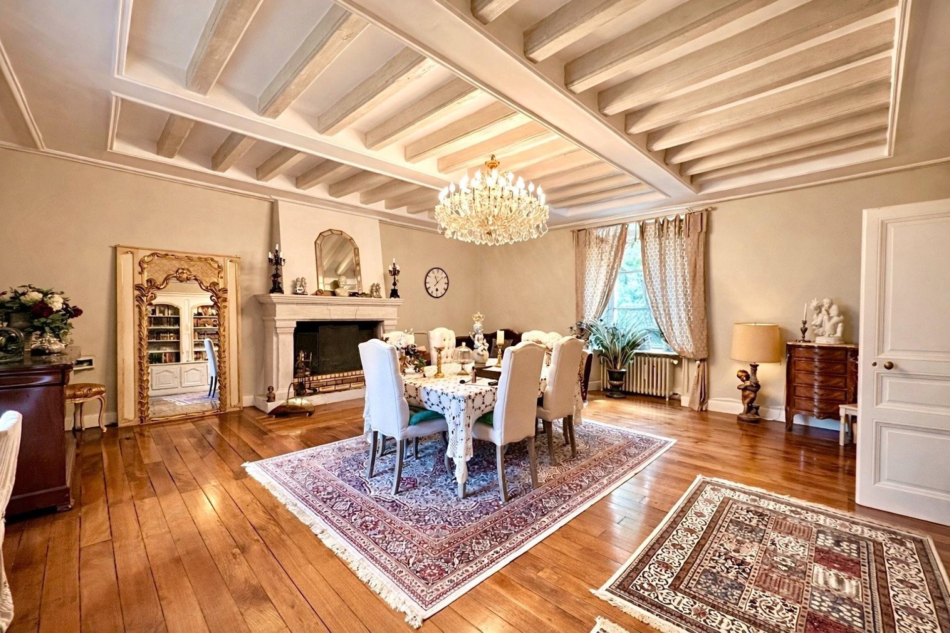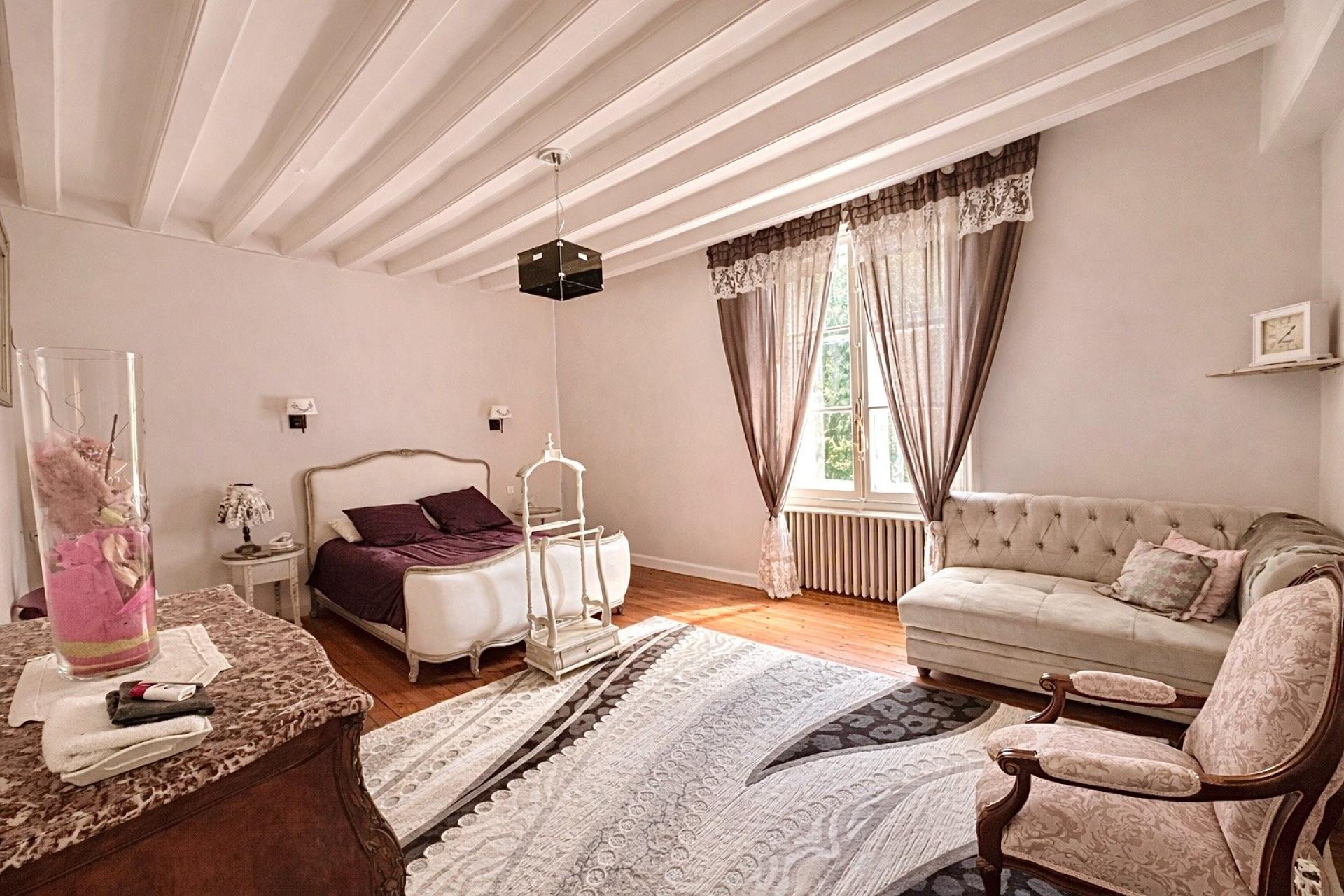 Laura de Langenhagen vous présente à la vente ce superbe manoir familial avec ses dépendances et son vaste parc. Idéalement implanté au cœur d'un village dynamique du Perche sarthois pays d'art et d'histoire, à proximité à pied de divers commerces et services, à 10 minutes de La Ferté-Bernard, à 8 minutes de Connerré, à 35 minutes du Mans chef-lieu de la Sarthe, et 1 heure et 45 minutes de la capitale parisienne. L'édifice, à l'origine, remonte à l'époque napoléonienne, avant 1831 ; les bâtis seront transformés et rénovés au fil du temps à partir de 1862 jusqu'au XXe siècle. La bâtisse principale adoptera le style des manoirs du XVe siècle avec sa tour construite ex nihilo qui lui donnera l'allure et le charme d'un petit château, il sera nommé de ce fait "La Princetière". La porte d'entrée est précédée par un perron et une ravissante marquise semi-circulaire qui apporte cachet et authenticité à la façade. À l'intérieur, au rez-de-chaussée, vous entrerez par un hall desservant une salle de réception avec, sa cheminée, sa bibliothèque, son parquet massif, un WC, un salon avec cheminée, une cuisine à dimension familiale aménagée et équipée, une buanderie, ainsi qu'un dégagement avec une salle d'eau et WC menant à l'étage de cette aile comportant une vaste chambre sous combles. À l'étage principal, par la tour d'escalier à pans coupés, éclairée d'ouvertures, vous trouverez un palier avec dégagement desservant un WC avec lave-mains, quatre chambres, dont l'une avec salle de bains, l'une avec cheminée et WC, un grand dressing ainsi qu'une grande salle de bains avec douche et double vasque. Le deuxième étage abrite une chambre et une salle de bains à embellir ainsi qu'un grand grenier aménageable. Au sous-sol accessible par l'extérieur, vous aurez le plaisir de découvrir une véritable cave à vin. Les huisseries sont en double vitrage, le chauffage est au fioul, les toitures sont en bon état général, de nombreux travaux ont été réalisés. À l'extérieur, vous disposerez d'un double garage attenant, d'une grande dépendance lumineuse grâce à ses ouvertures avec sa piscine chauffée de 35 m², d’un WC, d'une douche, d'un vestiaire, d'un local technique et d'un grenier, d'une petite dépendance et d'un chenil. Le manoir s'étend sur un parc d'un hectare et demi clos, paysagé et sans vis-à-vis offrant un cadre paisible et verdoyant, un puits fonctionnel et des espaces dédiés pour le stationnement. Si vous rêver d'une propriété familiale chaleureuse, authentique avec du cachet ou si vous avez un projet de maison d'hôtes haut de gamme, proche des commerces de proximité, ce bien d'exception rare à la vente saura vous séduire. Éléments techniques et informatifs du bien : – Chauffage central au fioul, complété par des équipements électriques – Huisseries en simple et double vitrage – Taxe foncière : 4 400,00 €