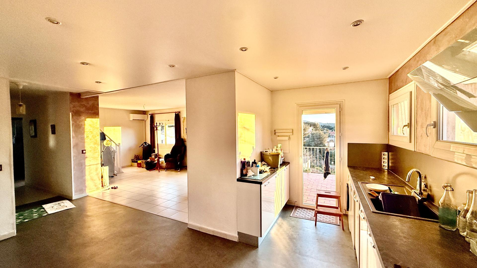 Située dans le quartier recherché de la Colle d’Artaud à La Seyne-sur-Mer (83500) et proche de sixfours, cette villa individuelle offre une vue mer et un cadre campagne idyllique. Proche des écoles, lycées et commerces, elle bénéficie également d'un accès facile aux transports en commun tels que les bus. L'exposition sud de la propriété permet de profiter du soleil toute la journée tout en étant à proximité de la mer et de la ville. À l'extérieur, cette maison de 127 m2 habitables (105 m² loi Carrez), elle s'étend sur un terrain de 944 m², comprenant une grande piscine en aile d'oiseau, une terrasse ensoleillée, un balcon, un jardin et un garage de 35 m2 pour 3 véhicules ou aménageable en studio. L'aménagement extérieur est complété par un barbecue, offrant un espace de détente et de convivialité idéal pour les soirées d'été en toute intimité. L'intérieur de la propriété se compose de 5 pièces réparties sur deux niveaux. Au rez-de-chaussée, un grand séjour avec salle à manger, une cuisine ouverte équipée, 2 chambres et 1 bureau pouvant servir de chambre également. Une salle d'eau et un WC séparé offrent un espace de vie convivial. À l'étage, une chambre supplémentaire sous pente de 29m2, une salle de bain avec WC offrent un espace supplémentaire pour la vie quotidienne. Cette villa climatisée avec une Cheminet ouverte est accessible aux normes PMR et équipée de la fibre, c’est un véritable havre de paix alliant confort et fonctionnalité.