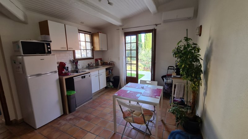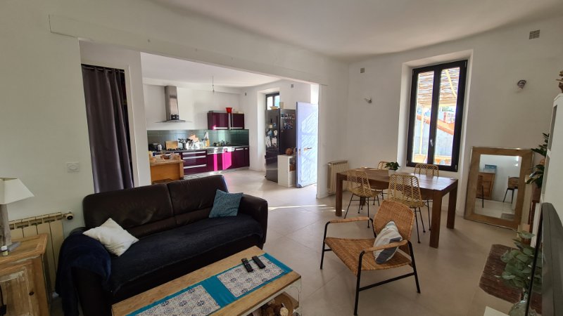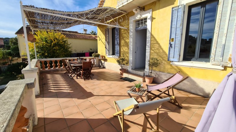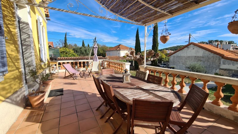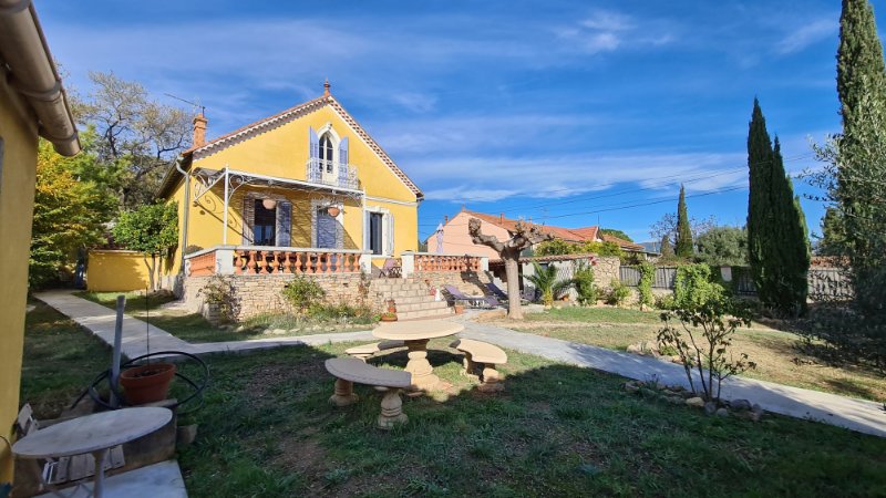En retrait du centre, dans un secteur très calme et pourtant proche de tout, villa de 1848 mise au goût du jour.<br/>Sur un terrain clôturé, vous disposez de nombreux stationnements, d'espaces arborés, de plusieurs dépendances.<br/>La maison, alliant le charme et le confort, vous accueille sur une superbe terrasse ensoleillé, avant d'arriver dans une vaste pièce à vivre de plus de 40 m² avec cuisine ouverte et équipée.<br/>Viennent ensuite un wc, une salle de bain avec douche italienne, une chambre.<br/>A l'étage, 2 chambres dont une très grande avec vue panoramique, et une large mezzanine.<br/>Un T2 totalement indépendant peut être utilisé ou loué en complément.