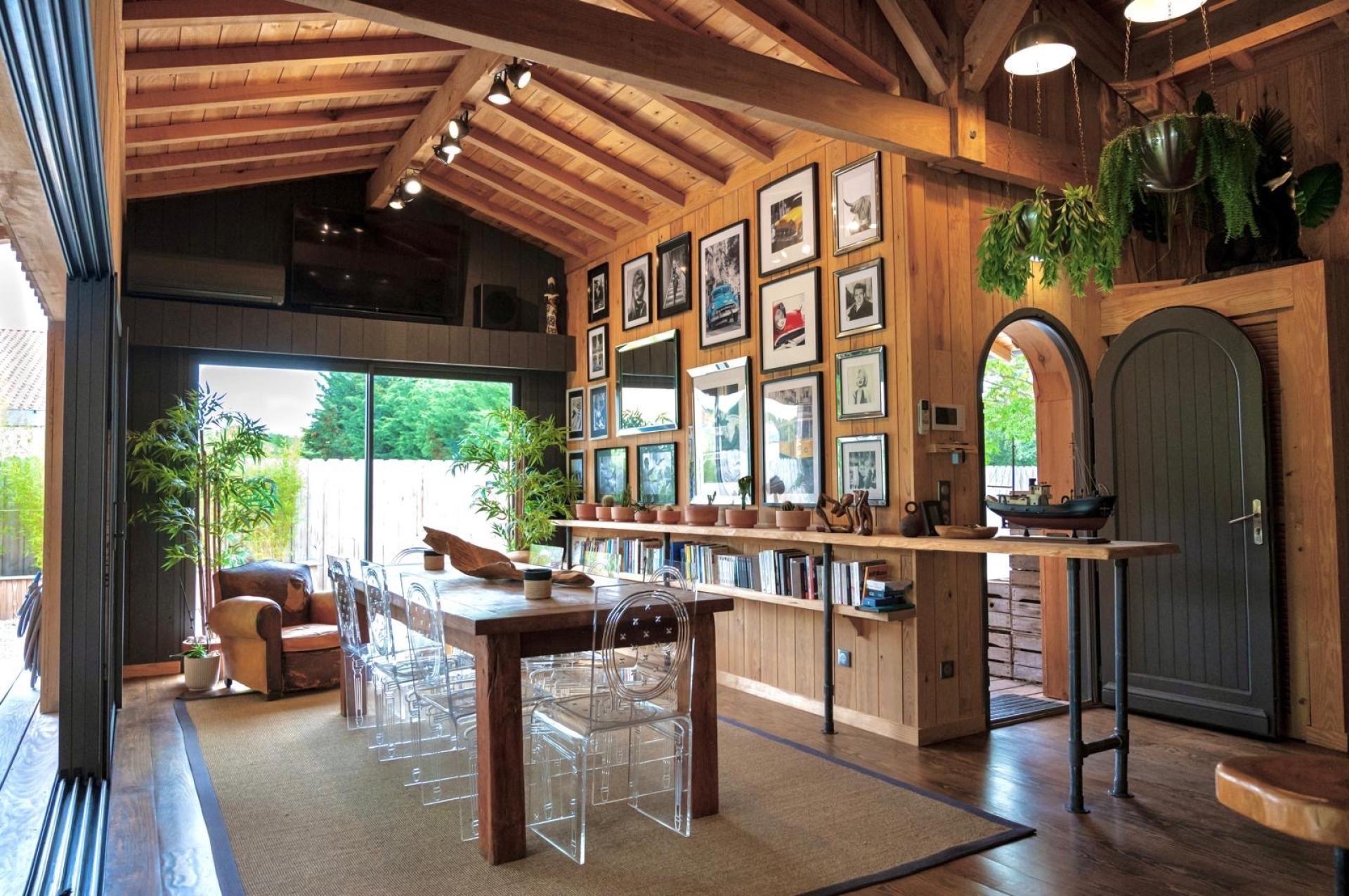 Réalisée en 2021 en pin des Landes par les Compagnons du Devoir, cette maison en bois offre un cadre unique mêlant élégance et savoir-faire artisanal. Dès l’entrée, la pièce de vie dévoile des volumes spectaculaires : charpente apparente, hauteurs sous plafond, poêle central et plus de 100 m² réunissant salon, salle à manger et cuisine entièrement équipée. De larges ouvertures prolongent naturellement l’espace vers la terrasse et la piscine. Les trois chambres, dont une suite avec dressing, disposent chacune de leur salle d’eau privative. La maison est entièrement climatisée et l’ensemble des prestations se distingue par un niveau de qualité rare. À l’extérieur, la terrasse en ipé de 200 m² encadre une piscine chauffée en pierre naturelle, prolongée par un jardin arboré et son terrain de pétanque. Une dépendance accueille garage et salle de sport — facilement transformable en chambre supplémentaire — ainsi qu’une cuisine extérieure couverte face à la piscine. Un bien d’exception, chaleureux et résolument haut de gamme, à deux pas du centre de La Teste et de ses forêts.