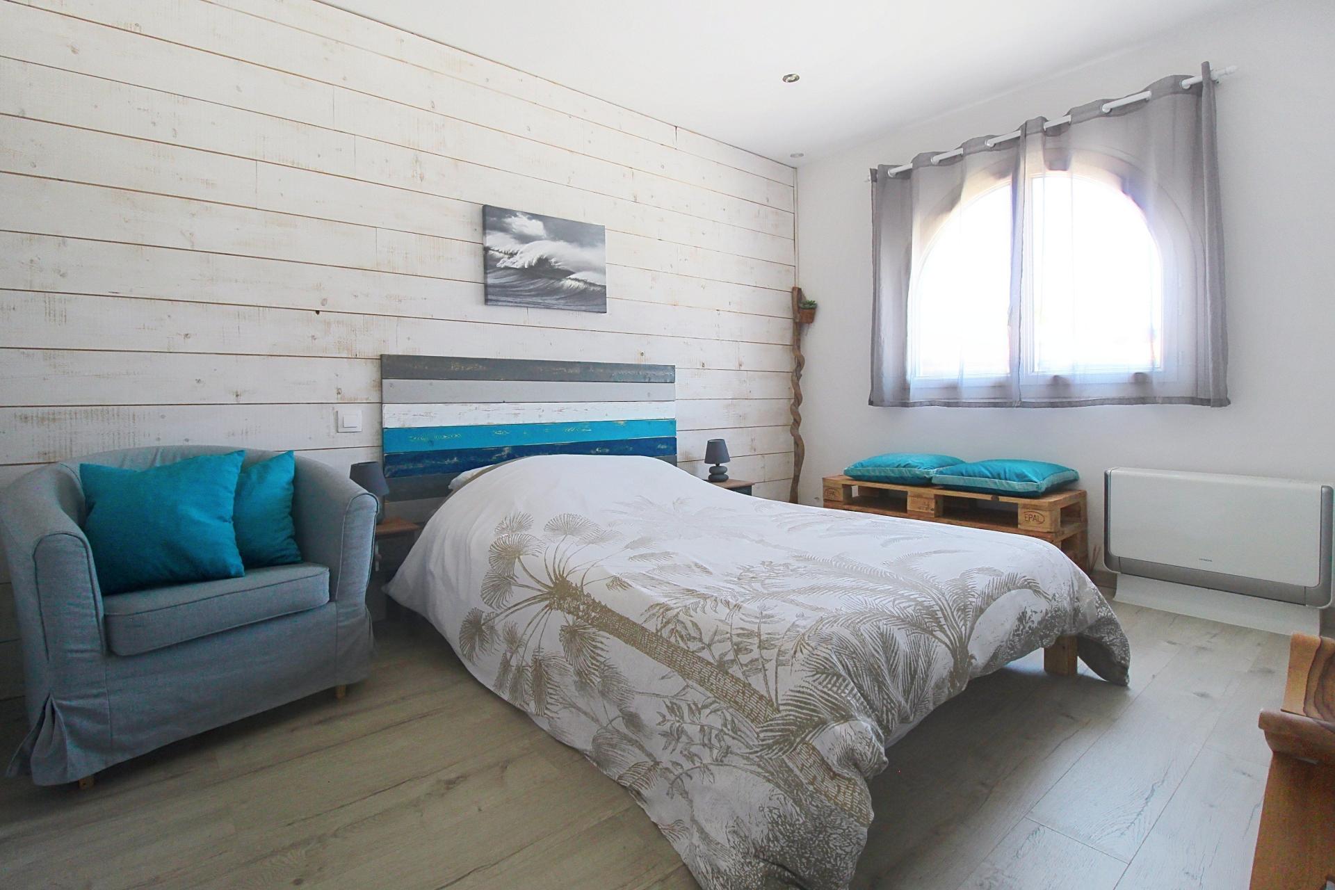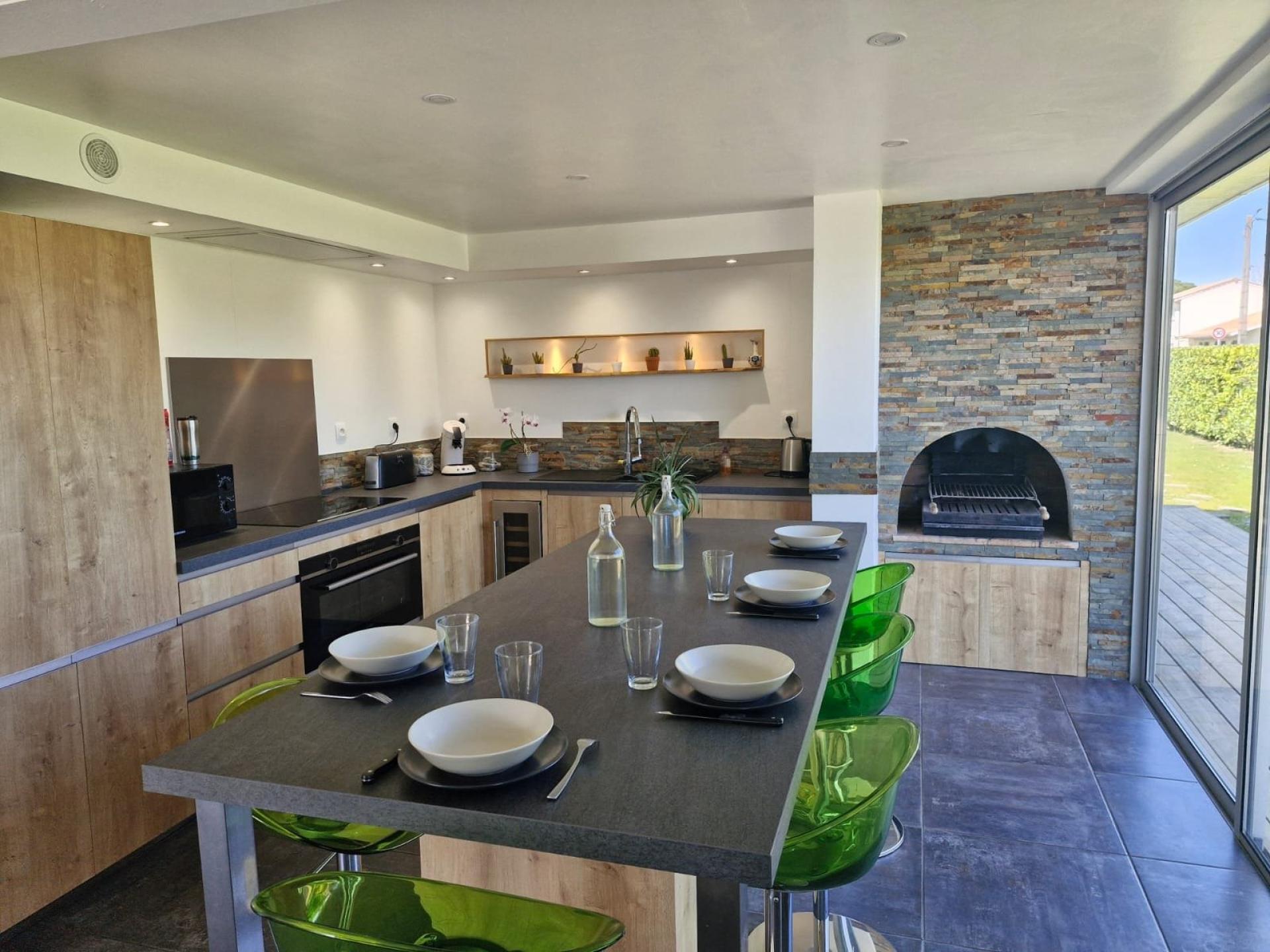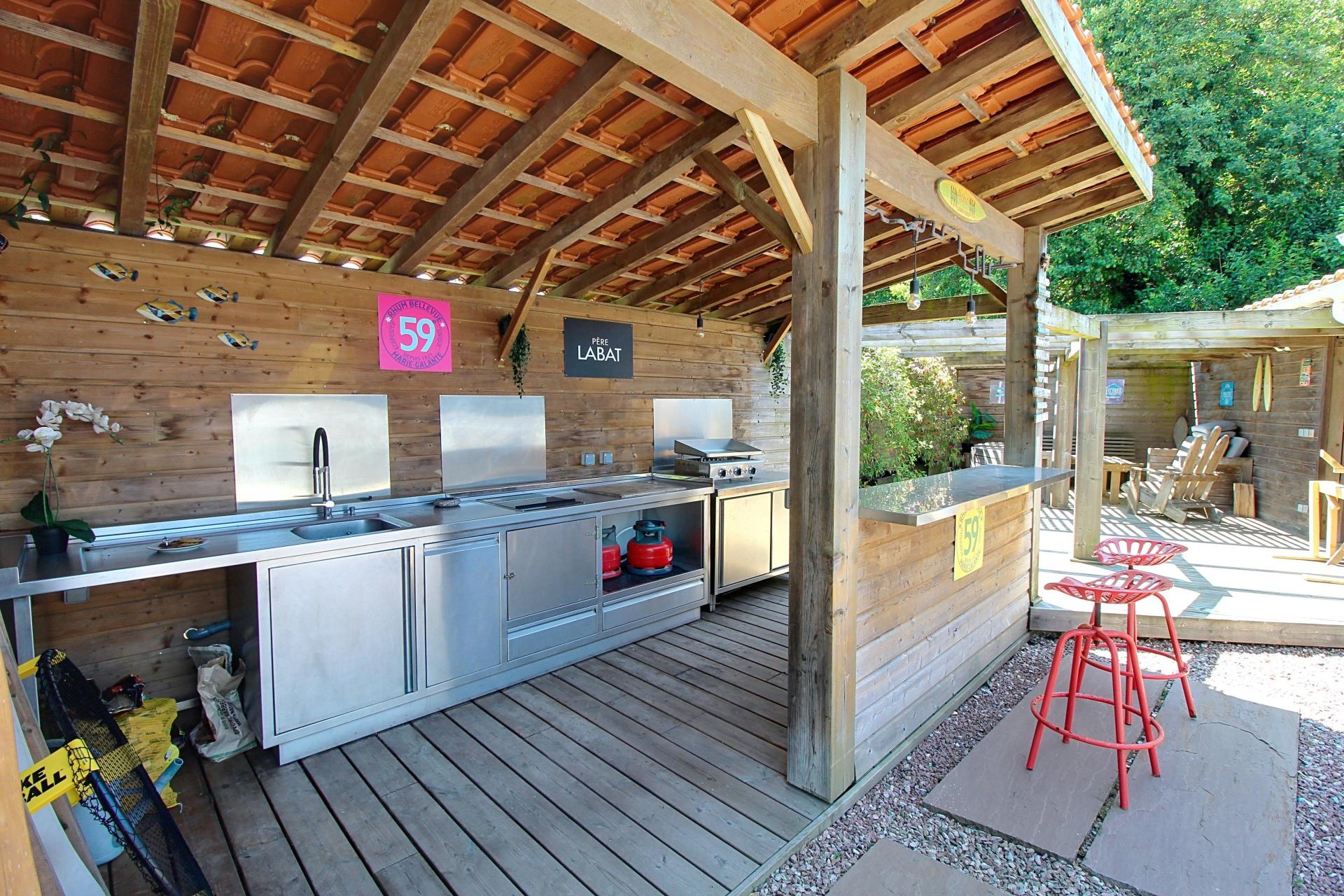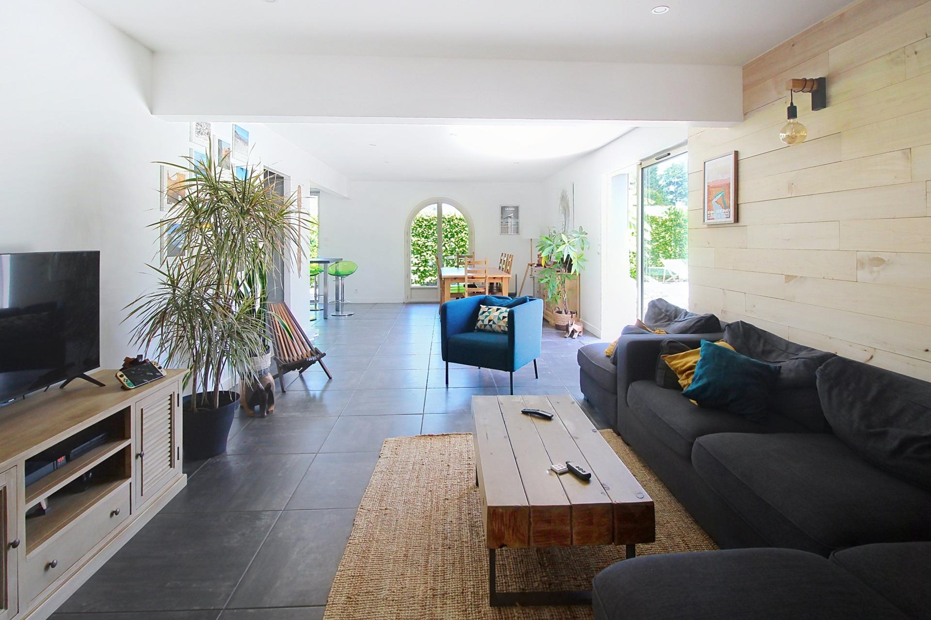 Lacanau Ville, proche des commodités et des écoles. Maison d'une surface d'environ 185 m² sur un terrain clos et paysagé de 1297 m² avec piscine jacuzzi chauffée, son carbet avec sa cuisine d'été. Vaste séjour salle à manger avec cuisine américaine moderne et très bien équipée, une grande véranda servant de salle de jeux avec bibliothéque et coin tv, un grand bureau. 4 chambres dont une suite parentale avec salle d'eau, dressing et un wc séparé ainsi qu'une pièce sous combles pouvant servir de 5 ème chambre, une salle d'eau avec buanderie, un wc séparé. Entrée avec portail électrique donnant sur un grand garage et un appentis. Un jardin equipé d'arrosage automatique avec un puits. Chauffe eau solaire, chauffage par pompe à chaleur Hitachi réversible climatisation et double vitrage. Maison avec beaucoup de potentiel.