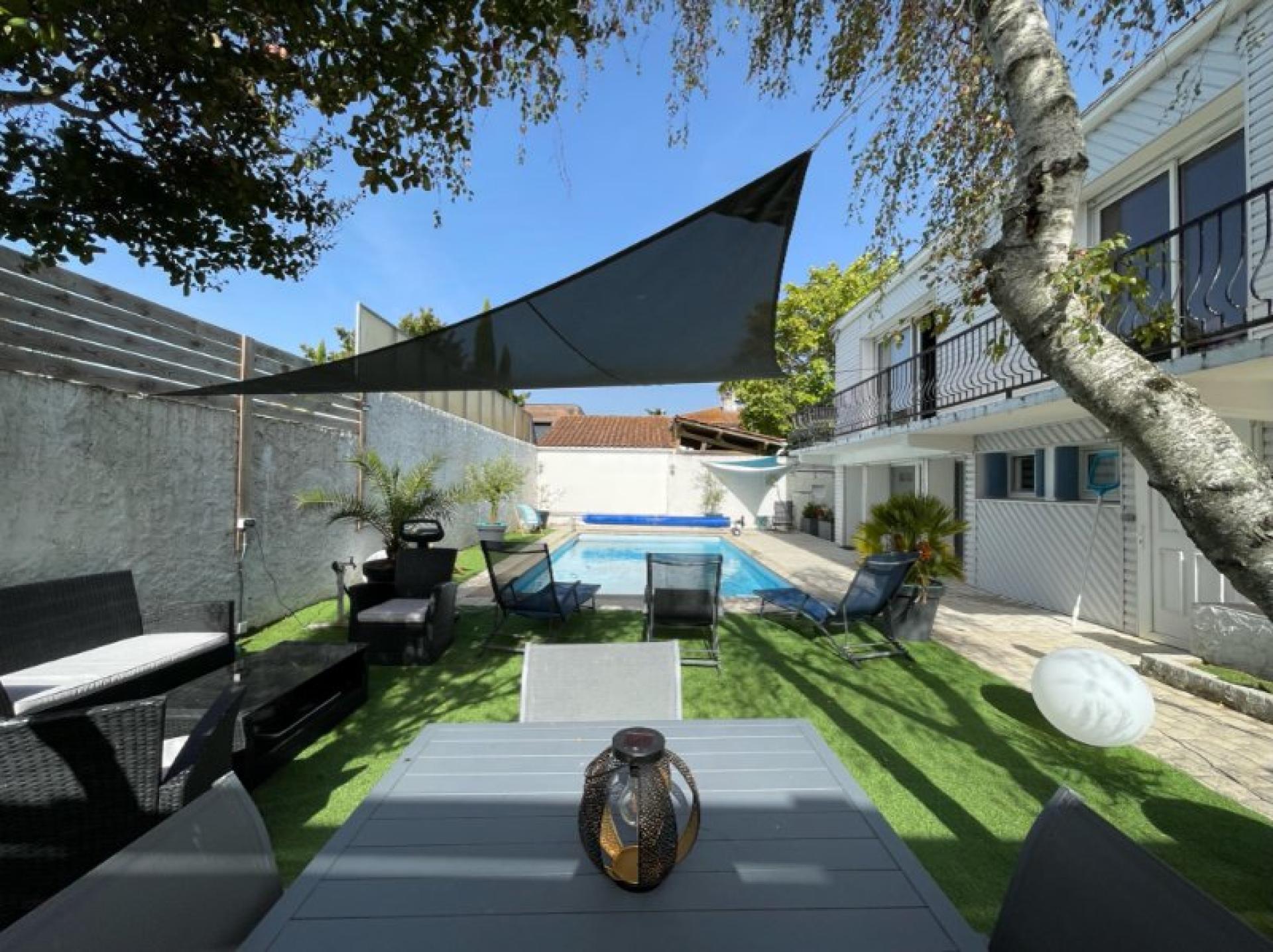 Située dans le centre-bourg de Lagord avec toutes les commodités accessibles à pied, cette maison bénéficie de la tranquillité tout en étant à quelques minutes seulement du cœur de La Rochelle et du pont de l'île de Ré. À l'étage principal, vous découvrirez une entrée accueillante qui mène à un spacieux séjour baigné de lumière naturelle et traversante, agrémenté d'une cuisine ouverte avec verrière. Un belle chambre lumineuse, une salle d'eau avec douche à l'italienne et double vasque en travertin, un WC indépendant avec espace de rangement et un bureau complètent ce niveau. Ce bureau offre un espace supplémentaire pour la détente ou le télétravail et donne accès à l'étage supérieur via une grande mezzanine. Depuis la mezzanine, vous découvrirez deux chambres supplémentaires, complétées d'une salle d'eau, d'un dressing et un wc. Appartement indépendant : Le rez-de-chaussée a été aménagé pour offrir un appartement de type T3 de près de 70m² avec une entrée séparée. Cet espace polyvalent peut servir d'appartement autonome pour les membres de la famille, être utilisé comme cabinet professionnel ou bien réaménagé en espace supplémentaire de type salle de cinéma, salle de jeux, cuisine d'été, communiquant avec l'étage principal de la maison. Jardin et espace extérieur : Vous pouvez accéder à l'extérieur depuis un grand balcon longeant l'étage principal de la maison. Profitez de moments de détente dans le jardin arboré et parfaitement aménagé, agrémenté d'une piscine chauffée. L'intimité est garantie grâce à l'absence de vis-à-vis. Stationnement facilité: Plusieurs espaces de stationnement sont disponibles pour vous et vos invités. Un sous-sol de 50m² offre des possibilités de stockage et de rangement supplémentaires. Cette maison vous offrira un cadre de vie confortable, combinant espace, lumière et fonctionnalité. Contactez moi pour en savoir plus ! Visite virtuelle disponible sur demande !
