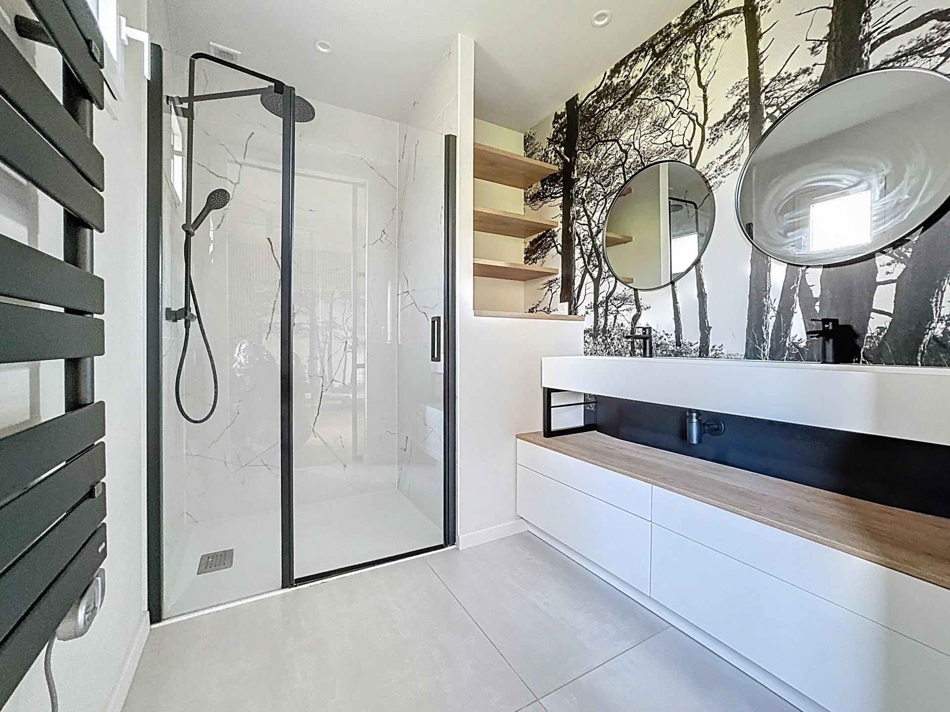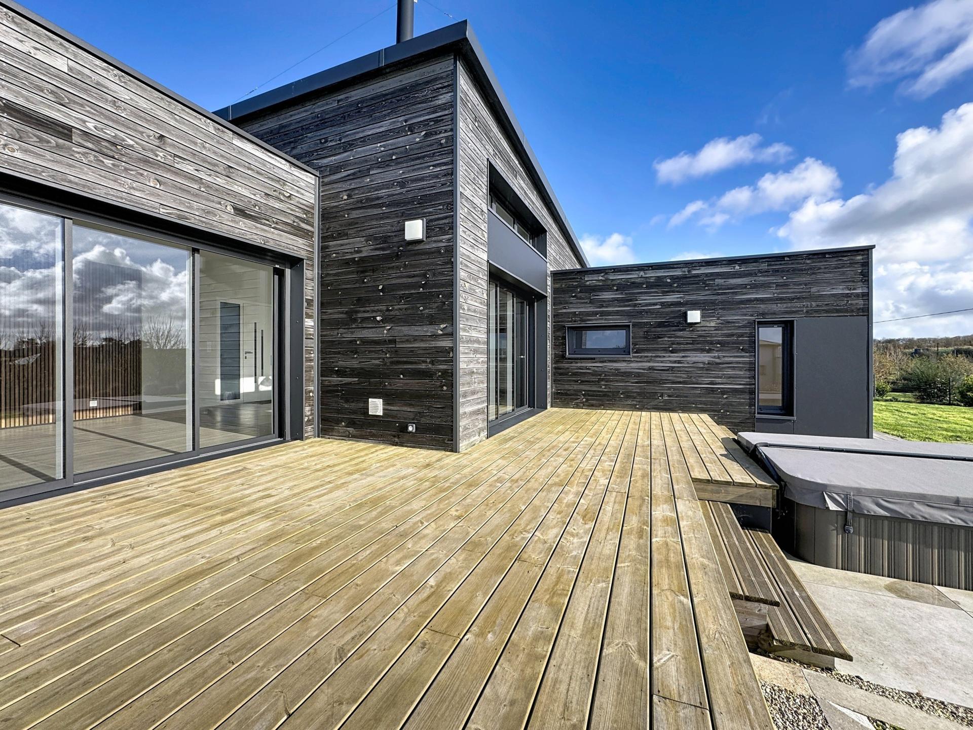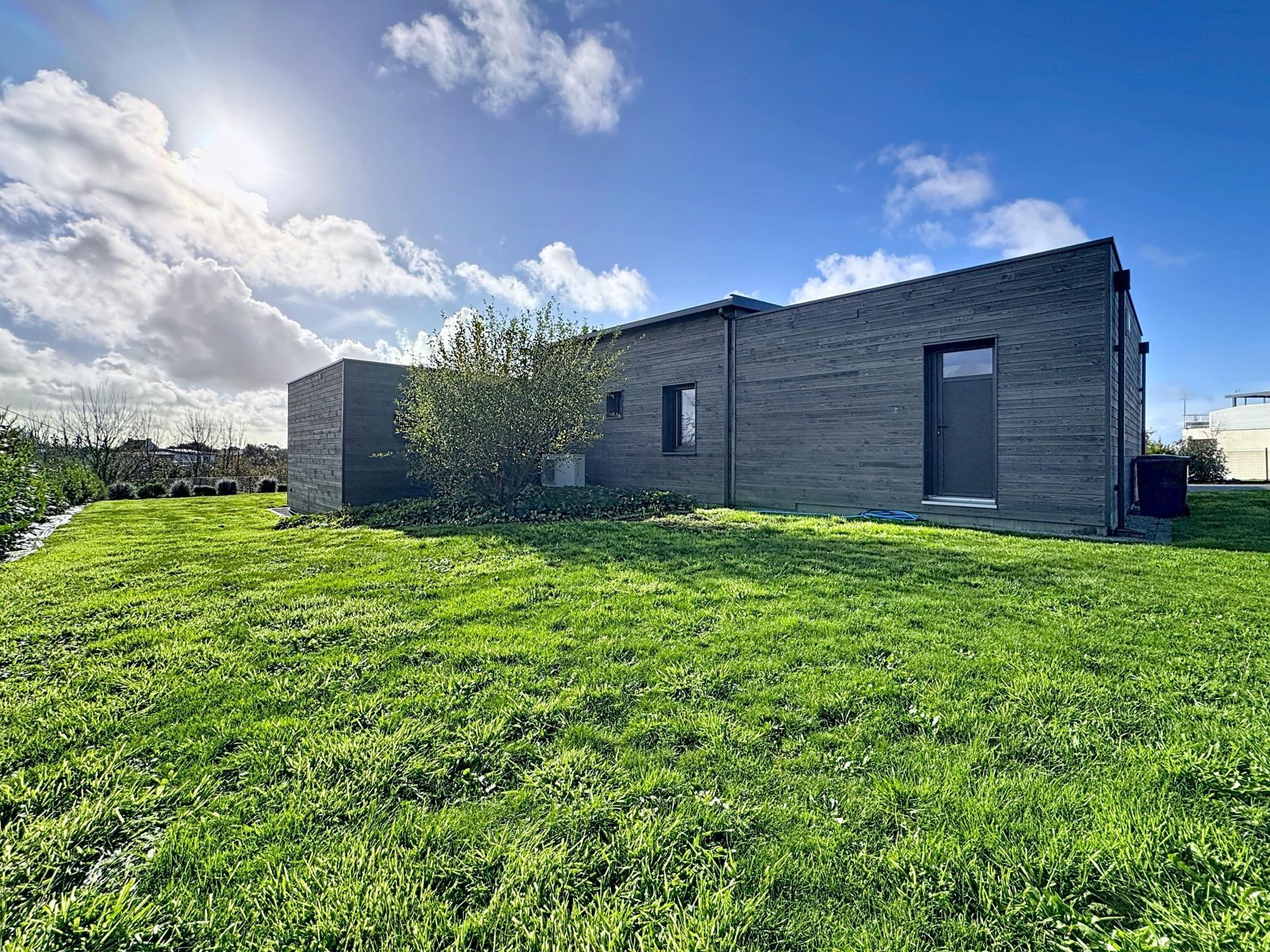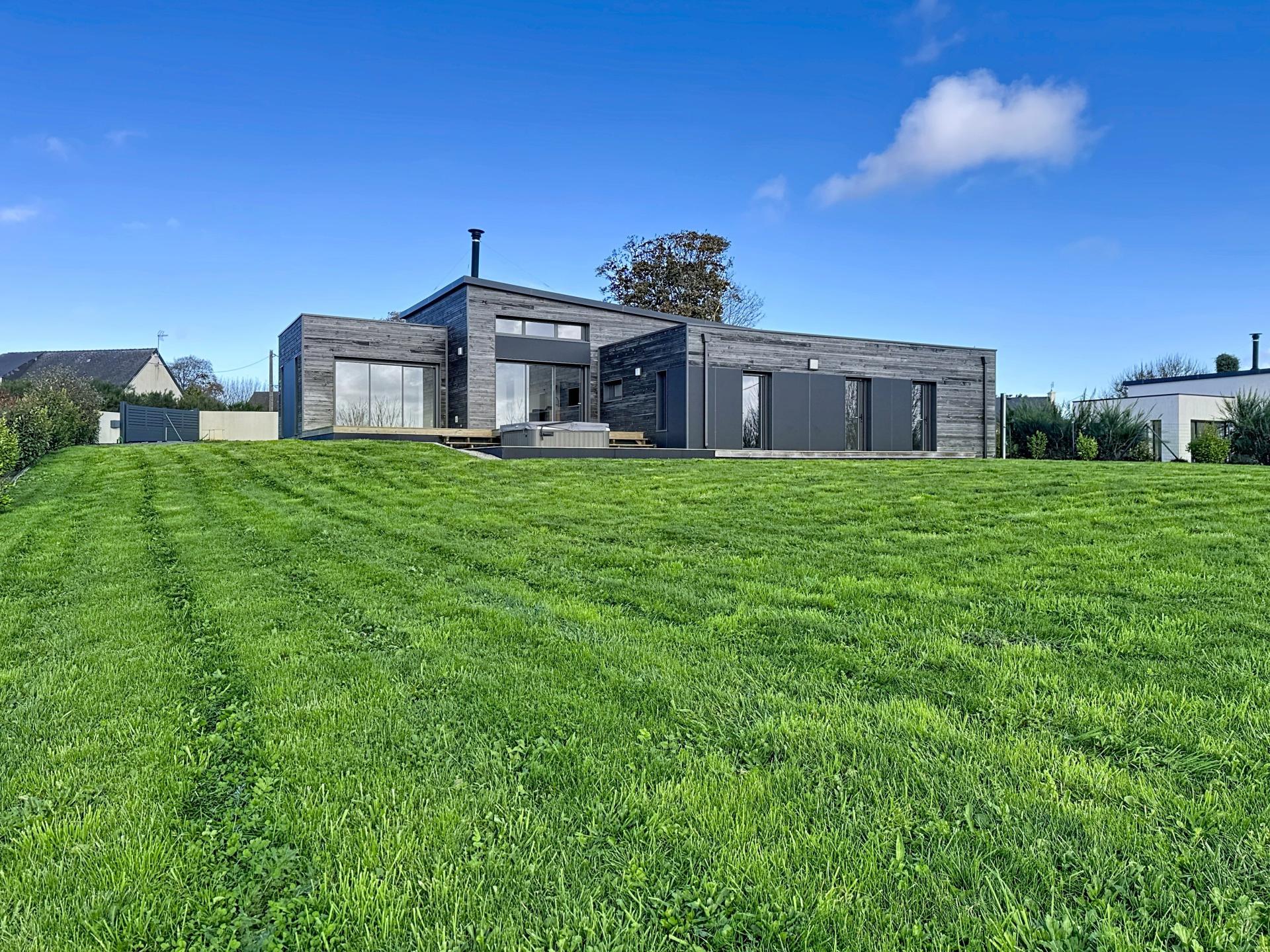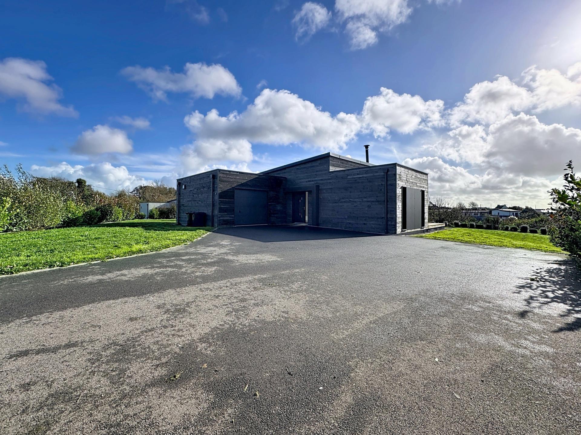 Située dans le quartier prisé et paisible de Prat-ar coum, au calme d’une impasse, cette belle maison contemporaine en ossature bois, construite en 2022, séduit par sa luminosité et son esprit chaleureux. Implantée sur un vaste terrain d'environ 2 100 m², elle offre un cadre de vie agréable, à seulement 25 minutes de l’aéroport de Brest-Guipavas et à proximité du littoral nord-finistérien. Dès l’entrée, la pièce de vie de 47 m² s’impose comme le cœur de la maison : un espace convivial, largement ouvert sur la terrasse et le jardin grâce à ses grandes baies vitrées 3 vantaux. Son exposition plein sud inonde l’intérieur de lumière tout au long de la journée. La cuisine ouverte, à la fois moderne et déplafonnée, offre une superbe hauteur sous plafond qui accentue la sensation d’espace et de volume. Elle communique directement avec un cellier fonctionnel et un garage attenant. Un poêle à bois complète cet ensemble, apportant une ambiance douce et cocooning lors des soirées d’hiver. Côté nuit, la maison dispose de quatre chambres spacieuses, de 11 à 14 m², idéales pour accueillir famille et amis. Deux salles d’eau et deux WC assurent le confort de tous les occupants, et l’agencement général permet une circulation fluide et agréable. À l’extérieur, tout est pensé pour la détente et la convivialité. La terrasse plein sud invite à profiter du moindre rayon de soleil, tandis que le spa promet de vrais moments de relaxation. Une douche extérieure permet de se rafraîchir après un bain et ensuite de profiter d'une partie de pétanque sur le terrain aménagé. Le jardin, soigneusement entretenu, offre un espace verdoyant et intimiste avec une petite vue mer, juste assez pour rappeler la proximité de l’océan. L’accès permet en outre de stationner plusieurs véhicules en toute facilité. Construite en ossature bois, cette maison allie esthétique naturelle et performance énergétique. Elle est équipée d’une pompe à chaleur récente et affiche un DPE classé A, gage d’économies et de confort thermique toute l’année. Les matériaux et finitions sont de qualité, les volumes parfaitement équilibrés, et chaque détail a été pensé pour conjuguer modernité, bien-être et praticité. Cette maison de plain-pied séduit par sa luminosité exceptionnelle, son grand espace de vie, sa cuisine déplafonnée et son poêle à bois qui crée une atmosphère unique. Son terrain de plus de 2 100 m², sa terrasse plein sud et ses aménagements extérieurs en font un lieu de vie idéal pour profiter de la nature et des beaux jours en toute sérénité. Nichée à Prat-ar coum, dans un environnement calme et verdoyant, elle offre une qualité de vie rare, à la fois proche des commodités et suffisamment retirée pour préserver le confort du quotidien. Une maison lumineuse, économe et chaleureuse, prête à accueillir ses nouveaux propriétaires.