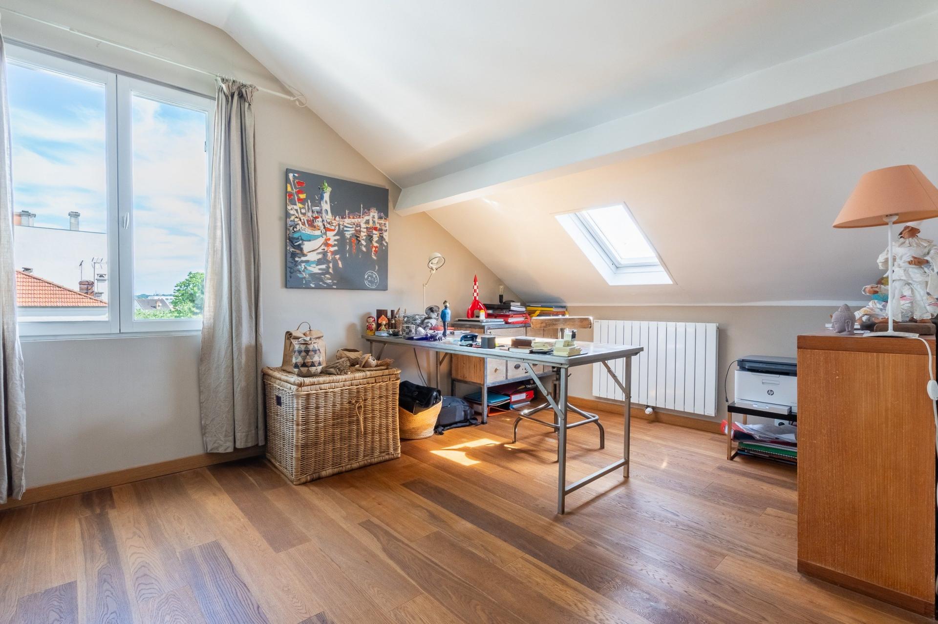 Corinne et Sandra vous proposent à deux pas du centre-ville, une maison non mitoyenne en parfait état de 6 pièces, édifiée sur un terrain de 558 m². Ce bien se déploie sur 3 niveaux de 50 m² auxquels s’ajoutent un rez-de-jardin total et un garage double indépendant. Au rez-de-chaussée : un séjour/salle à manger avec cheminée, une cuisine et WC. Au 1er niveau : 4 chambres dont une avec salle d’eau, une salle de bains et WC indépendants. Au 2ème niveau : 1 suite parentale avec salle d’eau et WC indépendants. Au rez-de-jardin : 1 salle de jeu/home cinéma de 22 m², un bureau/salle de sport, 1 buanderie avec point d’eau, 1 pièce de stockage et des WC. Pour les extérieurs : à l’arrière de la maison, un très beau jardin piscinable avec une jolie terrasse en bois et à l’avant une grande cour pavée avec un garage double. L’emplacement très au calme, les espaces extérieurs, la qualité et le charme de la construction, les différents espaces intérieurs en parfait état, font de ce bien une maison idéale pour votre famille.