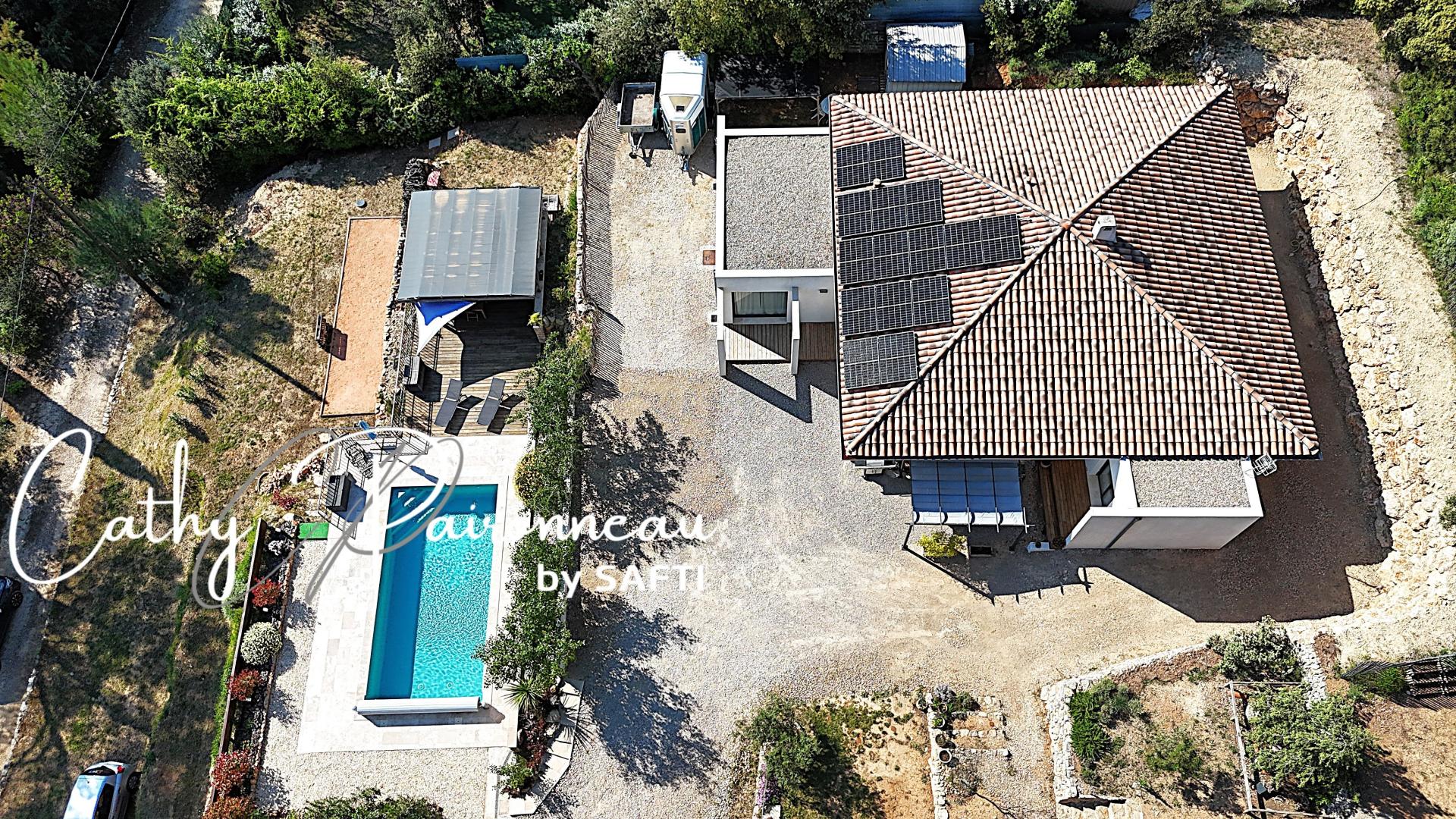 Située dans un environnement calme et verdoyant, belle maison de plain-pied construite en 2002 offrant une surface totale de 163 m² et une vue dégagée sur la campagne. Elle se compose d’un vaste séjour lumineux avec cuisine ouverte équipée, de 4 chambres, d’une salle de bains et d’une salle d’eau. À l’extérieur, vous profiterez d’une piscine avec jacuzzi intégré, d’un pool house, d’un terrain de boules, ainsi que d’un studio indépendant idéal pour recevoir ou pour un revenu locatif. Un garage complète l’ensemble. Le tout sur un terrain clos et paysagé de 1 989 m², sans vis-à-vis.