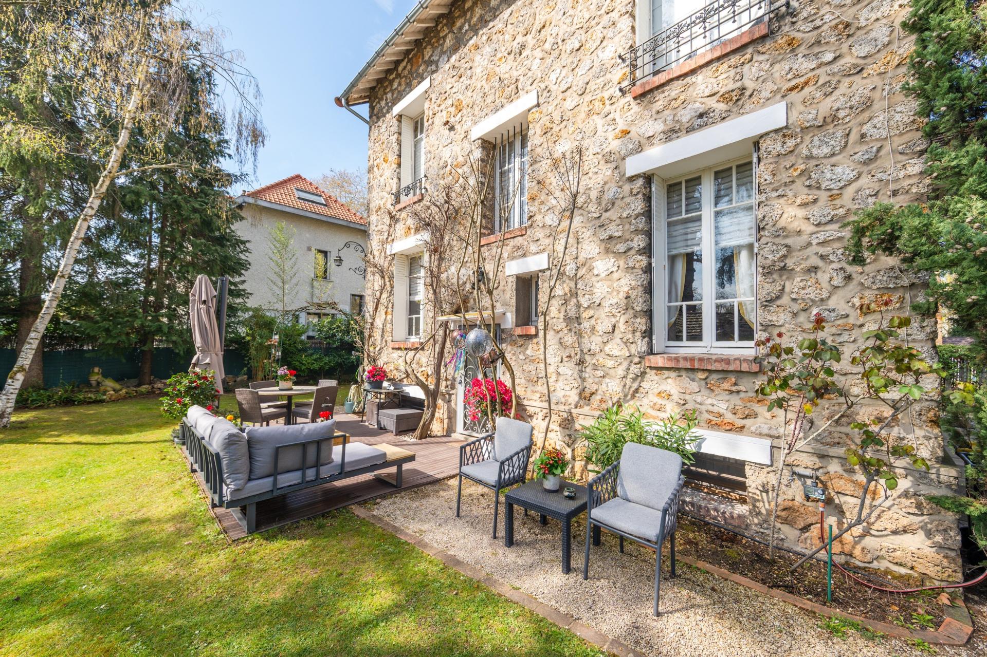En plein cœur du Vésinet, à deux pas du Parc des Ibis et à seulement 15 minutes à pied du RER Vésinet-Centre, cette demeure de charme du début du XXe siècle bénéficie d’un emplacement privilégié, à proximité immédiate des commerces et des établissements scolaires les plus recherchés. Édifiée sur un terrain clos, arboré et joliment fleuri de 530 m², cette maison non mitoyenne dispose d’une agréable terrasse exposée sud-est, d’un espace de stationnement couvert ainsi que d’un box de garage de 15m2 offrant la possibilité d’être transformé en dépendance ou en studio. Bénéficiant de 220 m² au sol (150 m² habitables), la maison propose de beaux volumes à exploiter selon vos envies. Le rez-de-chaussée surélevé accueille une vaste entrée avec toilettes invités, une cuisine spacieuse entièrement équipée avec comptoir en marbre, ainsi qu’un double séjour chaleureux avec sa cheminée fonctionnelle. Le sol d’origine en granit de Versailles confère à cet espace une authenticité rare. Un bel escalier dessert les étages : -1er étage : trois chambres spacieuses avec rangements intégrés, une salle de bain et des toilettes séparées. -2e étage : deux chambres supplémentaires, chacune disposant de sa salle de bain ou salle d’eau attenante. Le sous-sol aménagé propose un cellier/cave à vin, une buanderie, une salle de jeux ainsi que des espaces de rangement. Parquets anciens, matériaux nobles, élégantes hauteurs sous plafond et lumière traversante font de cette maison familiale un bien d’exception, alliant cachet d’époque et confort contemporain, au cœur d’un cadre de vie très recherché. Une visite virtuelle immersive du bien est disponible sur demande : contactez-moi pour y accéder et découvrir la maison comme si vous y étiez.