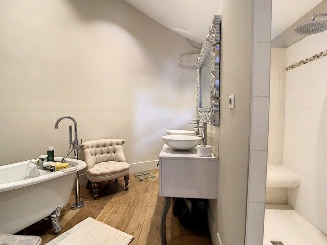 Dans un village ressourçant et pittoresque du Gers, nous vous proposons de venir visiter cette superbe maison en pierre rénovée avec goût. Sur deux niveaux imaginés par un architecte, laissez vous charmer par les deux suites spacieuses ( à l'étage ) et leur espace salle de bains, profitez des volumes du salon et de la cuisine ouvrant sur le jardin. Ce dernier abrite un bassin de nage en toute discrétion, et permet de profiter librement du climat agréable du Gers. Matériaux nobles, menuiseries et escalier sur mesure, excellentes performances énergétiques, le calme des lieux et les finitions soignées de cette demeure sauront séduire les plus exigeants d’entre vous. Une maison d'amis adjacente peut également être proposée à la vente (225 000 € FAI) si vous recherchez votre coup de cœur pour accueillir vos proches durant vos vacances.