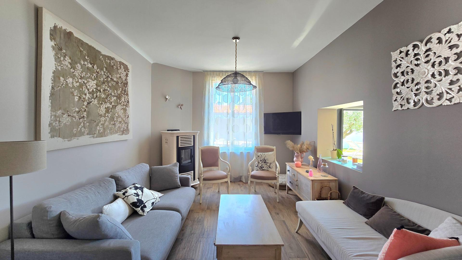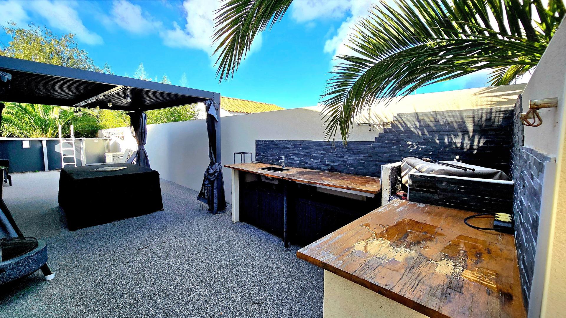 Quartier la Chaume, cette maison vous est présenté par Silvina Andrade, elle bénéficie d'un emplacement prisé offrant un cadre de vie agréable et dynamique. Proche des commodités et des points d'intérêts de la ville, cette propriété offre un cadre de vie confortable et pratique. À l'extérieur, ce bien se distingue par sa superficie de terrain de 1026 m², comprenant une belle terrasse, une piscine et un terrain arboré avec dépendances, ainsi qu'un local technique. De plus, vous y trouverez quatre places de parking et un garage double, offrant un espace de stationnement généreux. À l'intérieur, cette maison de 120 m² se compose de 6 pièces, dont 3 chambres . L'entrée avec couloir dessert les chambres et une salle d'eau. La cuisine ouverte sur le salon séjour avec plafond cathédral et cheminée crée une atmosphère chaleureuse. Le chauffage est assuré par une chaudière au gaz récemment remplacée, tout comme le ballon d'eau chaude. Construite en 1999, cette propriété offre un espace de vie fonctionnel et confortable, idéal pour une famille en quête de tranquillité et de convivialité.