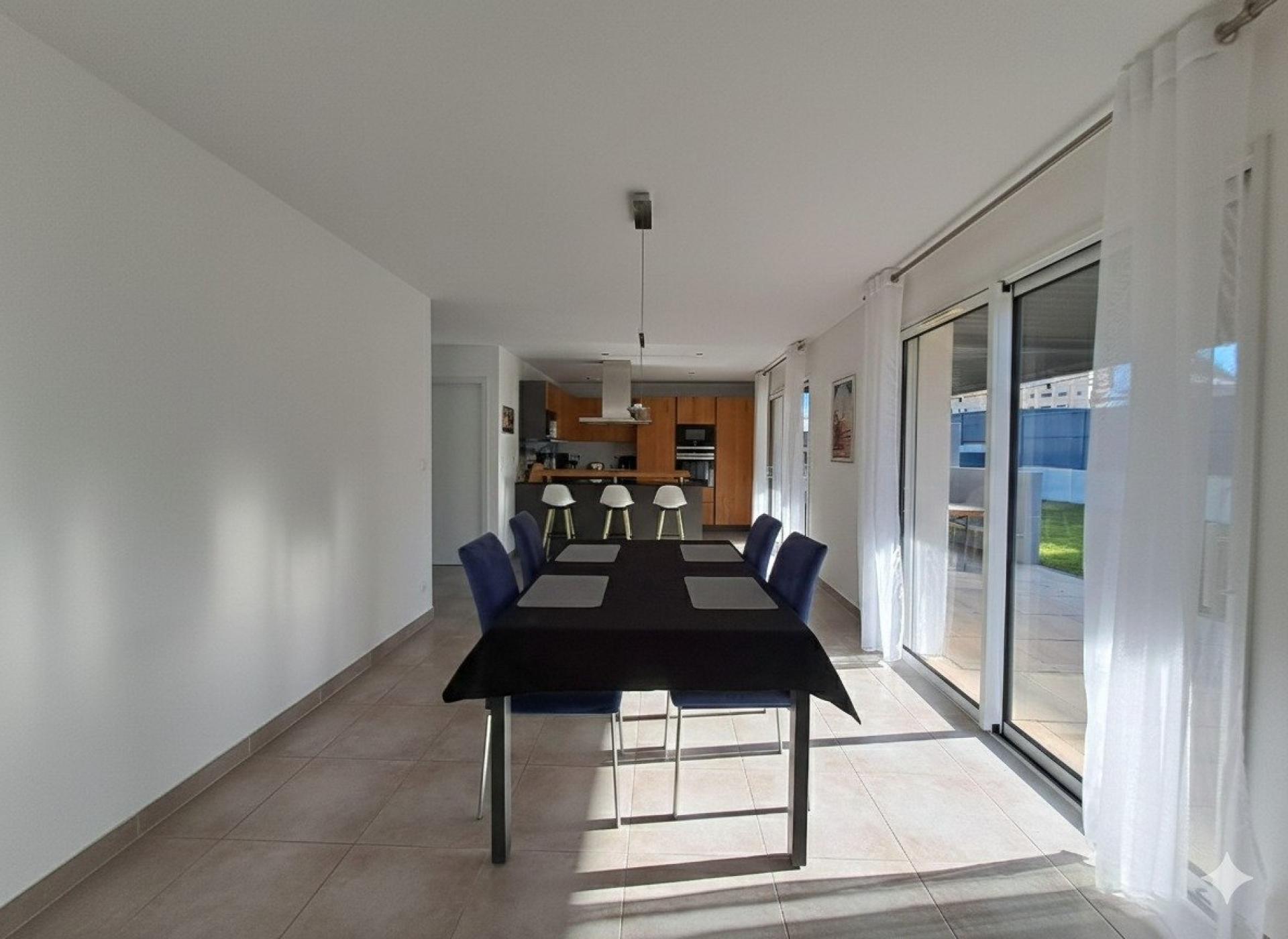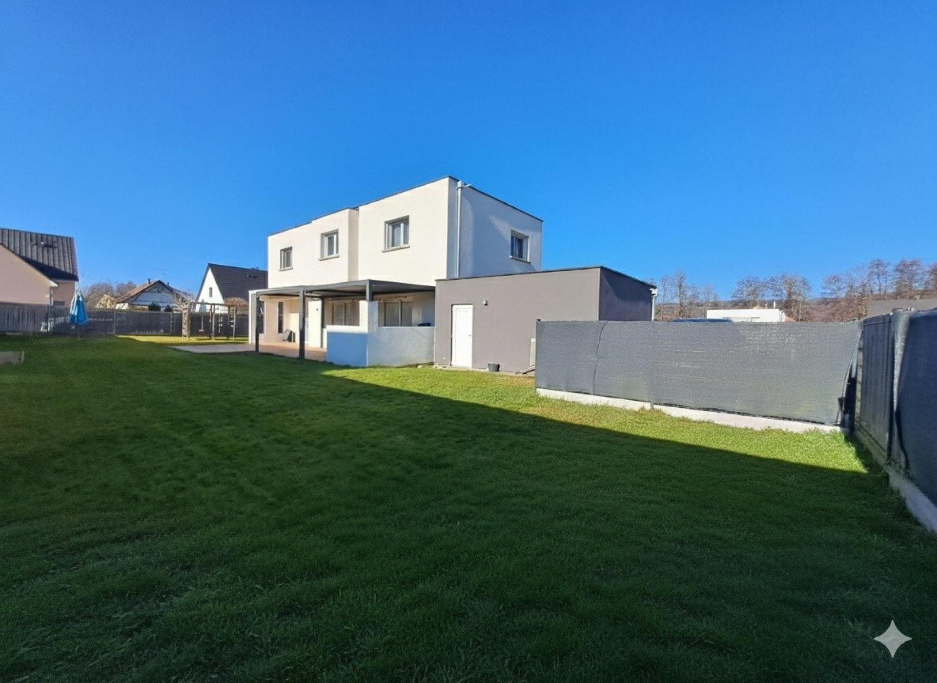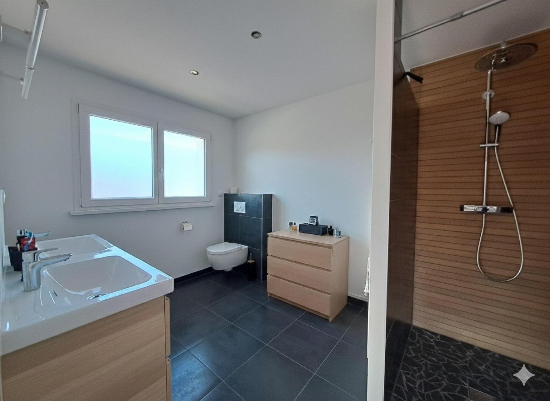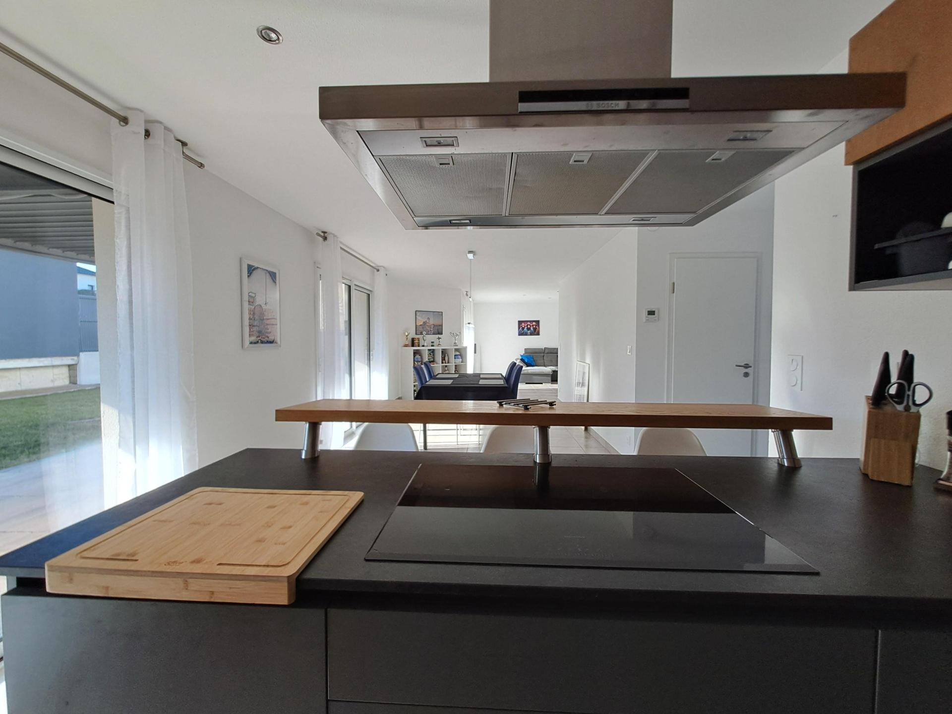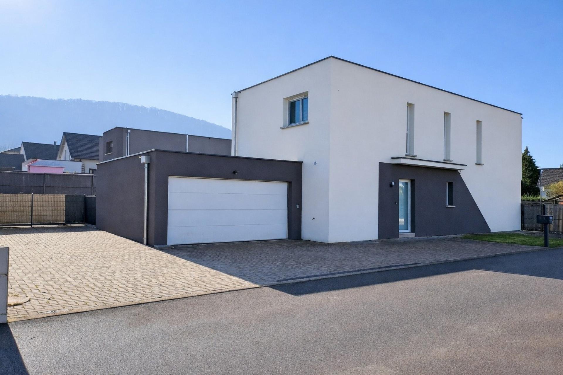 Située à Leymen (68220), à la lisière de la frontière suisse, cette maison bénéficie d'un emplacement paisible et familial, à proximité des commodités essentielles et offrant un accès facile aux infrastructures locales. La ville pittoresque propose un cadre de vie agréable, avec ses espaces verts et ses services de proximité. À l'extérieur, la propriété dispose d'un vaste terrain de 600 m², comprenant un jardin bien entretenu, une terrasse de 50m² avec une pergola. Les aménagements incluent une cave spacieuse de 75m² avec buanderie, deux pièces et un garage de plain-pied pour deux voitures côte à côte, offrant un espace de stationnement supplémentaire, en plus des 4 places de parking extérieures. À l'intérieur, cette maison de 146 m² offre 6 pièces lumineuses, dont 4 chambres confortables. Au rez-de-chaussée, lumineux espace de vie de 52m² avec une cuisine superbement équipée avec en plus table-bar et chaises hautes. Un wc suspendu avec lave-mains et un cellier de 6,36m² qui fait le lien entre garage et habitation complètent ce niveau. A l'étage, deux spacieuses chambres enfants bénéficiant d'une salle d'eau de 7m² avec douche à l'italienne, une belle suite parentale de 27m² avec dressing et salle d'eau (wc, douche à l'italienne, double vasque) et un bureau. Ce bien propose un chauffage au sol sur les deux étages par pompe à chaleur, des volets électriques, un adoucisseur d'eau. Classe énergétique A !! Ich rede Deutsch, i speak english.