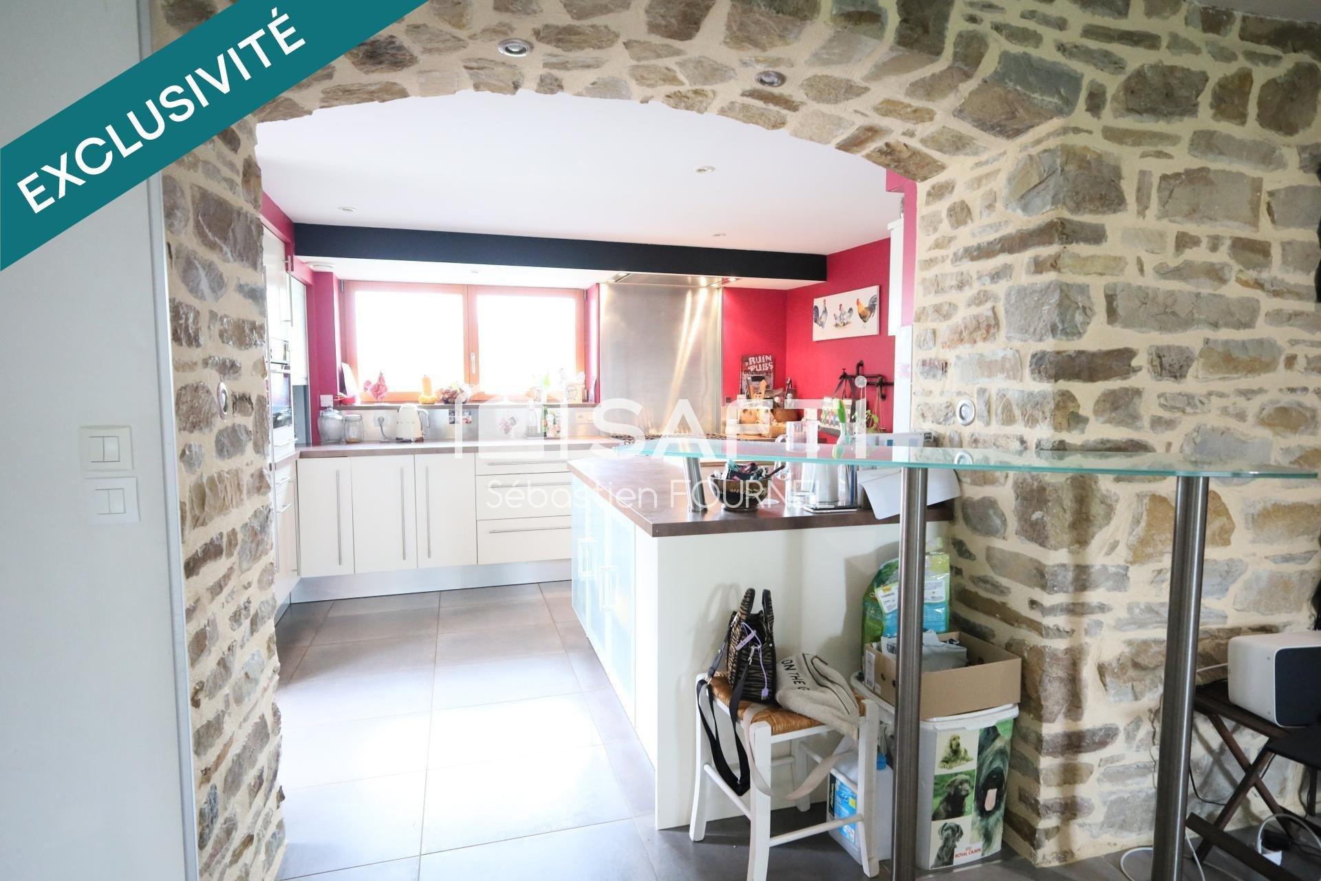 Magnifique rénovation alliant le charme de l'ancien et le contemporain pour cette grande longère d'une surface d'environ 245 m2 et son logement annexe de 34m2. Sur une parcelle close et arborée de 2700 m2, elle se compose : - au rez-de-chaussée : entrée avec placard, une grande pièce de vie avec accès terrasse, un salon (possibilité chambre), cuisine aménagée et équipée, arrière cuisine / buanderie, salle d'eau et wc séparé. - à l'étage : vaste mezzanine desservant une suite parentale avec dressing et salle d'eau, deux grandes chambres et un wc séparé. - au 2ème étage : mezzanine, deux chambres, salle de bains et wc séparé. Logement annexe avec cuisine aménagée, chambre, salle d'eau avec wc. Piscine 4x10.50m avec son contour en travertin, filtration à sable, électrolyse au sel, chauffage par pompe à chaleur et volet immergé. Four à pain, puits, cabanon type chalet de montagne de 17m², borne de recharge électrique 7,4 kw, assainissement récent. Belles prestations : menuiseries mixtes bois/alu, chauffage au sol en rez-de-chaussée...