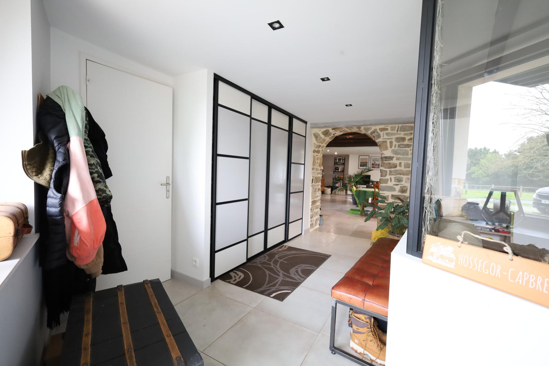 Magnifique rénovation alliant le charme de l'ancien et le contemporain pour cette grande longère d'une surface d'environ 245 m2 et son logement annexe de 34m2. Sur une parcelle close et arborée de 2700 m2, elle se compose : - au rez-de-chaussée : entrée avec placard, une grande pièce de vie avec accès terrasse, un salon (possibilité chambre), cuisine aménagée et équipée, arrière cuisine / buanderie, salle d'eau et wc séparé. - à l'étage : vaste mezzanine desservant une suite parentale avec dressing et salle d'eau, deux grandes chambres et un wc séparé. - au 2ème étage : mezzanine, deux chambres, salle de bains et wc séparé. Logement annexe avec cuisine aménagée, chambre, salle d'eau avec wc. Piscine 4x10.50m avec son contour en travertin, filtration à sable, électrolyse au sel, chauffage par pompe à chaleur et volet immergé. Four à pain, puits, cabanon type chalet de montagne de 17m², borne de recharge électrique 7,4 kw, assainissement récent. Belles prestations : menuiseries mixtes bois/alu, chauffage au sol en rez-de-chaussée...