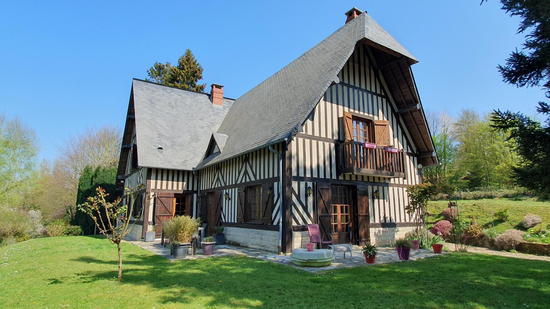 A 2H DE PARIS. 30 min DE DEAUVILLE TROUVILLE HONFLEUR, proche de LISIEUX, à 5 min de toutes commodités : commerces, écoles et gare SNCF (1h50 de PARIS St Lazare). au CALME, avec de BEAUX VOLUMES et des prestations soignées, cette maison de 255 m² sur un parc clos arboré et fleuri de 6000m² avec VUE dégagée vous offrira un cadre de vie privilégié au cœur de la Normandie. Le hall d’entrée ouvre sur un TRIPLE SEJOUR LUMINEUX avec SALON CATHEDRALE et CHEMINEE, et accès à un BEL ESPACE TERRASSE PLEIN SUD. La CUISINE DINATOIRE moderne est aménagée et équipée. Une SUITE PARENTALE complète ce niveau offrant la possibilité d'une VIE DE PLAIN PIED. A l'étage, une spacieuse mezzanine avec coin détente/bureau dessert 4 AGREABLES CHAMBRES, 2 salles de bains indépendantes et un dressing. Le SOUS SOL TOTAL comprend une pièce chauffée à usage de SALLE DE JEUX ET SPORTS, des espaces GARAGES, CAVE, chaufferie/buanderie, rangement et atelier. Coup de cœur assuré pour cette maison d'architecte qui vous séduira par ses volumes et son confort.